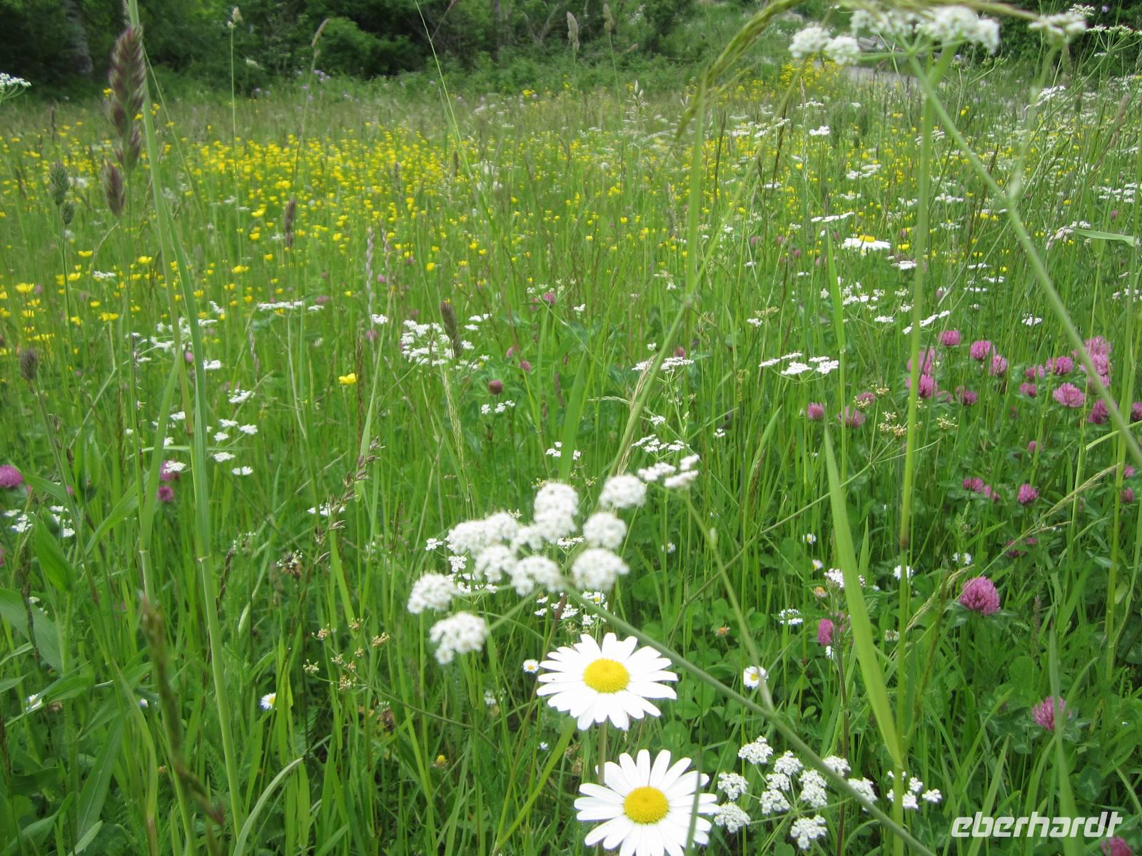 Eine Stunde haben wir Zeit und die Gruppe teilt sich. Ein Teil nutzt die Zeit, die schönen Blumenwiesen zu fotografieren. Ein anderer Teil wartet auf den Glacier-Express am Fuß des Viaduktes und einige von uns wandern zu dem ca. 100 m hohen Fotostopp. Ein besonderes Erlebnis und langsamsten Schnellzug von "oben" zu fotografieren."