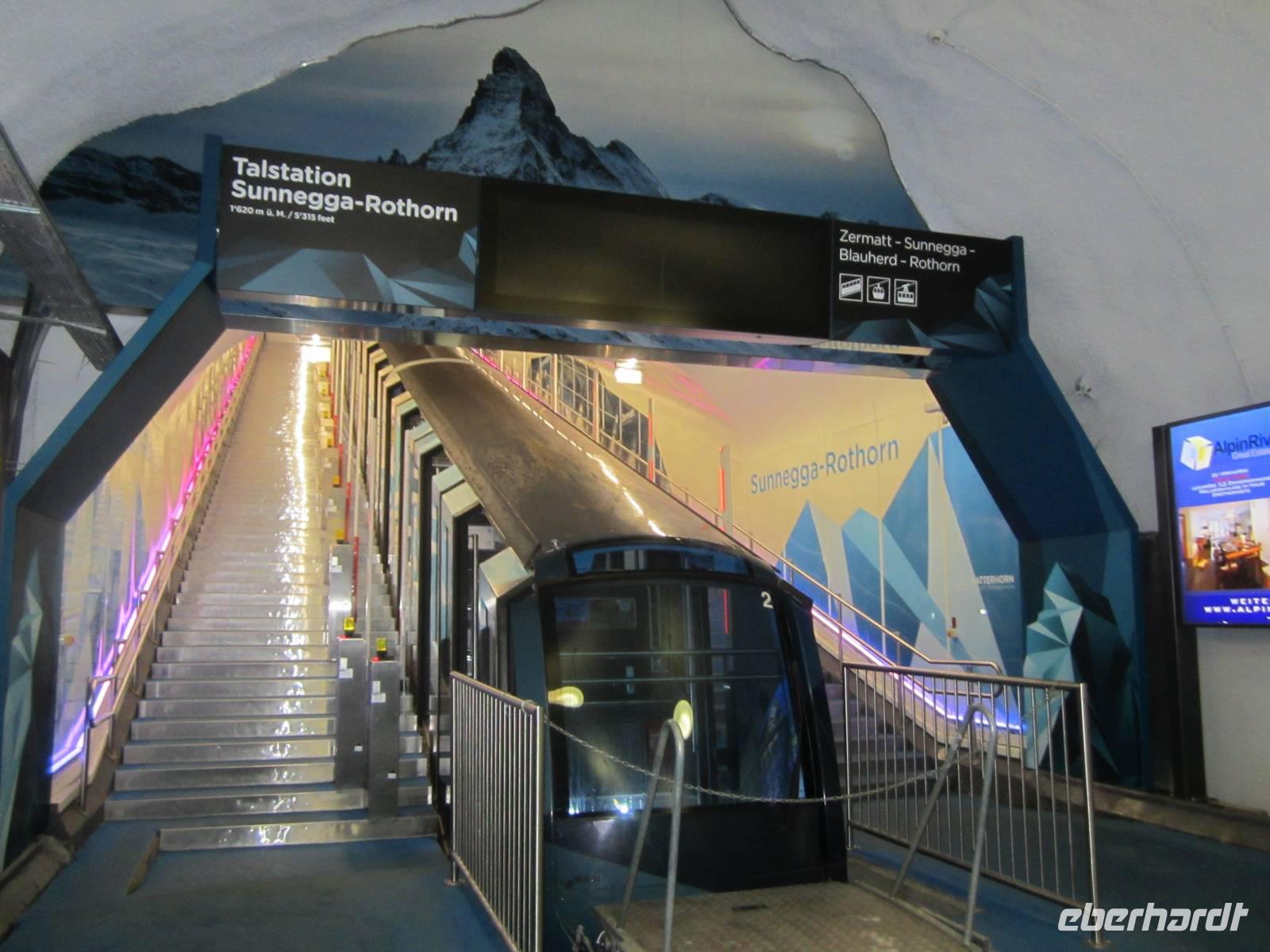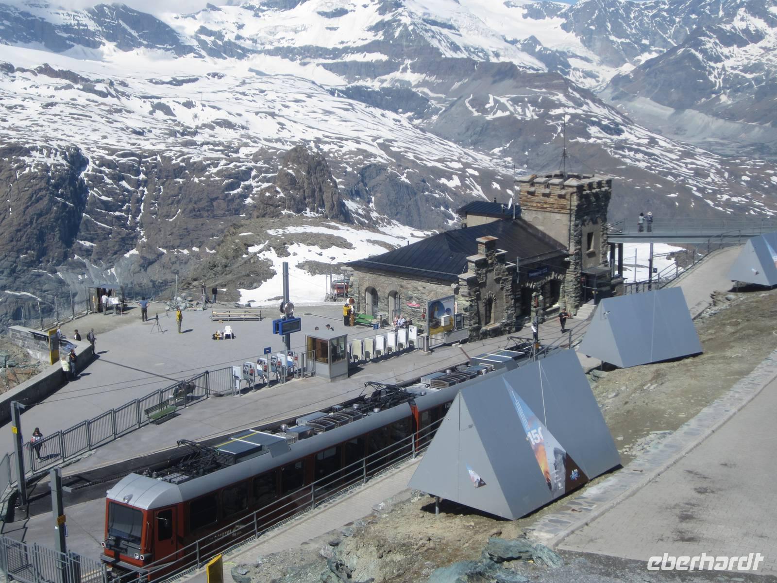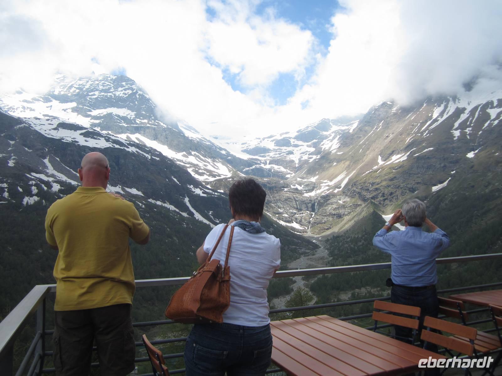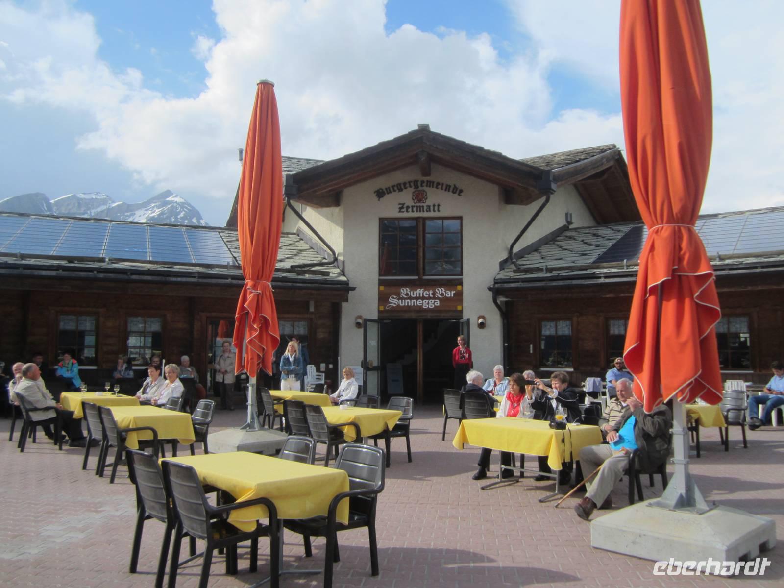 Wir fahren mit dem Sunnegga - Express eine Tunnel-Standseilbahn zur Sunnegaterrasse (2288m).Begrüßt werden wir von einem Alphornbläser. Bei einem typisch schweizerischen Käseraclette und typischer Schweizer Folklore