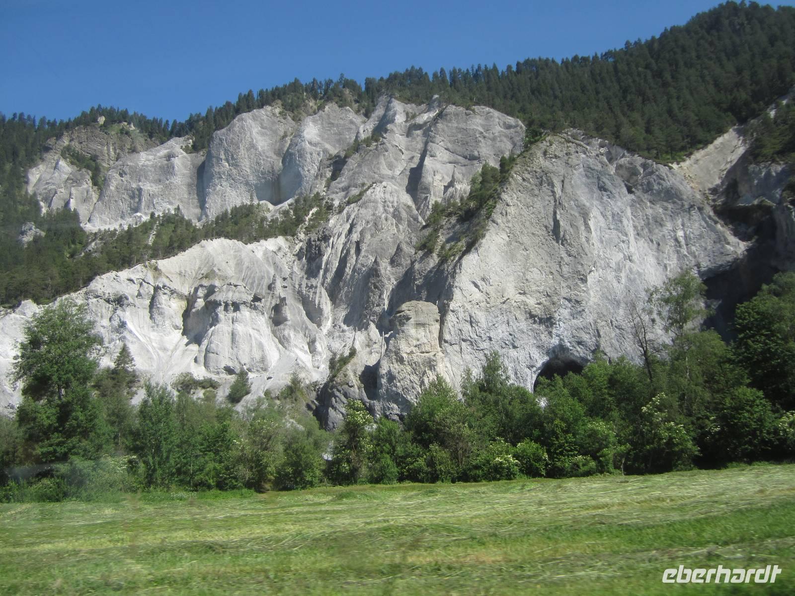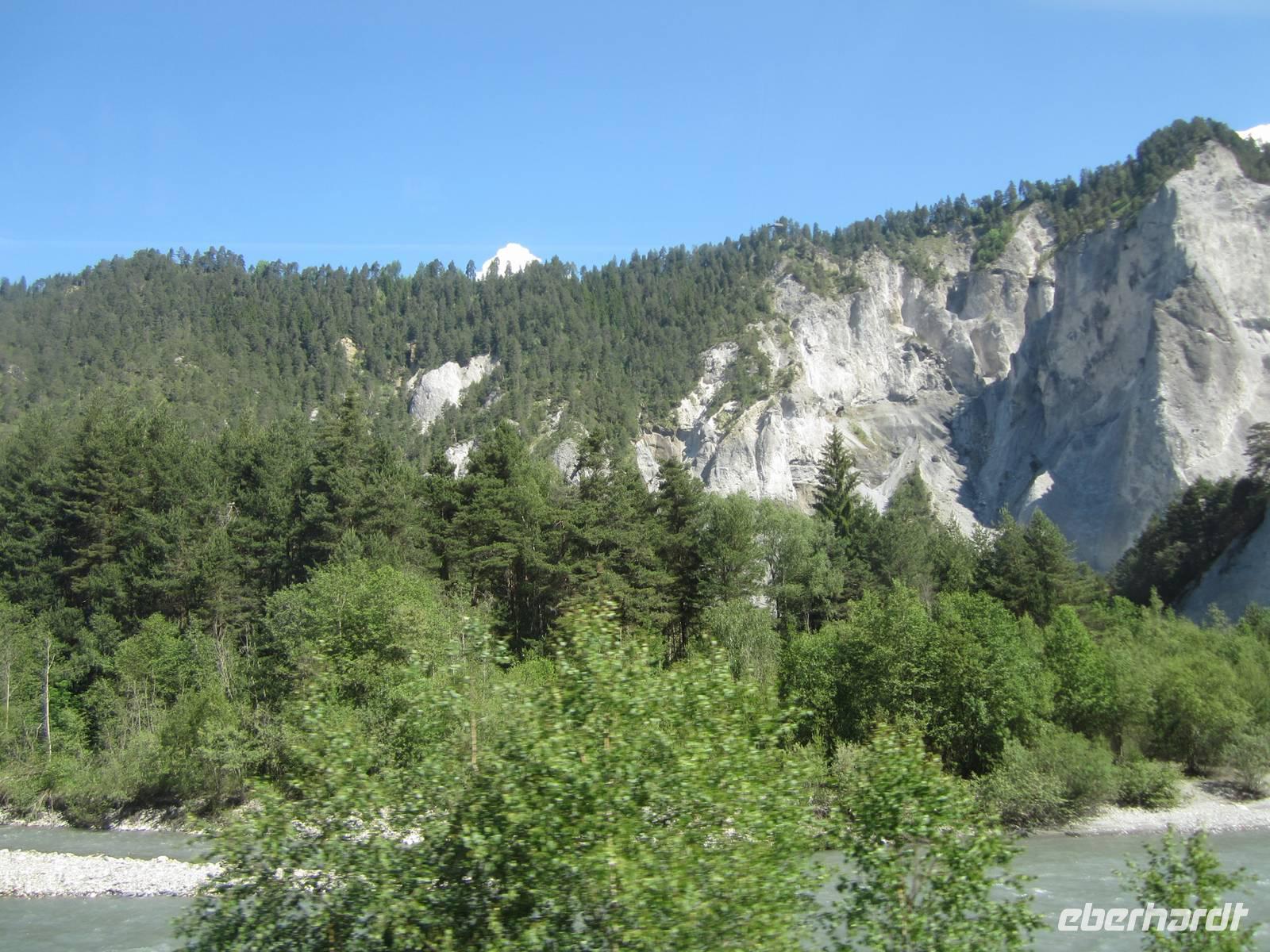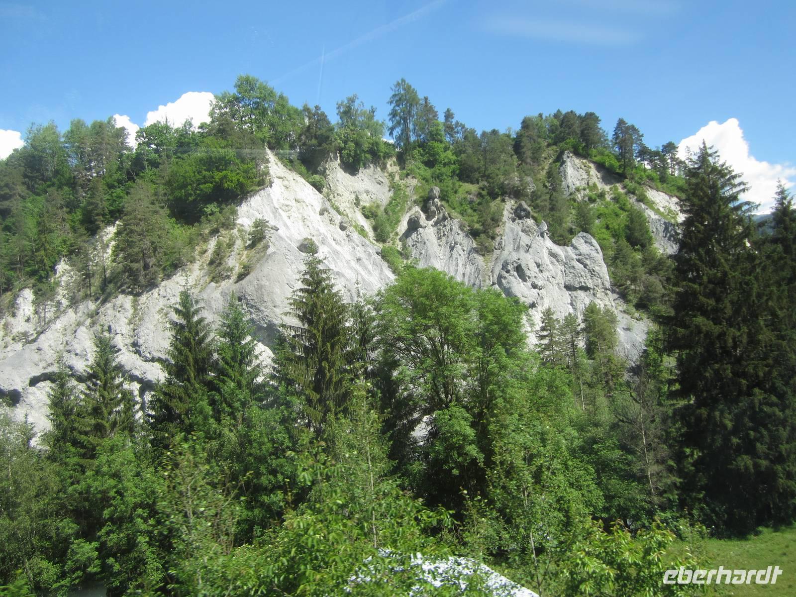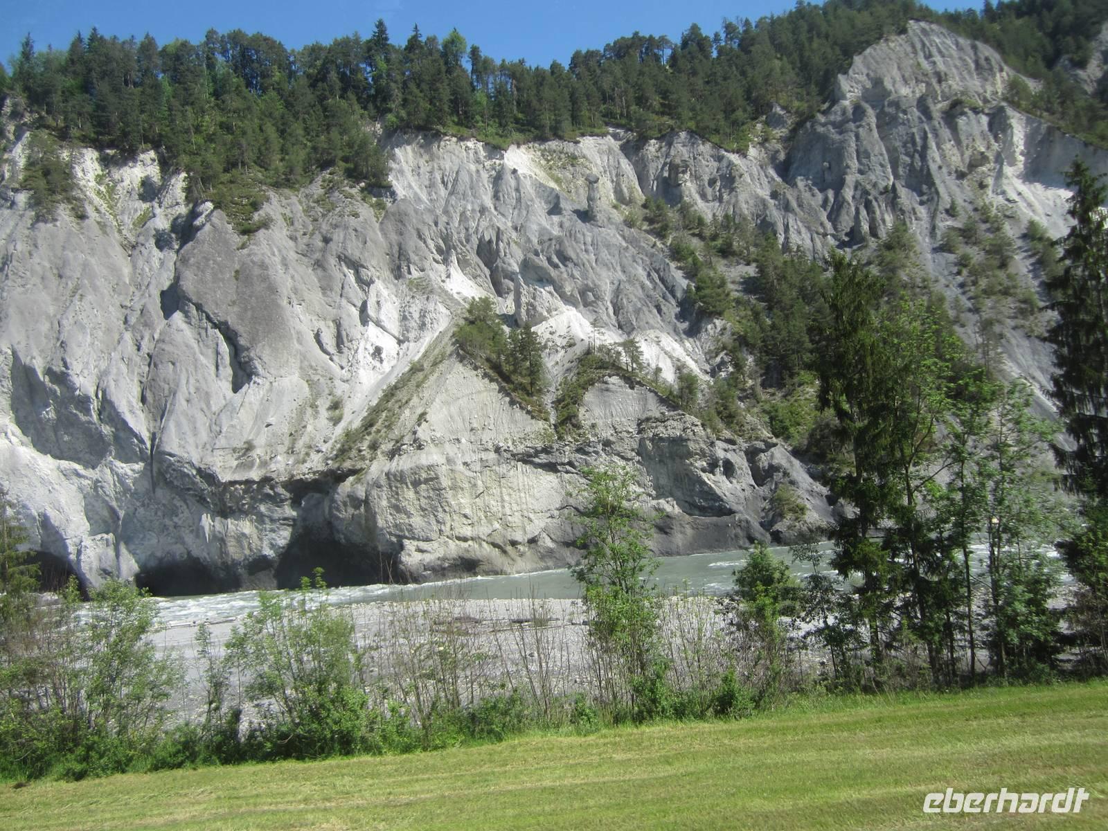 Weiter geht es durch die wilde Schinschlucht, vorbei an Burgen und Schlössern, bis nach Chur. Den mit 600 m tiefsten Punkt der Reise. Nach den lieblichen Tälern und grünen Landschaften Graubündens wird es jetzt wieder spannend. In der Rheinschlucht sehen wir den „Grand Canyon der Schweiz"..