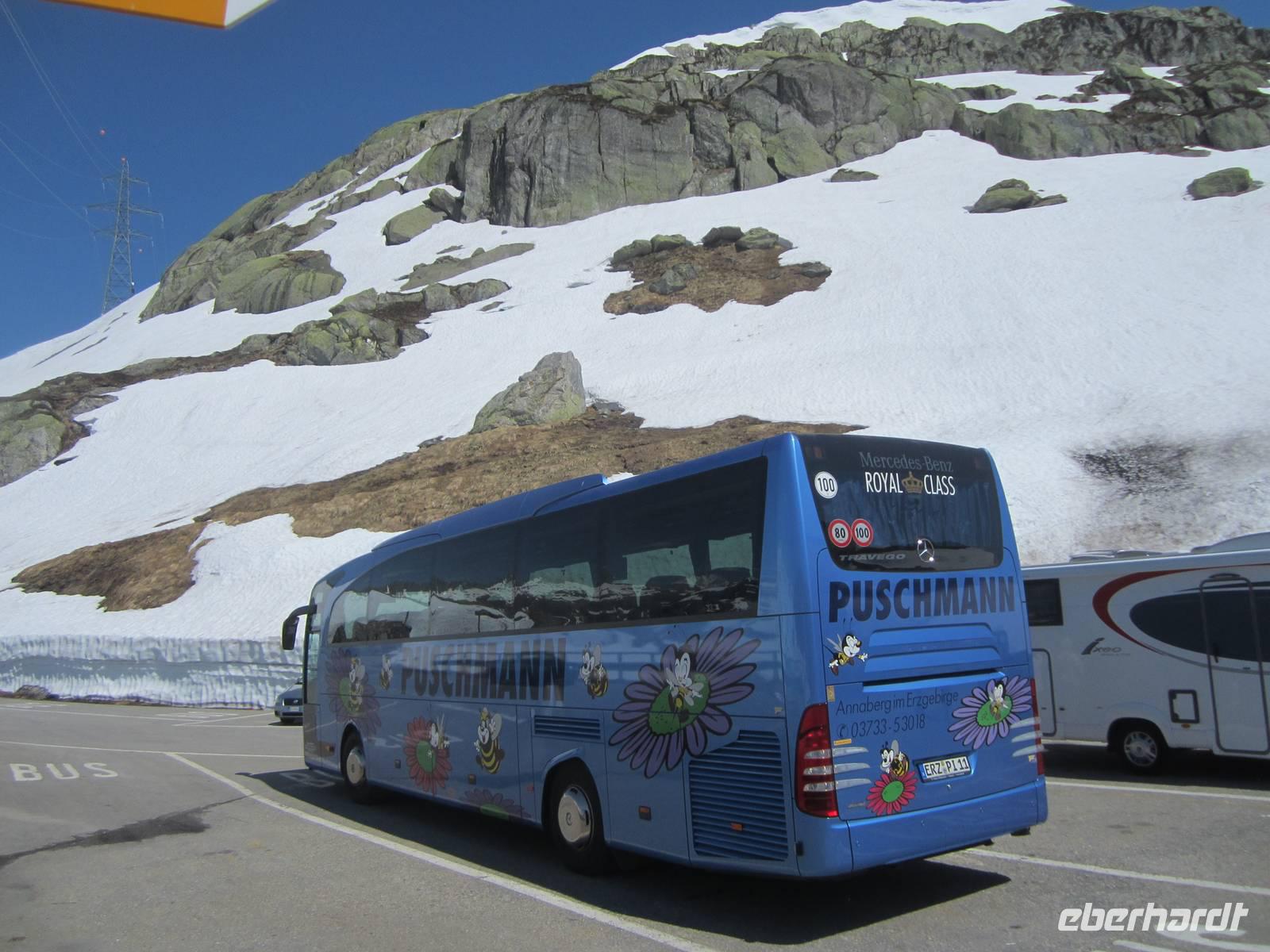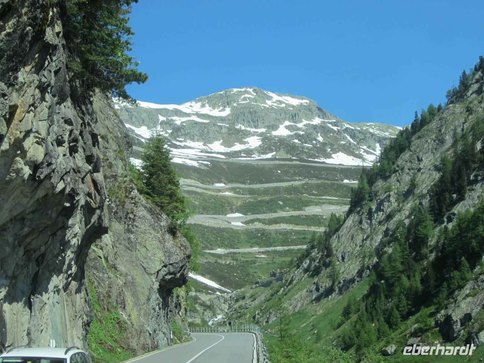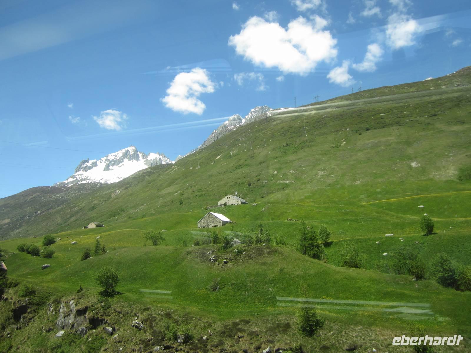 Eine Traumreise beginnt 06.00 Uhr in Dresden. Die ersten Gäste warten bereits. Schnell haben wir uns bekannt gemacht. Der Buschauffeur Toralf vom Busunternehmen Puschmann hat die Koffer eingeladen und schon fahren wir weiter zum nächsten Einstiegsort. Ingo unser Chauffeur für die nächsten Tage steigt in Wildenfels zu und in Ulm Ost nehmen wir unseren letzten Gast auf. Jetzt ist die Gruppe komplett. Heute ist Sonntag und wir haben keine Lkws auf der Autobahn und doch werden wir von einem Stau auf unserer Fahrt in die Schweiz aufgehalten. Auf unserer Fahrt entlang der A7 fahren wir durch das schöne deutsche Urlaubsgebiet, dem Allgäu. Mit Blick auf den Bodensee fahren wir nach Österreich und wählen die Fahrt durch den Pfändertunnel mit seinen 6,7 km. Jetzt gelangen wir schnell in unser Urlaubsland und nutzen den Grenzübergang Diepoldsau. Mit der Nationalhymne und einem traditionellen Grüezi geht es in die Schweiz. Wir durchqueren Heidiland, das seit 1997 eine Ferienregion zwischen den westlichen Walensee und Bad Ragaz in der Ostschweiz ist.