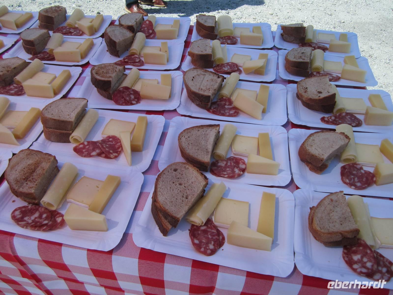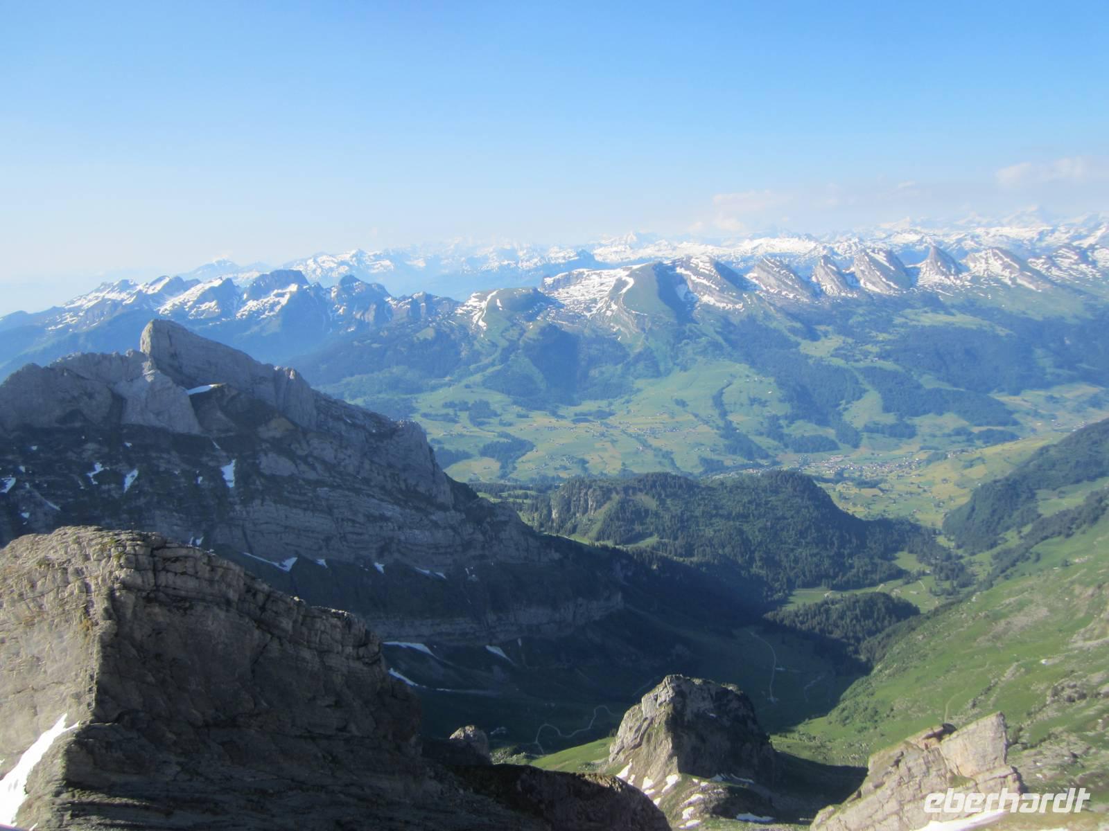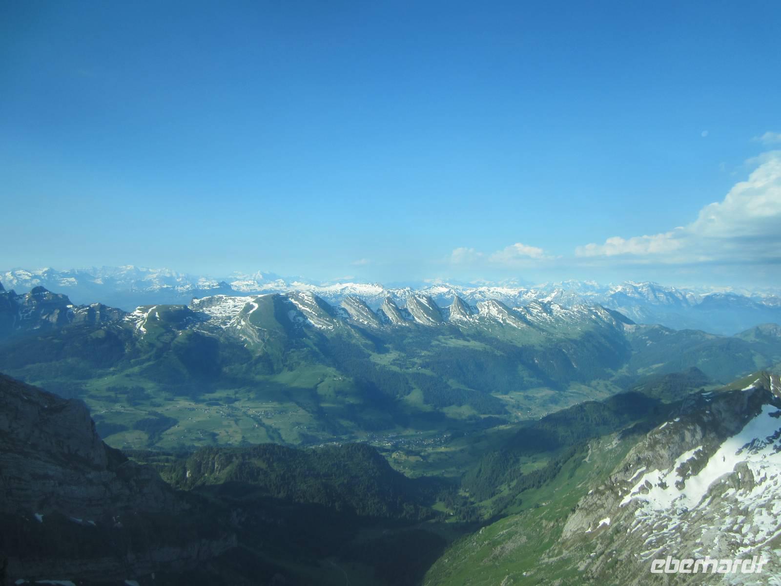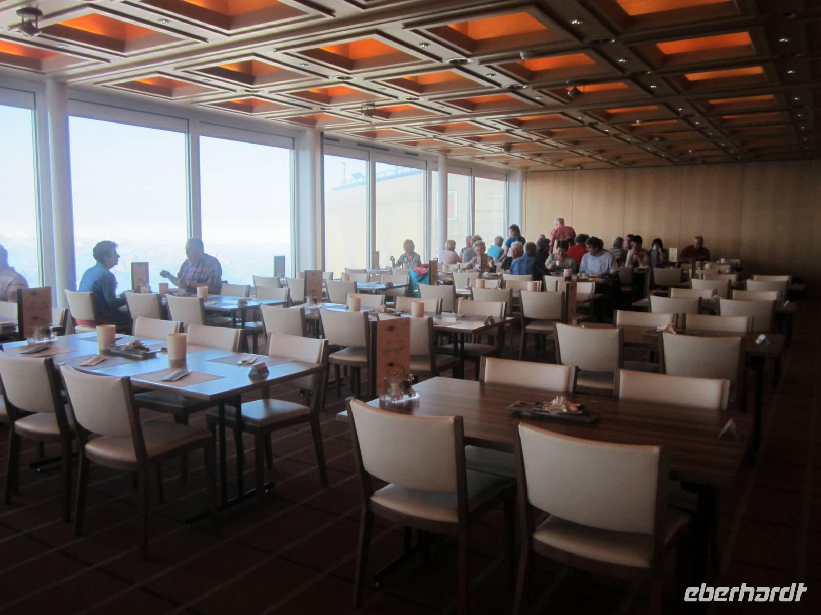 Wir wollen die erste Bahn zum Säntis nehmen gegen 7.15 Uhr werden die Koffer in den Bus geladen und wir laufen zur Bahnstation. Mit dem Wetter klappt es heute wieder. Das Frühstück auf dem Säntis im Panoramarestaurant lässt keine Wünsche offen. Die beliebten Rösti und auch der gute Appenzeller und Urnäscher Käse liegen für uns auf dem Büfett.