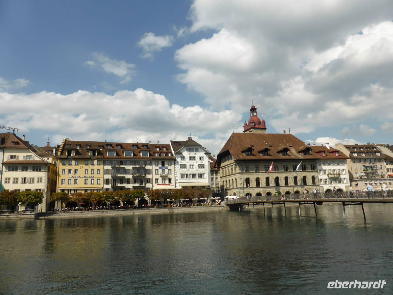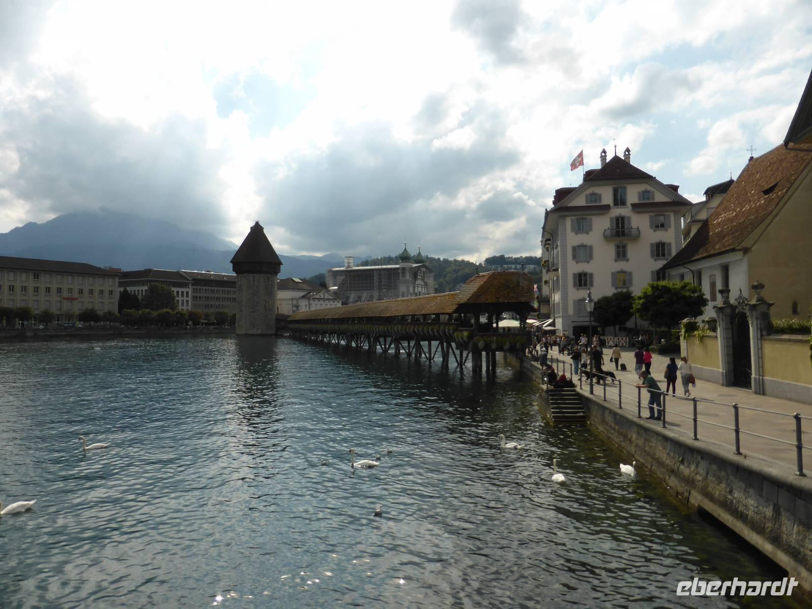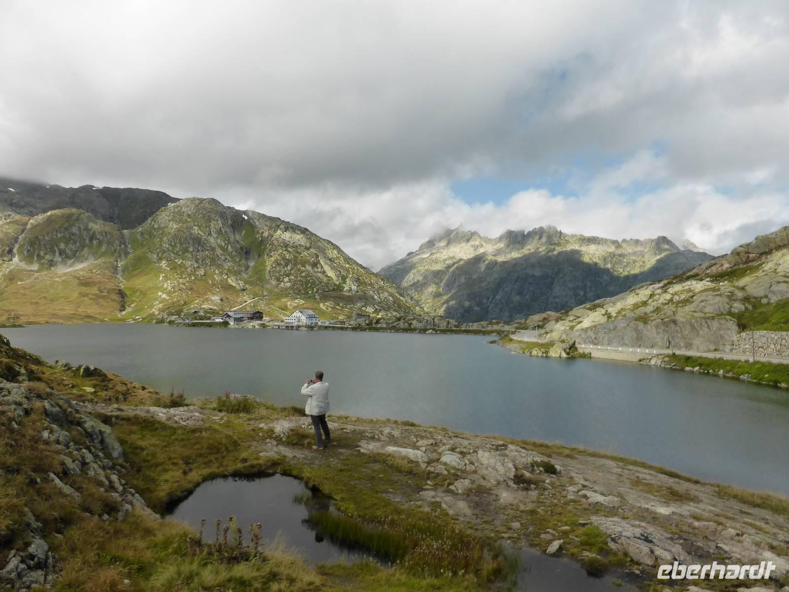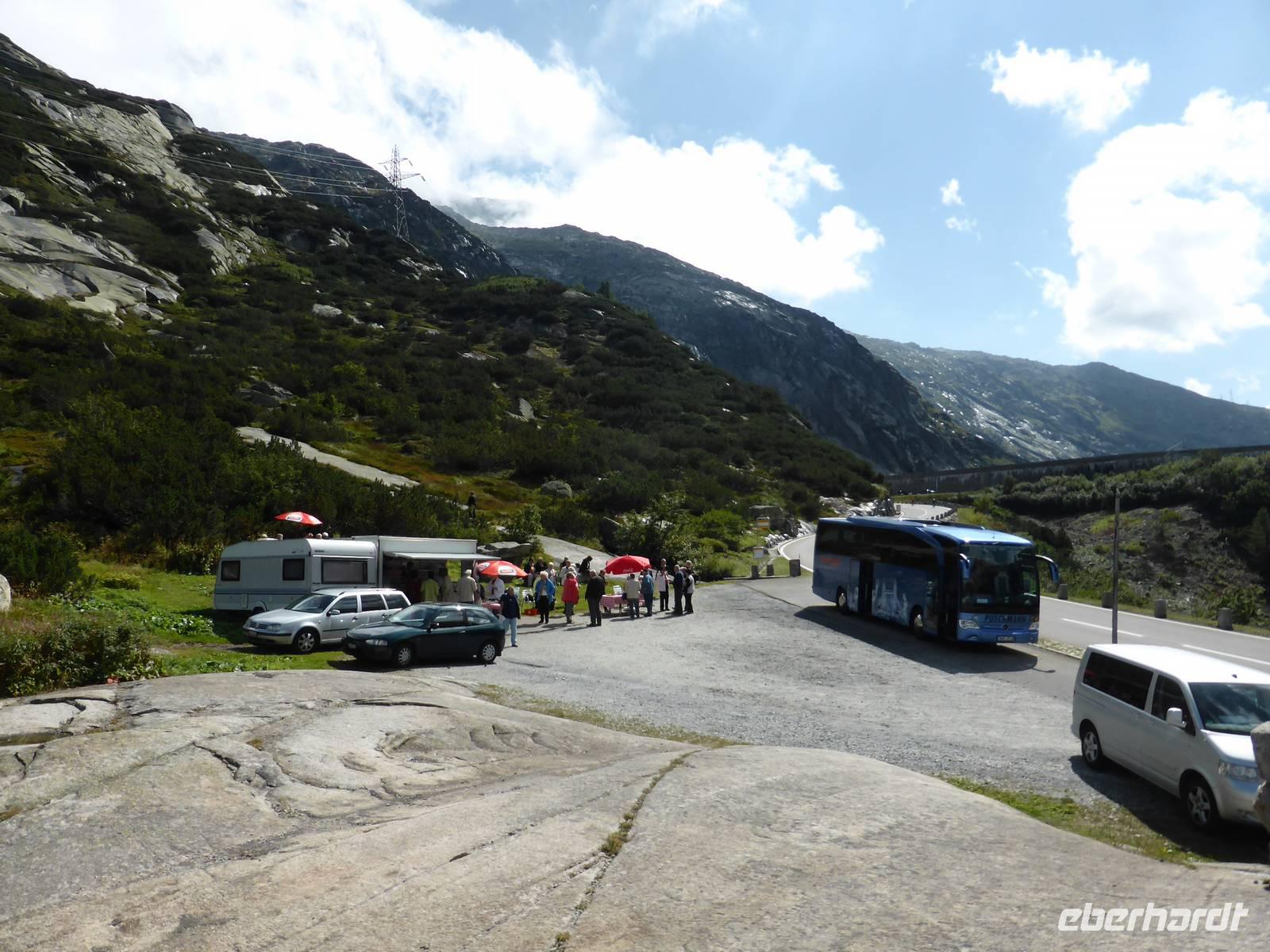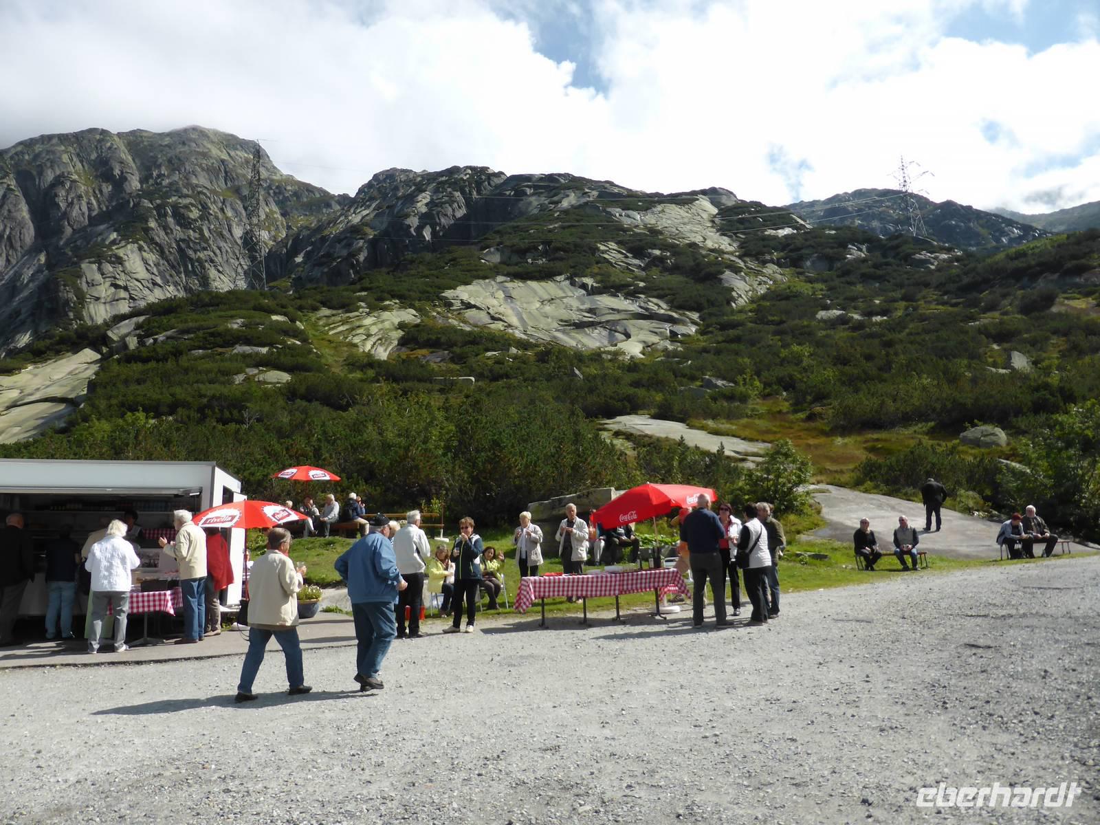 Am heutigen Tag gaben wir unser Gepäck schon vor dem Frühstück ab und fuhren danach mit dem Regionalzug nach Täsch und von dort mit unserem Bus durch das Rhone-Tal zum Grimsel-Pass. Normalerweise hat man auf dem Grimselpass in 2165 Meter Höhe Gelegenheit, Murmeltiere zu sehen, wir jedoch hatten kein Glück. Auf der anschließenden Fahrt ins Tal kamen wir am Grimsel-Hospiz und den Stauseen des Wasserkraftwerkes vorbei und hielten auf einem kleinen Parkplatz, auf welchem wir zu einem kleinen Picknick erwartet wurden. Es gab Käse und Salami, dazu Schweizer Rot- und Weißwein. Genau die richtige Stärkung und eine willkommene Abwechslung auf unserer Reise! Nach einer schönen Fahrt entlang der Aare hielten wir ein weiteres Mal kurz hinter dem Brünig-Pass am Lungerer See. Da das Wetter optimal und das Panorama fantastisch war, nutzten wir die Gelegenheit für unser Gruppenfoto. Gegen 14.30 Uhr erreichten wir die Stadt Luzern am Vierwaldstätter See. Es war ein schöner und sonniger Tag, so dass wir unseren Aufenthalt bei einem kleinen Stadtbummel oder in einem Cafè genießen konnten. Die meisten Gäste schlossen sich einem kleinem Rundgang durch die Altstadt an. Anschließend fuhren wir entlang des Zürichsees zu unserem Berghotel Schwägalp zu Füßen des Säntis.