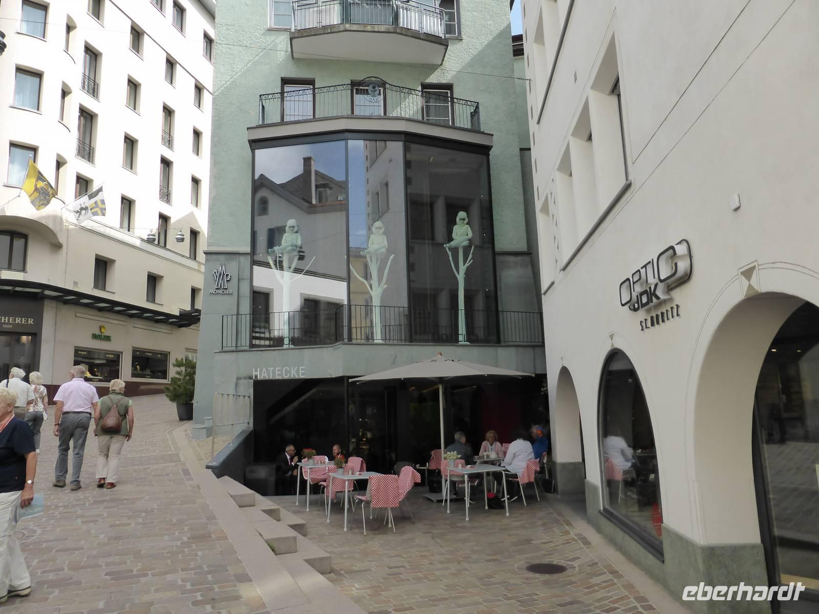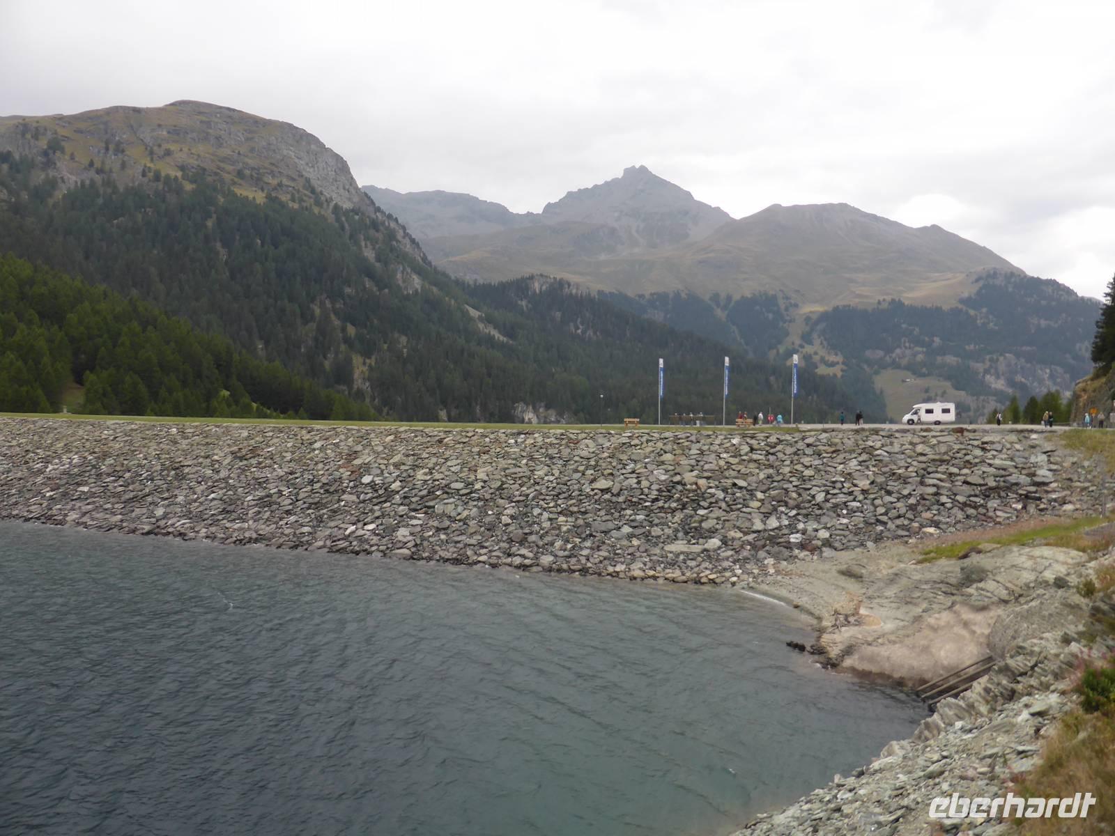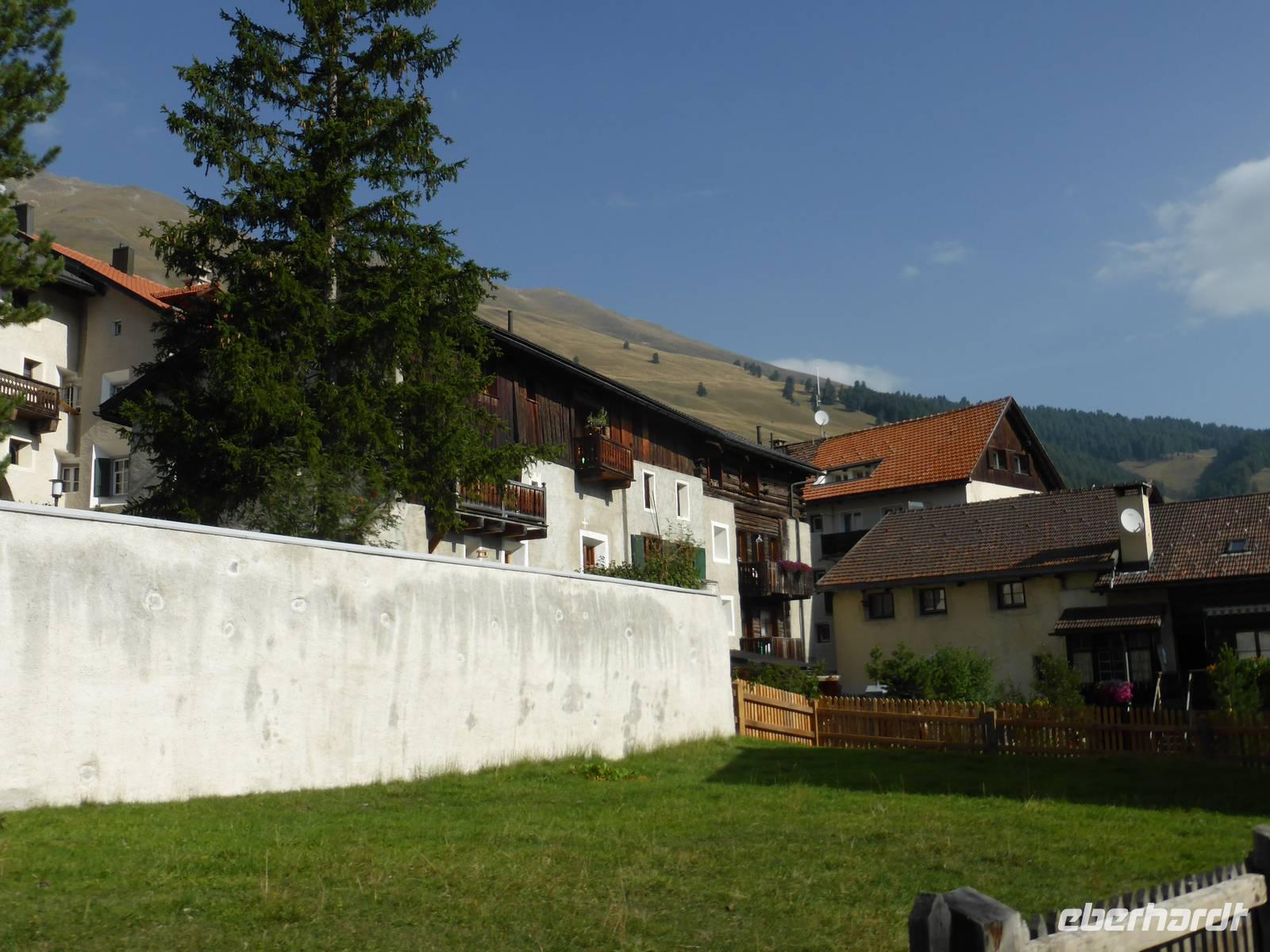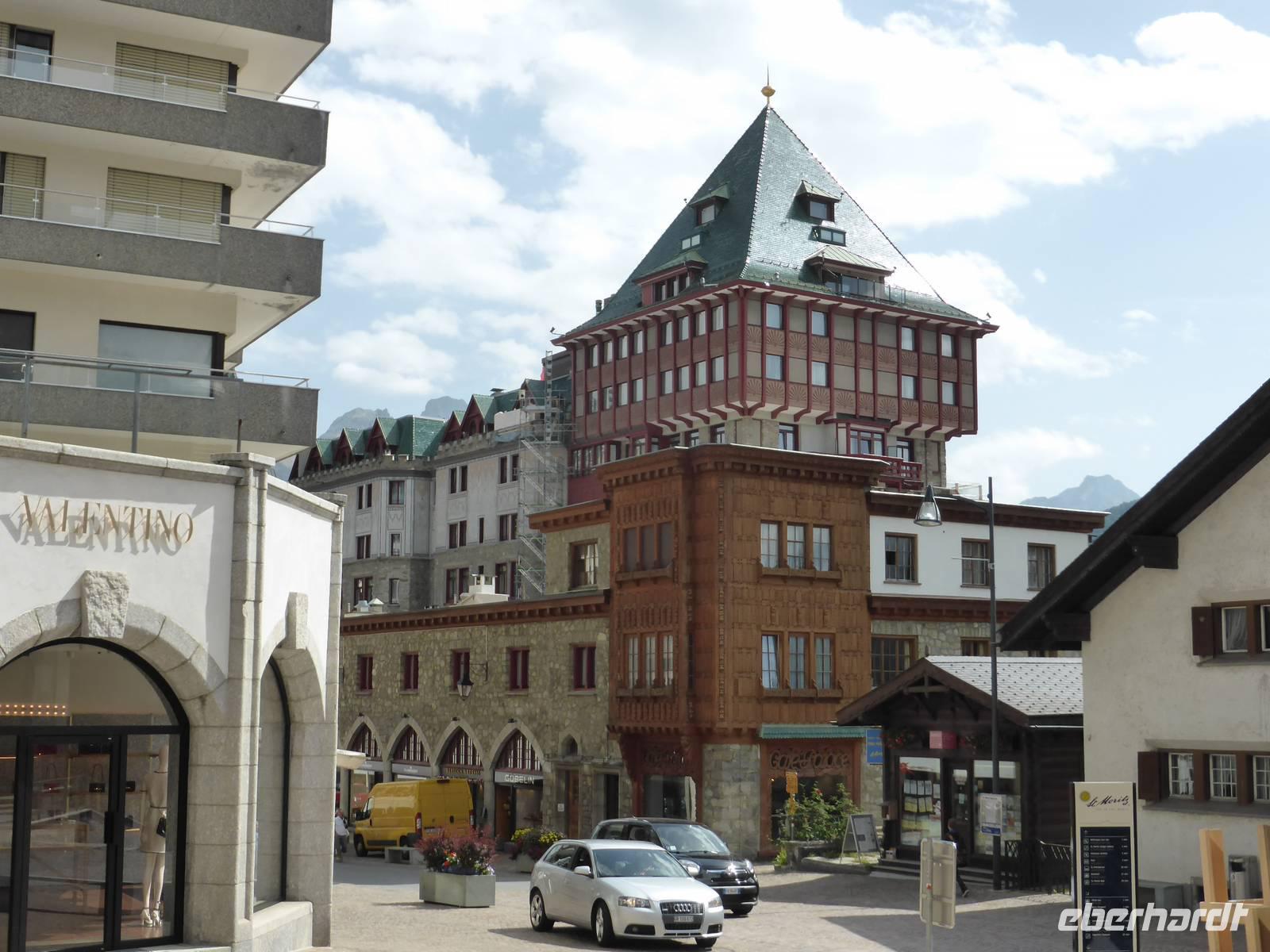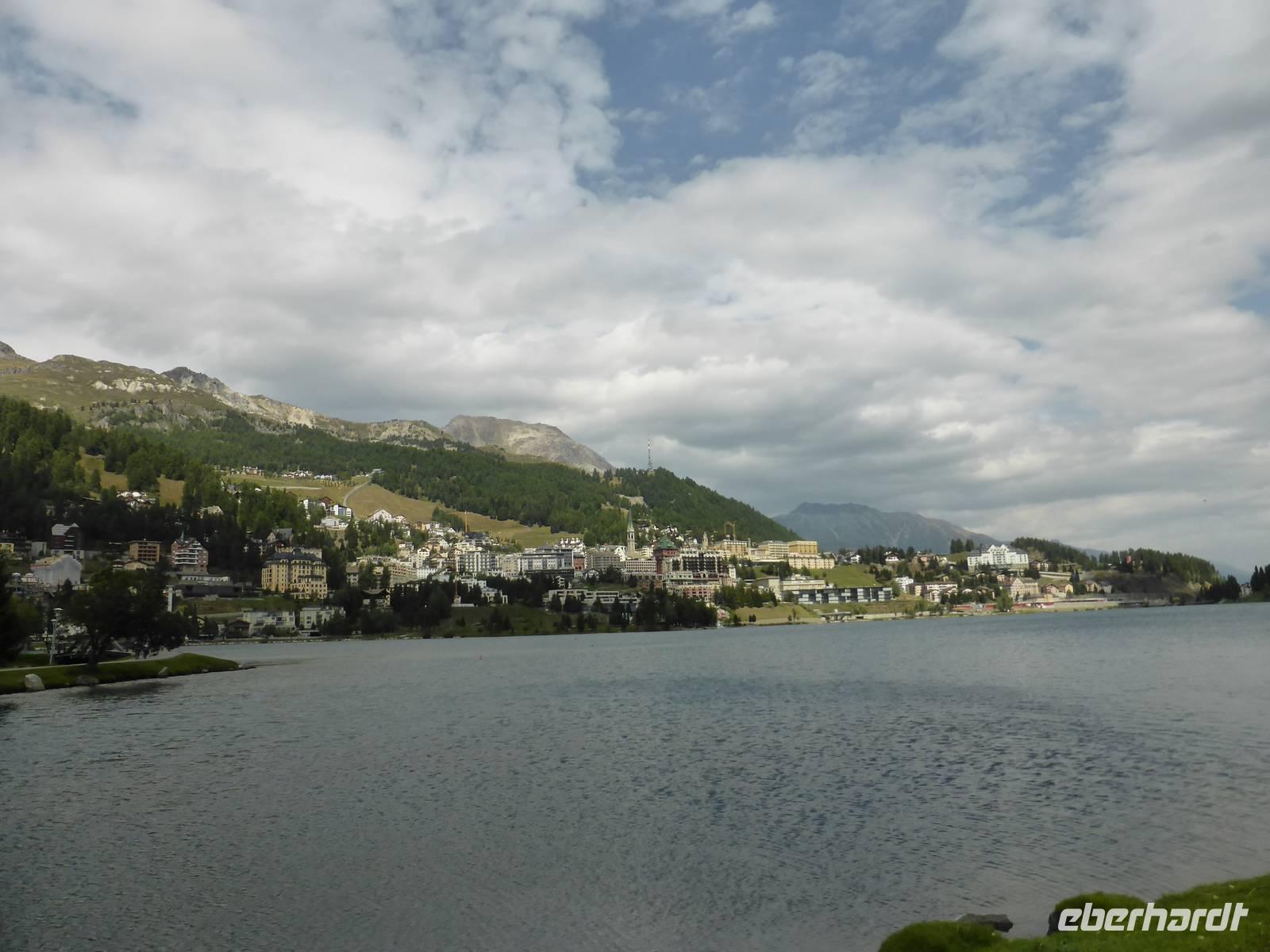 Der Ort selbst bietet ein unverfälschtes Bild vom Leben in einem Engadiner Dorf fernab vom Tourismus. Von Zuoz aus fuhren weiter wir nach St.Moritz-Dorf. Über drei gewaltige Rolltreppen gelangten wir vom Bahnhof hinauf in die Stadt. Sankt Moritz-Dorf besteht im Wesentlichen aus Hotelanlagen, Geschäften und Bankfilialen. Fantastisch ist die Lage der Stadt oberhalb des Inntals, umgeben von Bergen. Auch die vielfältigen Freizeitmöglichkeiten machen den Reiz der Stadt aus. Nach unserem Aufenthalt fuhren wir auch nach St.Moritz-Bad, dem Erholungsort mit seinen vielen Thermen sowie Heilbädern und hielten kurz für einen Fotostopp. Vom Ufer des St.Moritz-Sees hatten wir den schönsten Blick auf den See und das am Hang liegende St.Moritz-Dorf. Im Anschluss fuhren wir weiter zum Silvaplaner-See und legten dort unsere Mittagspause ein. Über den Julierpass (2284 Meter) fuhren wir zum Marmorera-Stausee. Den Weg über den Julierpass kannten schon die Römer, woran zwei Pass-Säulen am Straßenrand erinnern. Der Marmorera-Stausee entstand 1954 und dient der Wasserregulierung und Energiegewinnung. Über Tiefencastel ging es hinein in das Landwassertal und vor dem kleinen Bergdorf Schmitten wurde ein weiterer Fotostopp eingelegt. Am Hotel in Davos angekommen, fuhren nach einer kurzen Pause alle Gäste, die hinauf zur Schatzalp fahren wollten, zur Talstation der Schatzalp-Standseilbahn. Am Abend trafen wir uns dann wieder zum gemeinsamen Abendessen im Hotel.