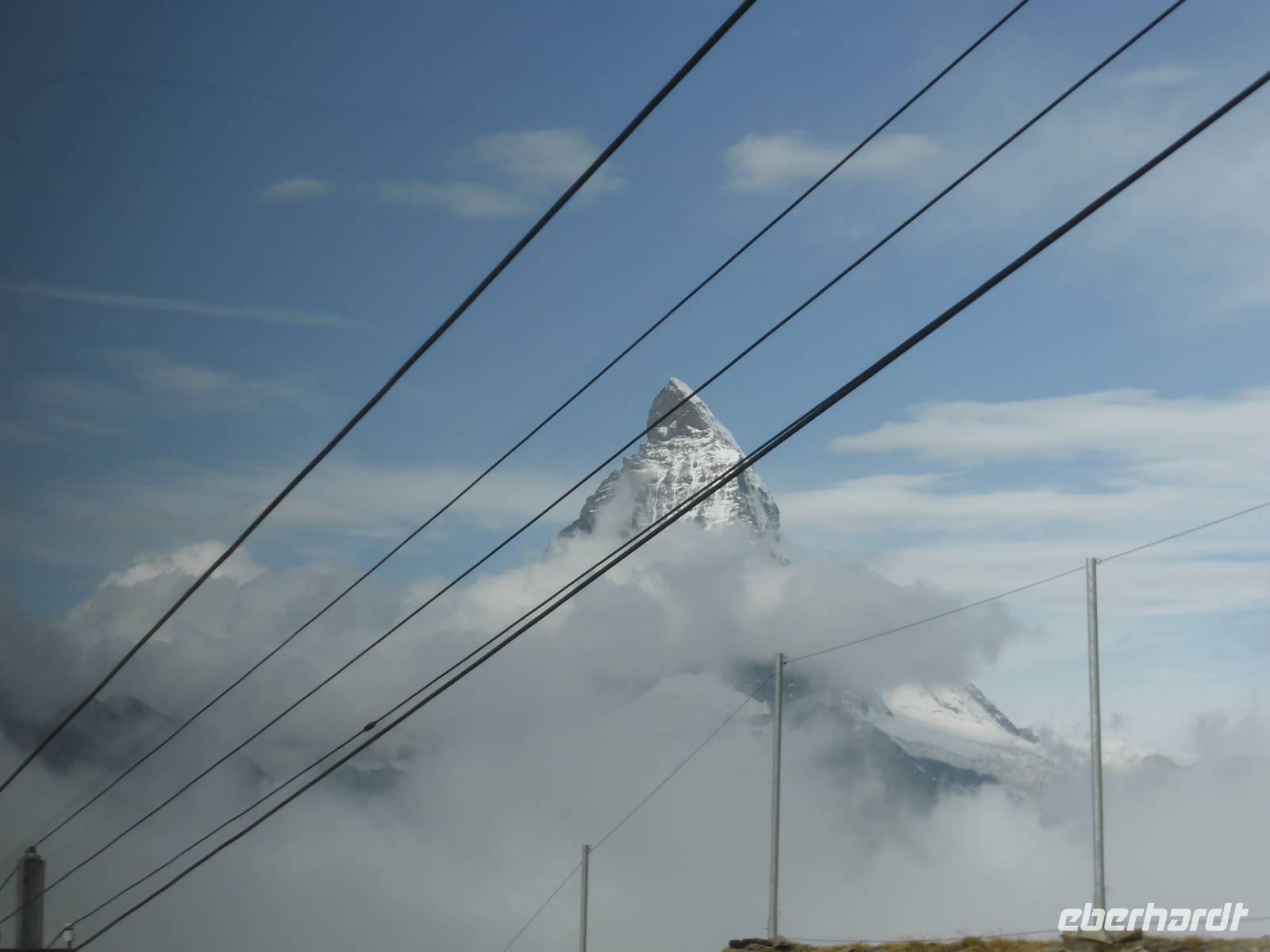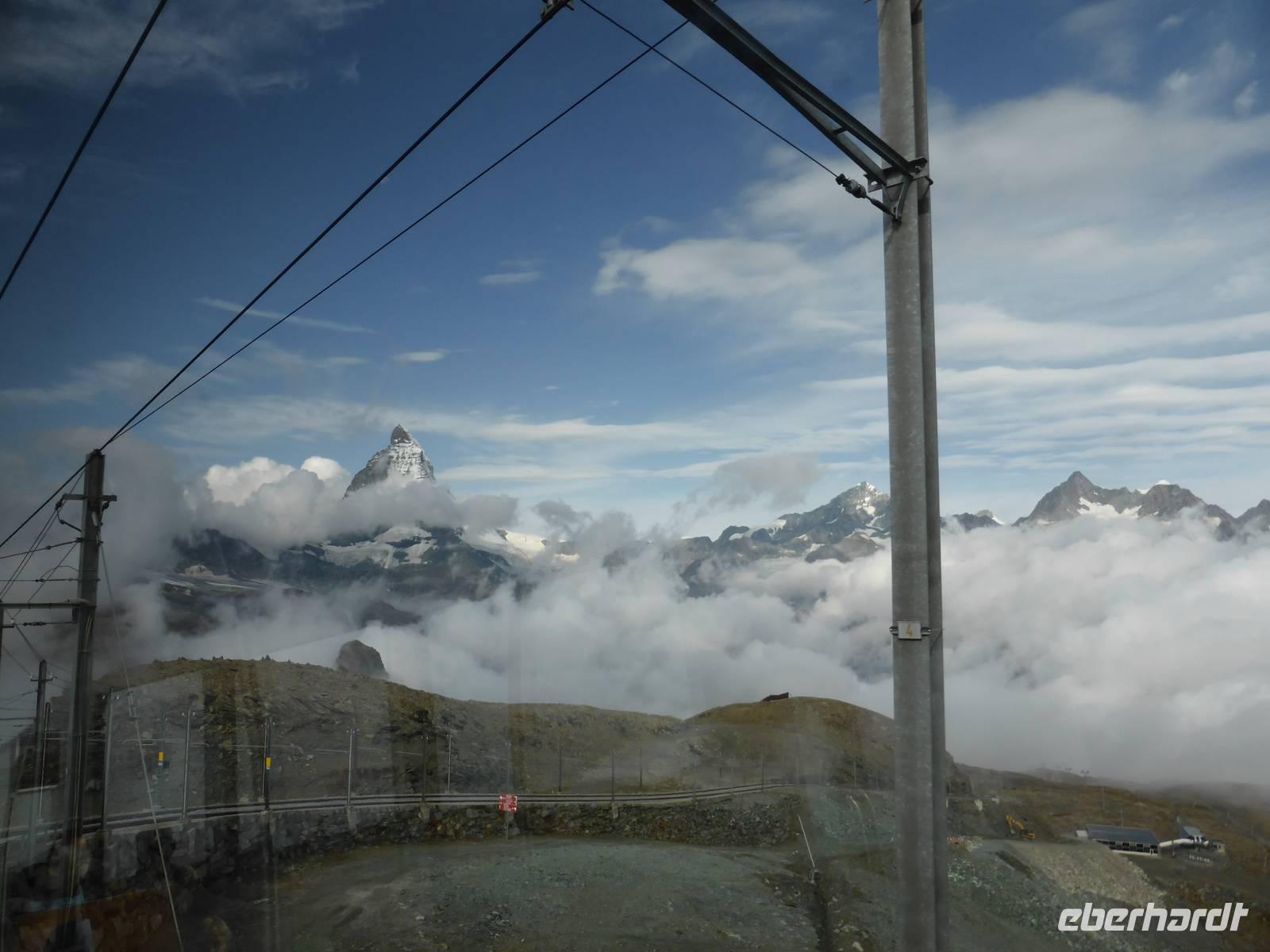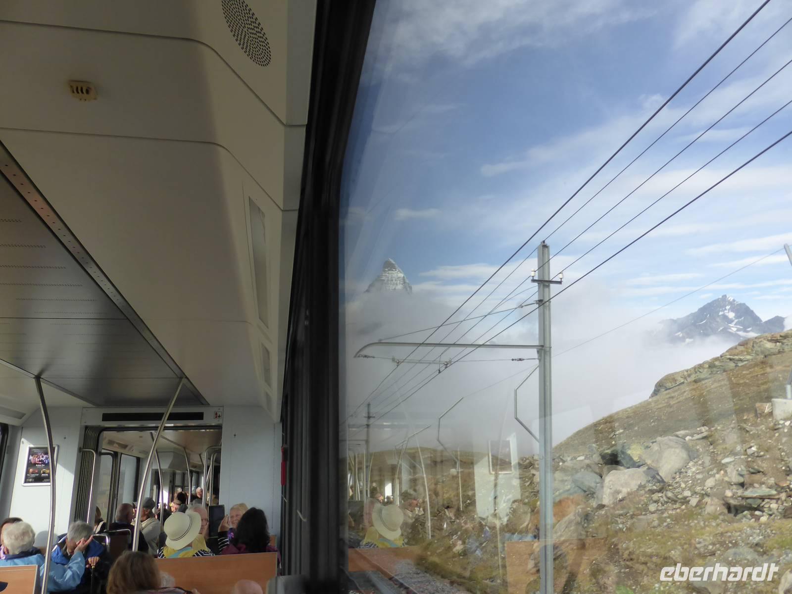 Sonne und blauer Himmel bei unseren beiden Bahnfahrten sowie freie Sicht auf die Bergspitzen rund um das Matterhorn! Bei einer Reise in die Schweiz gehört immer auch eine große Portion Glück dazu!