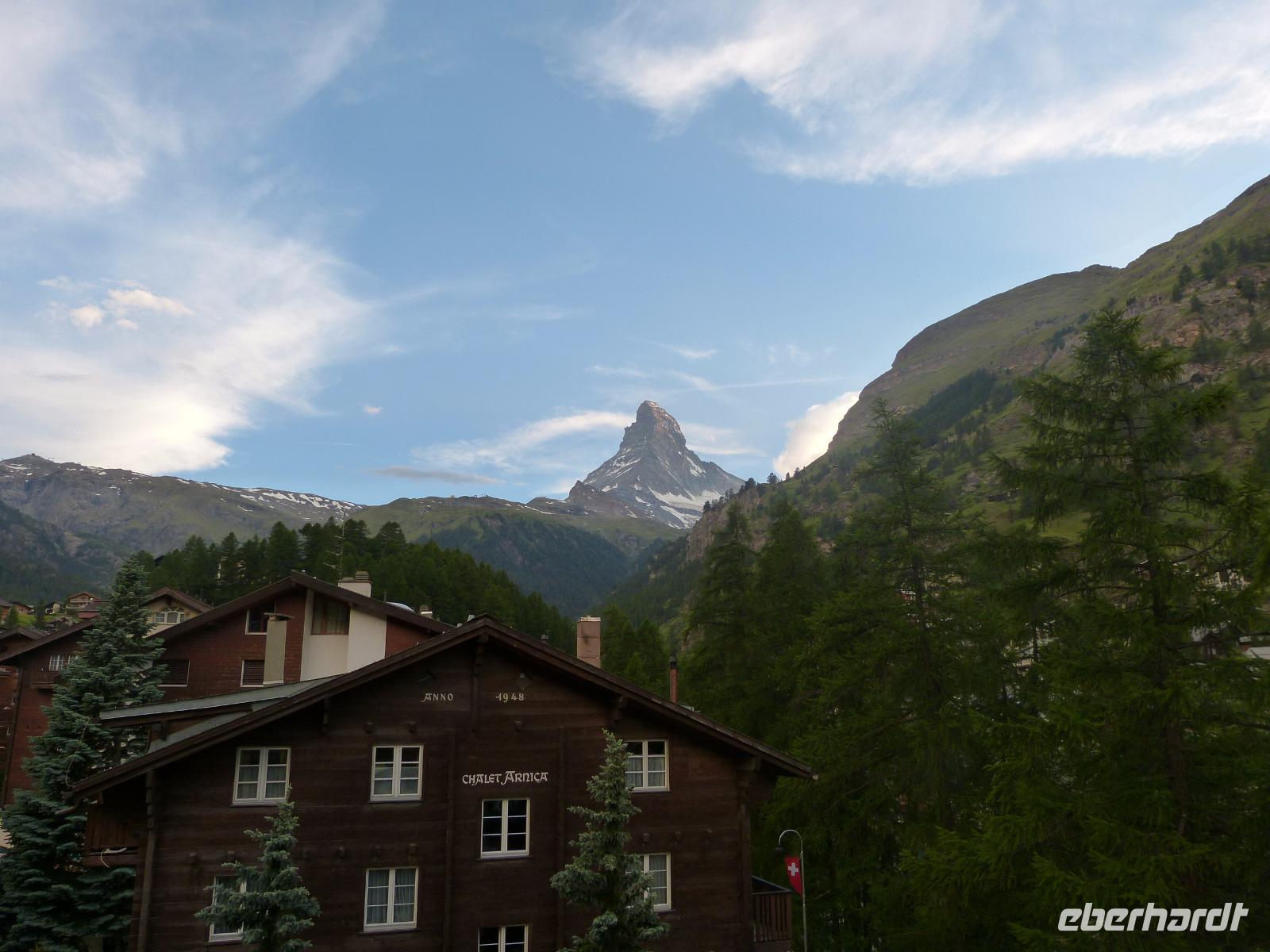 Unsere Gruppe marschierte gemütlich durch Zermatt, vorbei an den alten typischen Zermatthäusern zu unserem Hotel „Bristol" in dem wir die nächsten 2 Nächte verbrachten. Zu aller Freude standen die Koffer schon vor den Hotelzimmern.