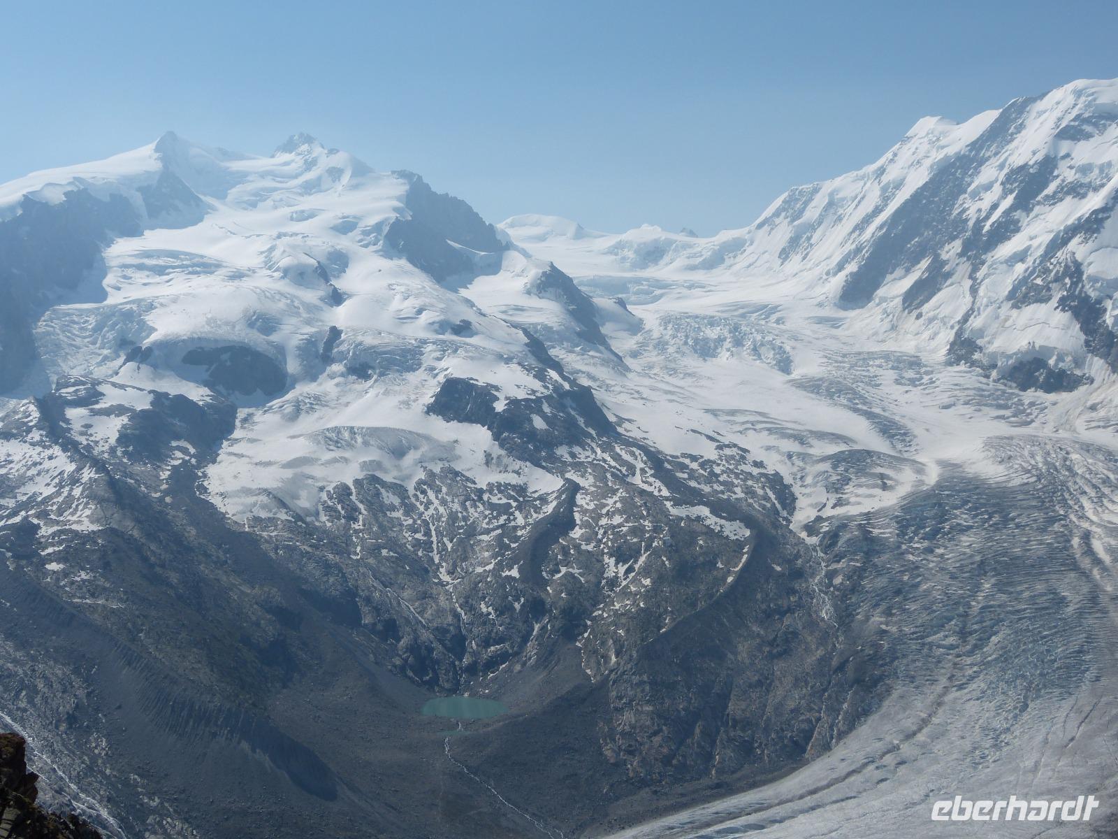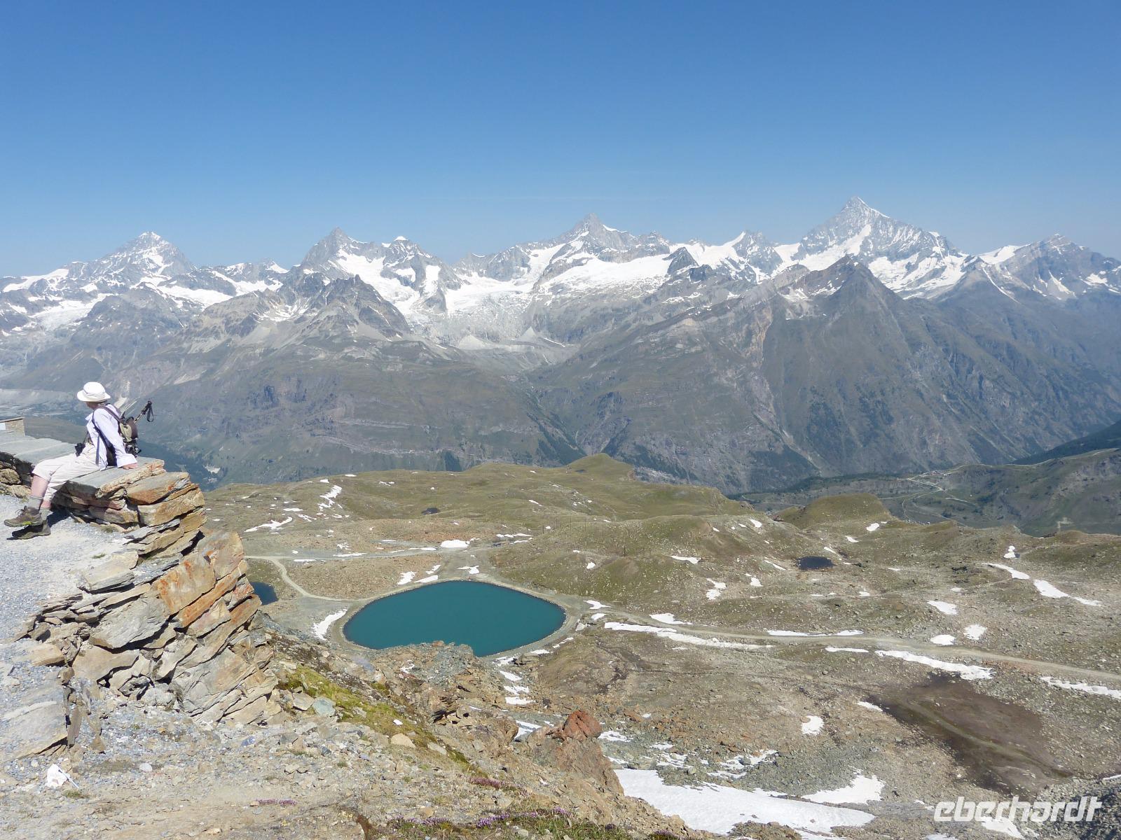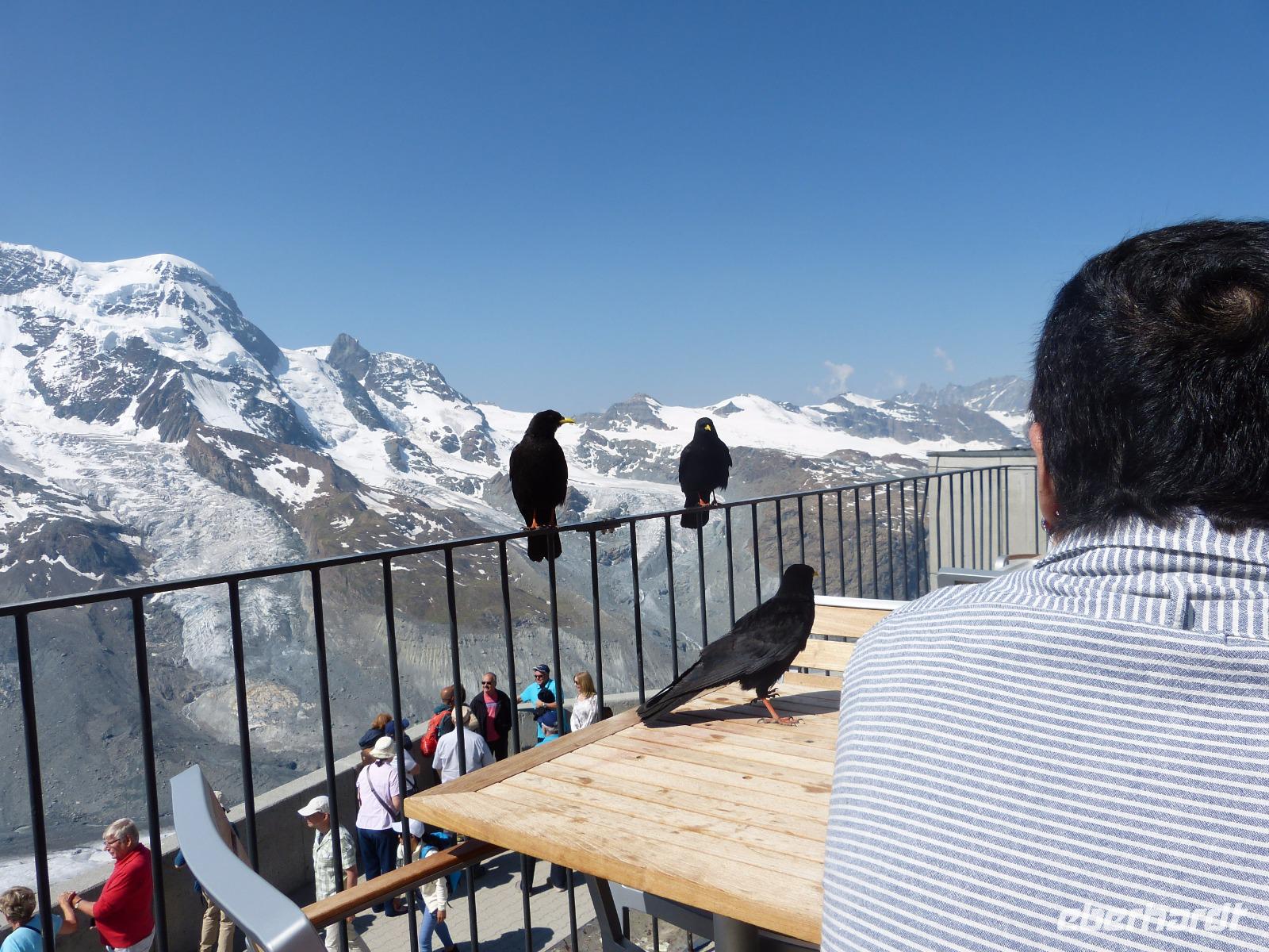18 Personen hatten sich am Vorabend gemeldet, um mit auf den Gornergrat zu kommen. So fuhren wir 9.12 Uhr mit der höchsten,frei im Gelände angelegten Zahnradbahn Europas auf den 3089 m hohen Berg. Oben angekommen hatten wir bei strahlendem Sonnenschein einen fantastischen Blick auf einige Viertausender und natürlich auch auf das Matterhorn und auf die leider immer kleiner werdenden Gletscher. Das weitere Programm war dann ganz individuell angepasst, und jeder konnte seinen Weg nach Zermatt selbst bestimmen.