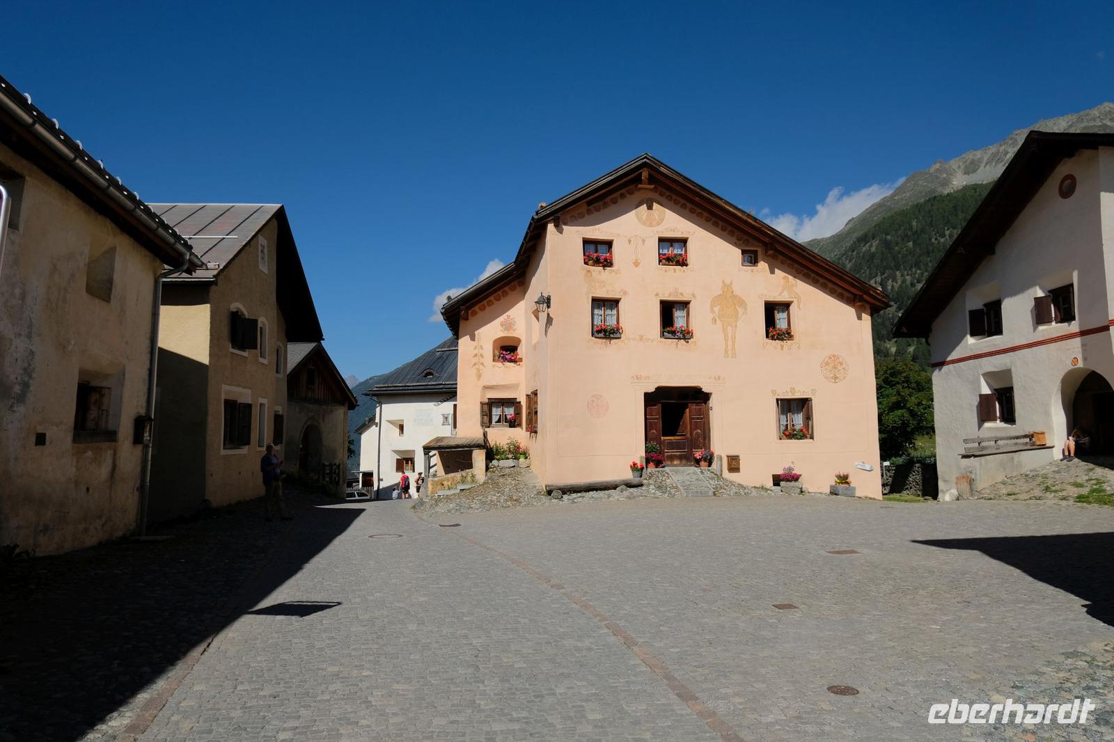 weiter bei Sonnenschein nach Guarda. Bei einem längeren Rundgang durch Guarda konnte man sich von der einzigartigen Architektur der Engadinhäuser überzeugen. Imposant war auch die verschiedene Gestaltung der Häuserwände mit Sgaffito. Für alle Gäste war dieser Aufenthalt ein sehr schönes Erlebnis. Anschließend fuhren wir entlang des Inn in das Oberengadin und besuchten St. Moritz. Der 75 minütige Stadtrundgang bei Sonnenschein genügte um einen kurzen Einblick in diesen Ort zu bekommen. Anschließend fuhren wir über den Julierpass (2284 m) nach Tiefencastel. Von dort ging es am Landwasser entlang bis nach Davos. Das 19.00 Uhr gereichte Abendessen ließ den Tag zufrieden ausklingen, zumal noch jeder Teilnehmer eine Urkunde für die Berninafahrt erhielt.