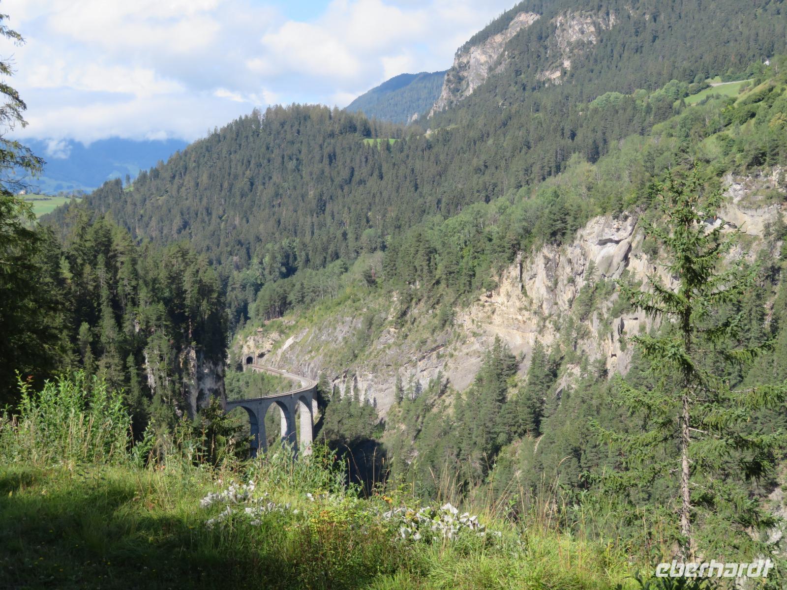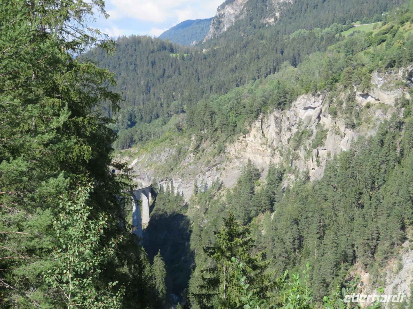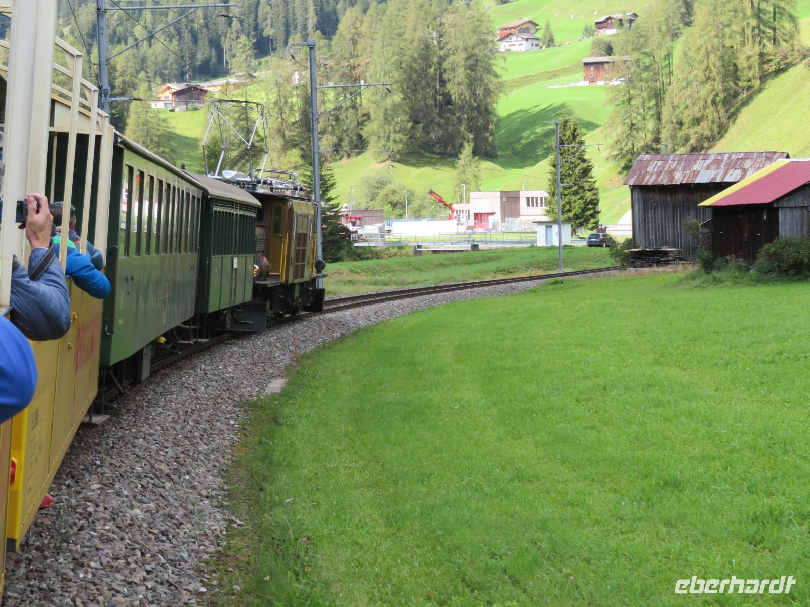 Auch wenn Wetterbesserung versprochen wurde, an diesem Morgen geht erst einmal ein skeptischer Blick zum Fenster hinaus. Nun zeigt sich immer noch ein bedeckter Himmel, aber der Regen hat aufgehört, das lässt hoffen. Bald haben sich unsere beiden Gruppen eingefunden, die Chauffeure stehen mit den Bussen bereit, nun kann es losgehen. Wir durchfahren Davos und biegen bald auf die Straße ein die uns hinauf zum Flüela - Pass bringen wird. Wir gelangen über die Baumgrenze, etwas Schnee ist hier auch zu sehen, aber der Blick ist heute frei auf die Bergwelt Graubündens. Oben am Pass legen wir einen Fotostopp ein; kalte Luft empfängt uns, kein Wunder, wir befinden uns hier mehr als 2 000 Meter über dem Meer. Nachdem die Fotos geschossen geht es wieder bergab; bald begrüßt uns der Inn mit seinen stürmischen Fluten, seinem Lauf folgen wir aufwärts zunächst nach Pontresina.Über den Bernina - Pass gelangen wir hinunter ins Veltin; wir sind in Italien im beschaulichen Ort Tirano angekommen wo wir den Mittag verbringen werden. Die nötige Stärkung bekommen wir beim Italiener um die Ecke und gegen zwei haben sich die Gruppen wieder versammelt und gemeinsam gehen wir einem ersten Bahnerlebnis entgegen. Auf dem Gleis stehen die roten Wagen des Bernina - Express schon bereit, die Plätze sind reserviert und bald beginnt die romantische Fahrt. Zunächst aufwärts verlassen wir Italien wieder und sind fortan im Süden Graubündens unterwegs. Wir drehen uns einmal im Kreis am Viadukt von Brusio, fahren an den Ufern des pittoresken Poschiavo - Sees entlang um wenig später aufzusteigen zu den Höhen des Bernina - Passes. Kahl zeigt sich hier die Landschaft, die bei der Weiterfahrt aber schnell wieder vom gesunden Wald und seinem kräftigem Grün abgelöst wird.Links kommt bald die mächtige Zunge des Morteratsch - Gletschers in unser Blickfeld, ein weiteres schönes Motiv für die Kameras. Leider geht aber nun die Bahnfahrt ihrem Ende entgegen; in Pontresina erwarten uns schon die Busse und mit ihnen gelangen wir nach Davos zurück, einem leckeren Abendessen entgegen.