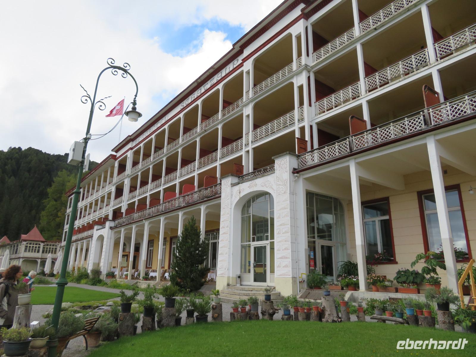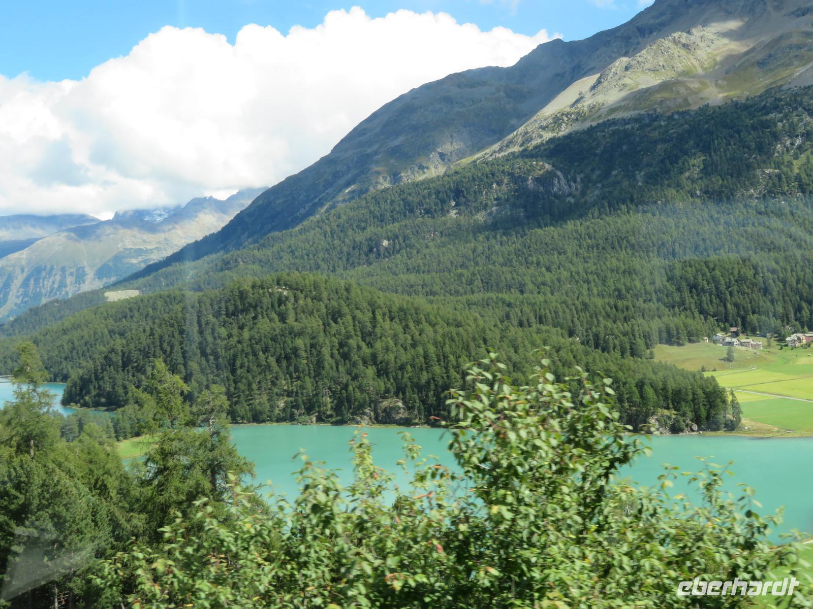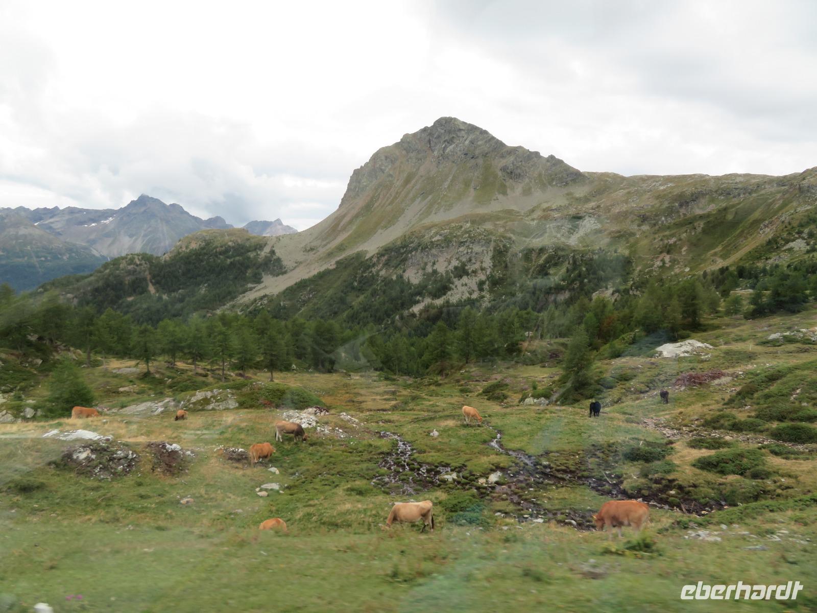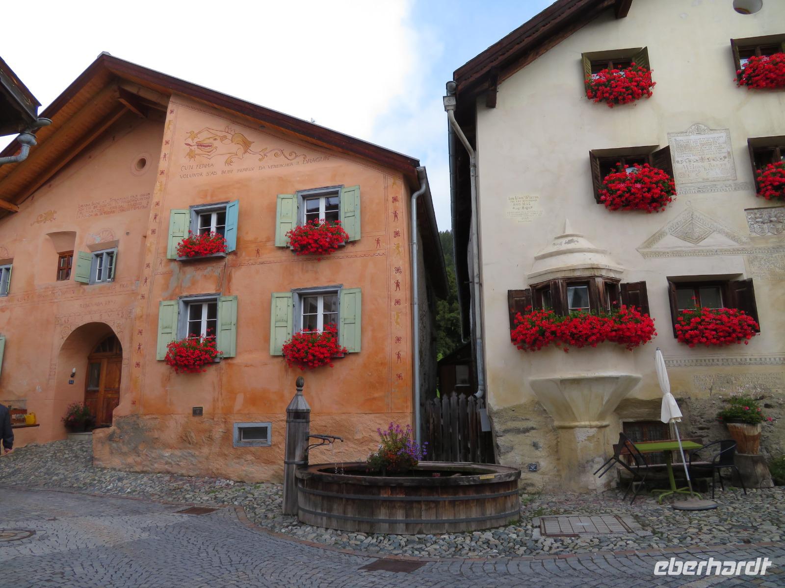 Weitere Wetterbesserung ist in Sicht; die richtige Motivation um uns noch ein Stückchen im reizvollen Graubünden umzusehen. Wir starten pünktlich in Davos, von hier schwingen wir uns erneut zu den Höhen des Flüela - Passes auf, eine Wolke hat sich hier festgehangen, die Sicht beträgt nur einige Meter. Vor uns aber ist blauer Himmel zu sehen und bald nähern wir uns dem Tal des Inn. Im rätoromanischen heißt dieser Fluss En und das Tal Engadin. Wir schwenken links ab und sind unterwegs zu einer natürlichen Terrasse im Berg. Hier oben, ganz malerisch, liegt der Ort Guarda. Es ist ein uraltes Engadiner Nest und wir erkunden den Ort, unser Bummel kommt dabei einer Zeitreise gleich. Wir staunen über den schönen Kratzputz, bewundern die farbenprächtigen Fassadenmalereien und von oben hat man einen unübertrefflichen Blick zu Tal. Als wir dann wieder unterwegs sind, folgen wir dem Inn aufwärts. Auf den Bergspitzen haben sich Wolken festgehangen, die Orte die wir durchfahren können malerischer nicht sein und bald erreichen wir Sankt Moritz, den Nobelort der Alpen. Gelegen am schönen See gelangen wir über eine lange Rolltreppe nach oben und sehen die Architektur die sich die Reichen und Schönen dieser Welt zu ihrem Ideal auserkoren haben. Ein Bummel bringt uns an den zahlreichen Nobelboutiquen vorbei, wir gelangen zum Zentrum des Ortes und hier beginnt nun etwas Freizeit für unsere zwei Gruppen.Die Zeit vergeht, die Sonne lacht und wir steigen an diesem Tag erneut an um auf über Zweitausend Metern unseren Mittagsimbiss zu genießen. Hier oben am Julierpass bewundern wir ein weiteres Mal die schroffe Gebirgslandschaft, schon die alten Römer wussten diesen wichtigen Weg zwischen Inn- und Rheintal zu nutzen.Die Zeiger der Uhr rücken aber unaufhaltsam weiter; die Nachmittgassonne sieht uns nun zu Tal fahren, wir sind im Oberhalbstein unterwegs. Die wilde Julia begleitet rauschend unsere Bahn, ihr Ziel ist der Rhein unser heutiges heißt noch einmal Davos. Bis Tiefencastel geht es unaufhörlich bergab, dann steigen wir wieder an. Wir sehen hier auch die Gleise der Glacier - Strecke. Diese einmalige Eisenbahnfahrt steht morgen auf dem Programm. Kurz vor unserem Ziel durchfahren wir noch so manch romantisches Gebirgsdorf und bald erreichen wir Davos. Wer möchte kann als Abschluss des Tages noch mit hinauf zur Schatzalp fahren; eine Standseilbahn führt dort hinauf wo der weltberühmte Roman „Der Zauberberg" von Thomas Mann spielt. Mit Blick auf Hotel und Sanatorium und dem Bummel durch den Kräutergarten der Schatzalp endet der heutige Tag, morgen heißt es Abschied nehmen vom gastlichen Davos.