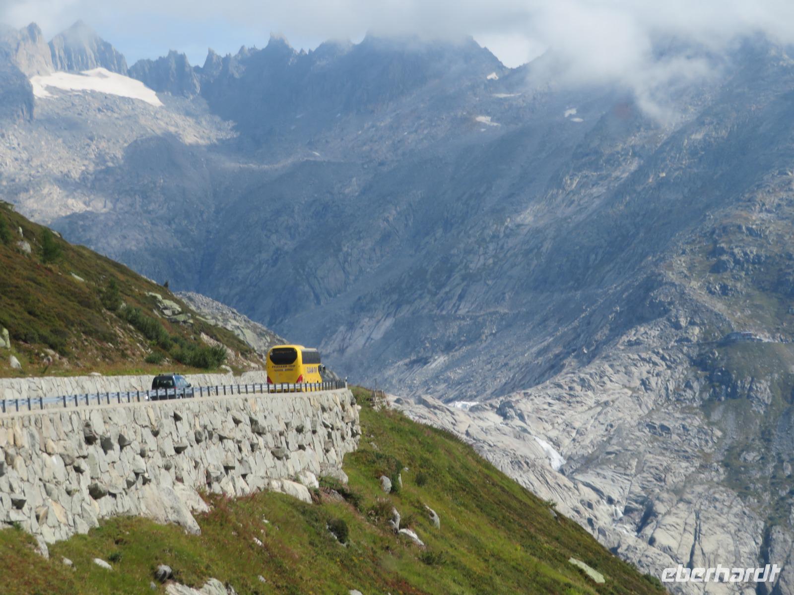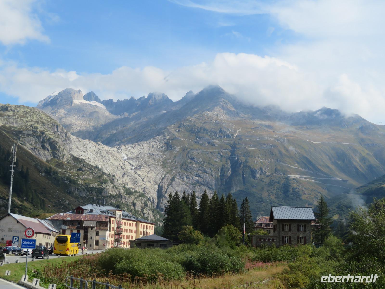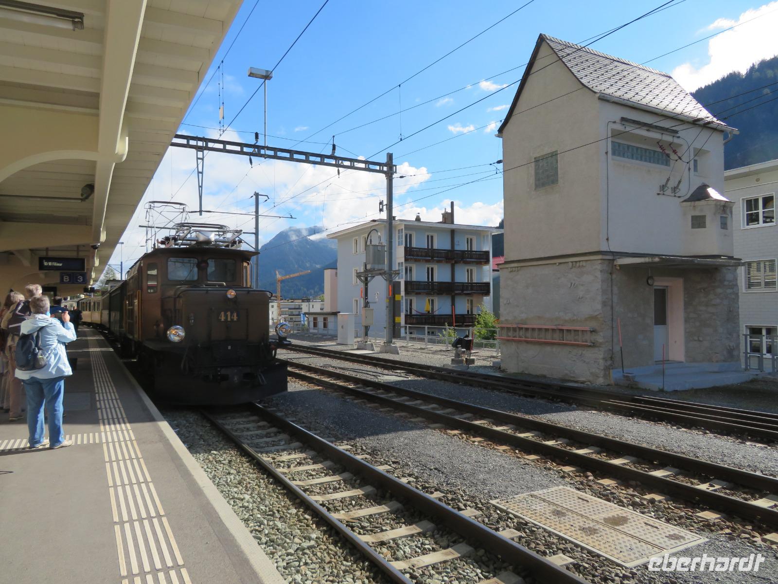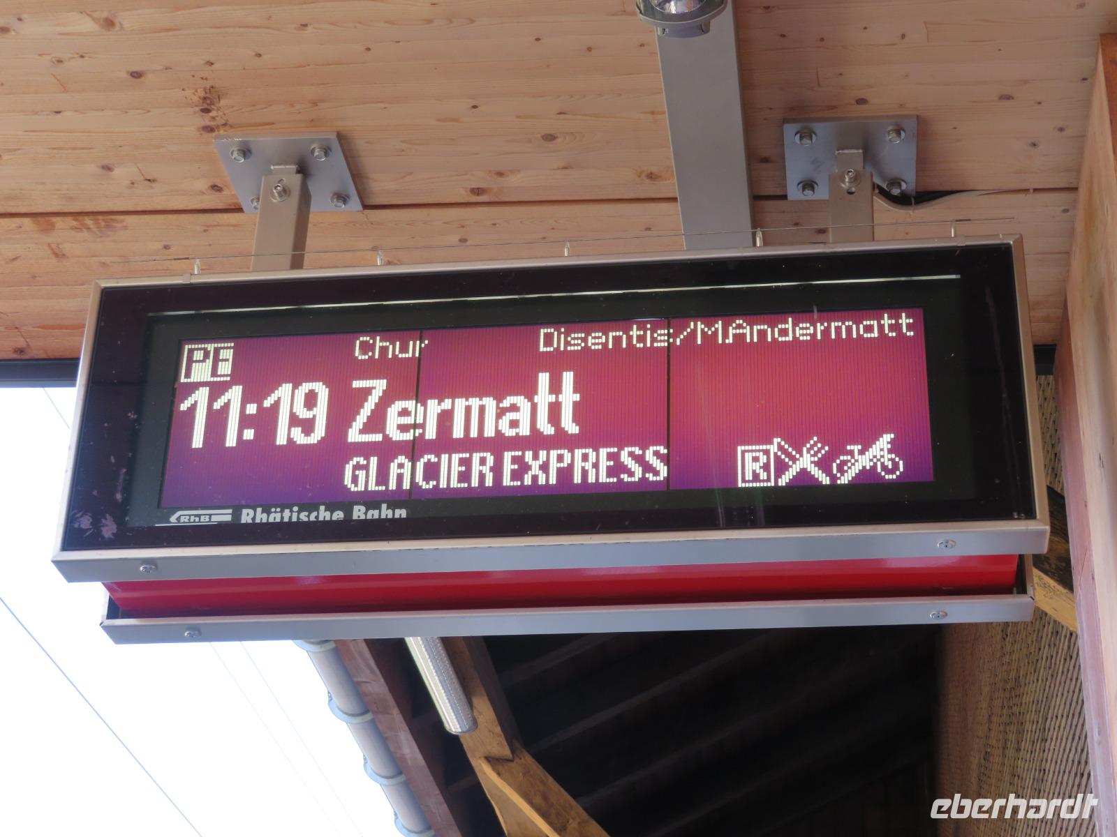Doch dieser Abschied fällt nicht ganz so schwer weil weitere schöne Tage vor uns liegen und der heutige bringt schon einen ganz großen Höhepunkt. Wir genießen ein letztes gutes Frühstück im Restaurant des Hotels, danach gibt es eine kurze Fahrt zum Bahnhof von Davos. Bevor wir aber zum Glacier - Express kommen steht eine Fahrt mit dem Vorortzug auf dem Programm. Wir sind freudig überrascht, dass wir nun mit einem historischen Zug fahren können und genießen dabei den Charme des Reisens längst vergangener Zeiten. Bis Filisur ruckeln wir etwa eine halbe Stunde um dort, einmal umgestiegen, den Reiskomfort des 21. Jahrhunderts zu genießen. Die Holzbänke haben nun bequemen Polstersitzen Platz gemacht, solcherart verläuft nun die weitere Fahrt und wir betrachten dabei die schöne Landschaft die an den Fenstern vorbei zieht. Wildromantisch verläuft die Fahrt durch die Albula - Schlucht; dann sind wir im breiten Rheintal unterwegs und in Graubündens Hauptstadt Chur wird die Lok das erste Mal gewechselt, dabei ändern wir nun die Fahrtrichtung. Bald treten die Berge wieder enger an die Strecke heran der noch ungebändigte Rhein hat sich hier sein schroffes Bett gegraben welches in Schlingen erfolgte, wir folgen seinem Lauf. Während die Landschaft an uns vorüberfliegt, genießen wir ein leckeres Mittagessen mit Spezialitäten der Region.Der Nachmittag ist angebrochen als uns die mächtigen Türme der Abtei Sankt Martin entgegenkommen, wir haben Disentis erreicht. Hier wird erneut die Lok gewechselt, strahlender Sonnenschein begleitet unsere Fahrt hinauf zum Oberalppass. Manch Wasserfall donnert zu Tal und wir halten den Atem an; sei es nun die nicht zu beschreibende Natur oder die Leistung der Eisenbahnbauer - einfach grandios was uns die Schweiz zu bieten hat. Ein kurzer Halt in Andermatt, ein Stück im Kanton Uri und dann verschwinden wir im Berg. Der Furka - Basistunnel bringt uns hinüber ins Wallis, als wir wieder am Licht auftauchen lacht uns die Sonne ins Gesicht. Nun folgen wir der jungen Rhone die uns unbändig den Weg zeigt: An Brig und Visp vorbei gelangen wir schließlich ins Nikolaital an dessen Ende sich unser Ziel befindet. Die Sonne hat fast ihren Tageslauf beendet, glitzernd begrüßen uns die Schneeberge, viele davon sind Viertausender.Die Fahrt endet in Zermatt; gleich nach dem Bahnhof und auf dem Weg zu unserem Hotel begrüßen wir das Matterhorn welches majestätisch zurückgrüßt indem es in der Abendsonne erstrahlt. An der rauschenden Vispa liegt das Hotel Perren; für unsere Gruppen seit jeher ein außerordentlich gastliches Haus und hier werden wir auch wie immer freundlich empfangen. Schnell sind die Zimmer bezogen und nun ist auch der Appetit groß, der mit einem leckerem 4 - Gang - Menü gestillt wird. Damit endet ein wirklich erlebnisreicher Tag der uns einmal quer durch die Schweiz brachte und unsere Reisegesellschaft kam in den Genuss, den überwiegenden Teil der Glacier - Strecke komplett durchfahren zu haben und das in den hochmodernen Panoramawagen - ein Genuss der besonderen Art!