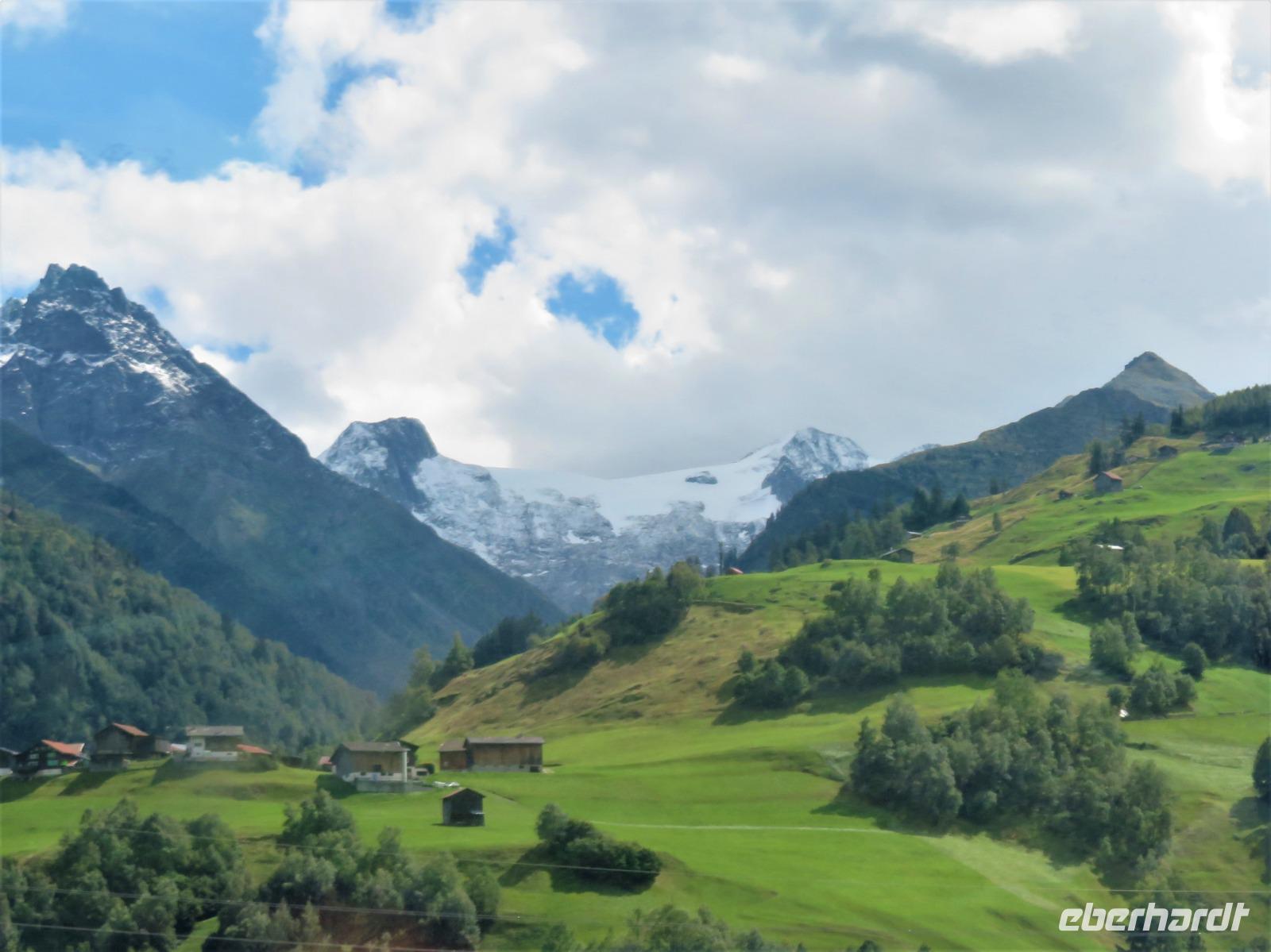 Lange stand die bange Frage im Raum: Können wir in diesem Jahr überhaupt reisen? Dankbar nehmen wir deshalb das Geschenk neuerworbener Reisefreiheit an und voller Vorfreude auf die Schönheiten die uns in der Schweiz erwarten werden, starten wir pünktlich in Dresden. Petrus hat uns an diesem frühen Morgen schon einmal schönes Wetter beschert, doch leider sieht die Prognose an unserem Zielort nicht so gut aus. Doch davon lassen wir uns zunächst nicht beeindrucken und wir genießen die schöne Fahrt die uns von Sachsen nach Bayern führt. Der Sommer ist schon vorangeschritten und die Felder weitestgehend abgeerntet. An Nürnberg vorbei nehmen wir Kurs auf Ulm und von weitem können wir den höchsten Kirchturm der Welt, den das Ulmer Münster ziert, bewundern. Fast störungsfrei verläuft die weitere Fahrt; als wir im Allgäu anlangen verschwindet die Sonne, Wolken haben sich vor die Alpen gelegt und in ihrem Stau öffnet Petrus nun seine Schleusen. Auch wenn wir darauf vorbereitet waren, der Beginn eines Urlaubs könnte besser sein, aber gegen diese Mächte kommen wir nicht an. Deshalb überlegen wir auch nicht lange, gelangen durch Vorarlberg bald in die Schweiz und hier schwenken wir zunächst in das Rheintal ein. Beim überqueren des Flusses sehen wir wie sich die mächtigen Wassermassen des angeschwollenen Rheins unbändig bergab wälzen, kleinere Bäume und grauen Schlamm mit sich führend. Dennoch nehmen wir nun Kurs auf die Berge; bei Landquart gelangen wir in ein Seitental und nun geht es immer weiter bergauf. Hier hat sich nun der Regen vorerst gelegt und als wir oben in Davos ankommen, sind kurz auch einmal die Berge zu sehen.Bald gelangen wir zu unserem Hotel; schnell sind die Formalitäten erledigt und die Zimmer können bezogen werden. Mit dem nötigen Appetit treffen sich unsere beiden Reisegruppen im Restaurant und begleitet von munteren Gesprächen genießen wir das erste gemeinsame Diner dieser Reise. Der Blick nach draußen zeigt uns nun wieder Regen...Ein verregneter Tag in Davos