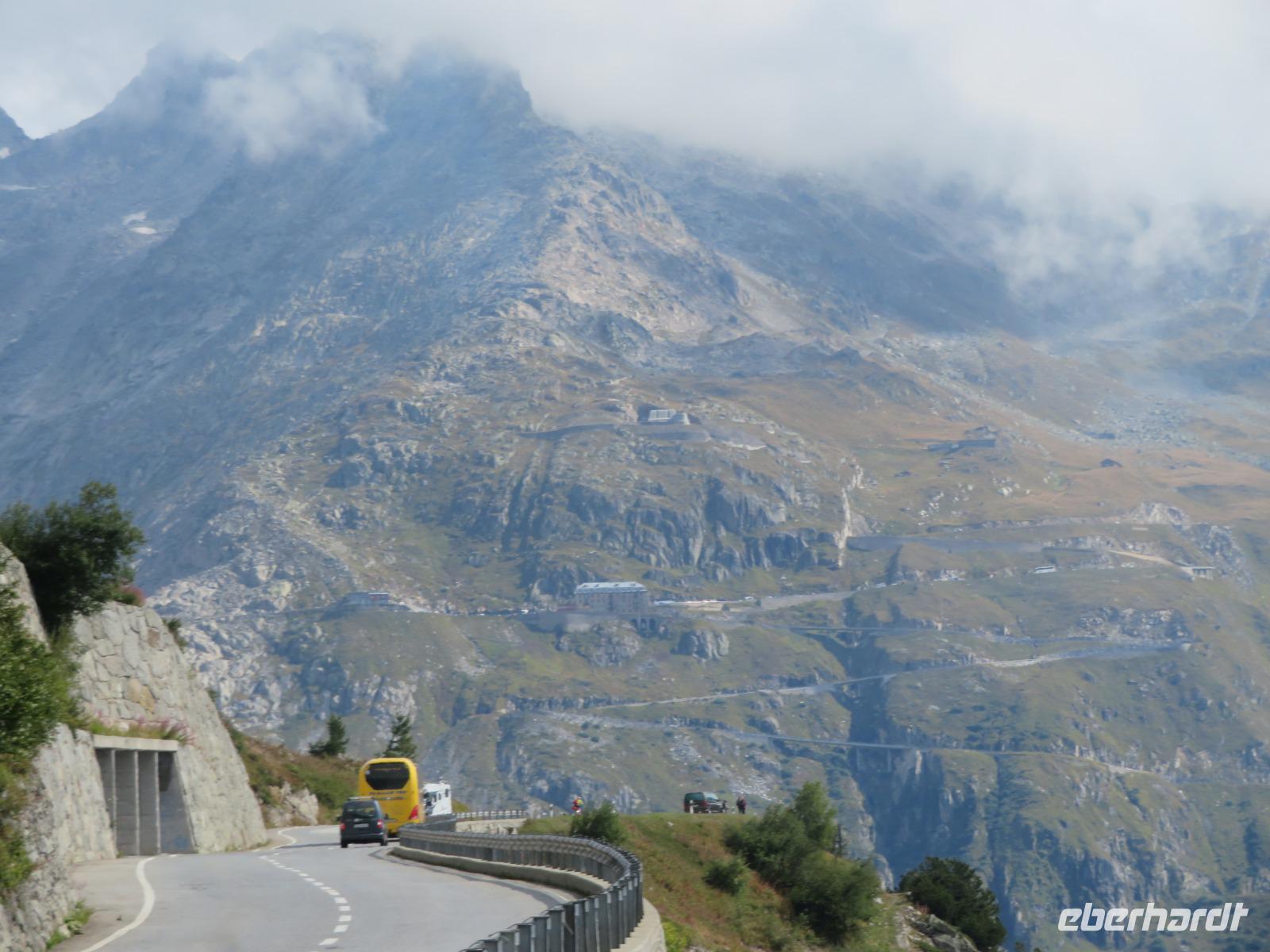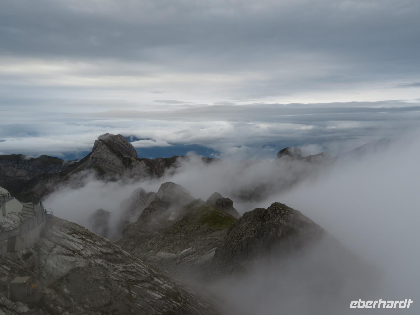 Der Wettergott verwöhnt uns auch heute. Wer möchte kann noch eine Bahnfahrt genießen und in einer weiteren Perspektive die Berge neu entdecken die Zermatt umgeben. Nur wenige Schritte vom Hotel entfernt verschwinden wir in einem Tunnel, kalte Luft schlägt uns entgegen. Nun steht eine besondere Auffahrt auf dem Programm. Mitten im Berg verläuft die Standseilbahn hinauf zur Sonnenterrasse Sunnega. In Windeseile kommen wir oben an und genießen den wunderschönen Blick auf die Berge. Eine weitere Etappe bringt uns mit kleinen Kabinen zum Blauherd; hier müssen wir erneut umsteigen um bis zur Spitze des Rothorns vorzudringen. Hier erfahren wir auf einem kleinen Rundweg einiges über die Erstbesteigung der Berge die wir von hier aus sehen können. Nach dem Aufenthalt auf der Spitze fahren wir wieder hinab zum Blauherd und wer möchte kann auf den Spuren der Murmeltiere hinabgehen. Etwas schwindelfrei muss man aber auf diesem schmalen Pfad schon sein, dennoch begeistert uns einmal mehr das Panorama welches uns umgibt. Und dann lässt sich doch noch ein Murmeltier sehen; ganz gemütlich genießt es auf einem Grashügel sein Mittagessen und wir schauen ihm dabei zu. Weiter geht der etwas beschwerliche Weg bergab; entschädigt werden wir durch die einmaligen Blicke und auf der Terrasse des Bergrestaurants holen wir uns die Stärkung nach dieser angenehmen Mühsal.Die Sonne wandert weiter in Richtung Westen; am Nachmittag ziehen einige Wolken auf, sie dekorieren wie weiße Kissen die Berge. Wir schauen uns nun noch das schöne Museum an; das alte Zermatt liegt wie eine Ausgrabung unter dem Eingang, hier gibt es viel von der Historie zu entdecken.Am Abend haben sich unsere Gruppen wieder eingefunden, leider heißt es Morgen schon Abschied nehmen von Zermatt, die Koffer warten darauf gepackt zu werden...Weiterreise zum Säntis 6.9.2020Das Wetter soll etwas unbeständiger werden, mal schauen wie der heutige Tag wird an dem es noch einiges zu entdecken gibt. Wir starten gegen neun mit dem Pendelzug welcher uns nach Täsch und somit zu unseren Bussen bringen wird. Ein letztes Mal blicken wir hinauf zum Matterhorn, es strahlt uns zum Abschied an, dann entschwindet es unseren Augen. Dieses Bild nehmen wir auf der weiteren Reise mit als eine schöne Erinnerung.Nun geht es hinab ins Tal der Rhone; noch einmal gleiten die hohen Berge an uns vorbei, wir sehen einen gigantischen Bergsturz und unten bei Visp schwenken wir in das Tal der Rhone ein; ihrem Verlauf werden wir nun aufwärts folgen. Die Straße führt uns direkt durch die zahlreichen Ortschaften des Goms hindurch; die uralten Häuser vermitteln uns ein weiteres Mal auf dieser Reise das Leben der Bauern von einst. Dann versperrt ein Berg das Tal, wir sehen die abenteuerlichen Serpentinen denen wir bald folgen werden, und erklimmen mit dem Bus nun die Höhen des Grimselpasses. Hier oben gönnen wir uns eine Pause, besuchen das kleine Gehege der Murmeltiere und bemerken vom Hasle - Tal ein interessantes Wetterphänomen: Mächtige Wolken quellen von unten herauf zum Pass und füllen bald den gesamten Teil dieser Hochebene aus, so dass wir bei unserer Abfahrt erst einmal völlig im Nebel verschwinden. Nun wird es bei langsamer Fahrt etwas unheimlich; die Sicht bleibt auf wenige Meter beschränkt und wir halten den Atem an. Aber mit sicherer Hand bringen uns Ingo und Gerald durch dieses schwere Terrain, eine Meisterleistung!Dann die Mittagspause; ein Käsestand hat sich nach hier oben verirrt, willkommener Anlass um sich von dieser Schweizer Spezialität etwas mit nach Hause zu nehmen.Dann geht es weiter; wie von Geisterhand verschwinden die Nebel und der Blick wird frei auf eine wirklich schöne Landschaft.Der Wetterbericht hatte leider Recht; dicke bleigraue Wolken ziehen über das Land und als wir über den Brünigpass in die Zentralschweiz einfahren, fängt es leicht an zu regnen. Als wir Luzern erreichen hat es aber nahezu aufgehört und wir gönnen uns eine Stippvisite in dieser wunderschönen Stadt. Ein Gang über die Kapellbrücke, ein Besuch der pittoresken Altstadt und ein sehnsüchtiger Blick ringsum, aber die Bergwelt die Luzern umgibt bleibt unseren Augen heute leider verschlossen.Dann nehmen wir die letzte Etappe unter die Räder. Von Luzern über das Toggenburg, vorbei am Zürichsee zum Säntisgebirge. Eine Stunde vor Ankunft kommen die Scheibenwischer des Busses zum Dauereinsatz und mehr gibt es leider von diesem Tag nicht zu berichten. Vielleicht nur noch, dass wir am späten Nachmittag unser schönes Hotel auf der Schwägalp erreichen und uns im gut geheizten Restaurant ein letztes leckeres Diner gut schmecken lassen, etwas traurig aus dem Fenster blicken und dabei dem Regen, der nicht aufhören will, zuschauen.Frühstück auf dem Berg und der Abschied von einer schönen Reise 7.9.2020Ein wenig hatten wir doch gehofft dass der Himmel gegen Morgen aufreißen könnte, doch ein erster Blick aus meinem Hotelfenster belehrt mich eines Besseren: Die Zweige der Bäume hängen traurig und regenschwer herab, tiefe Wolken wabern durch den Wald welcher das Hotel umgibt und als wir unten beim Koffer verladen zu den Tragseilen der Schwebebahn schauen, enden diese nach wenigen Metern schon irgendwo im Nirgendwo im dichten Nebel. Doch hinauf! Uns erwartet da oben auf dem Säntisgipfel ein leckeres Frühstück, auch bei diesem Wetter. Die Gondel schwebt in Windeseile über die Schwägalp, bald umgibt die Fenster der Bahn aber ein milchiges Nichts. Nur das Surren der Seile verrät die Bewegung die uns nach oben bringt, ein eigentümliches Gefühl. Doch dann, im oberen Drittel, zerreißt der Dunst und die gigantische Bergwelt zeigt sich uns in Teilen, das muss für heute genügen.Oben angelangt erwartet uns aber ein wirklich reichhaltiges Frühstücksbuffet und wir genießen es mit dem Blick auf den Teil der Berge der sich unseren Augen heute zeigt.Noch ein Blick in die schöne Ausstellung auf dem Berg, dann folgt die Abfahrt und unten angelangt habe