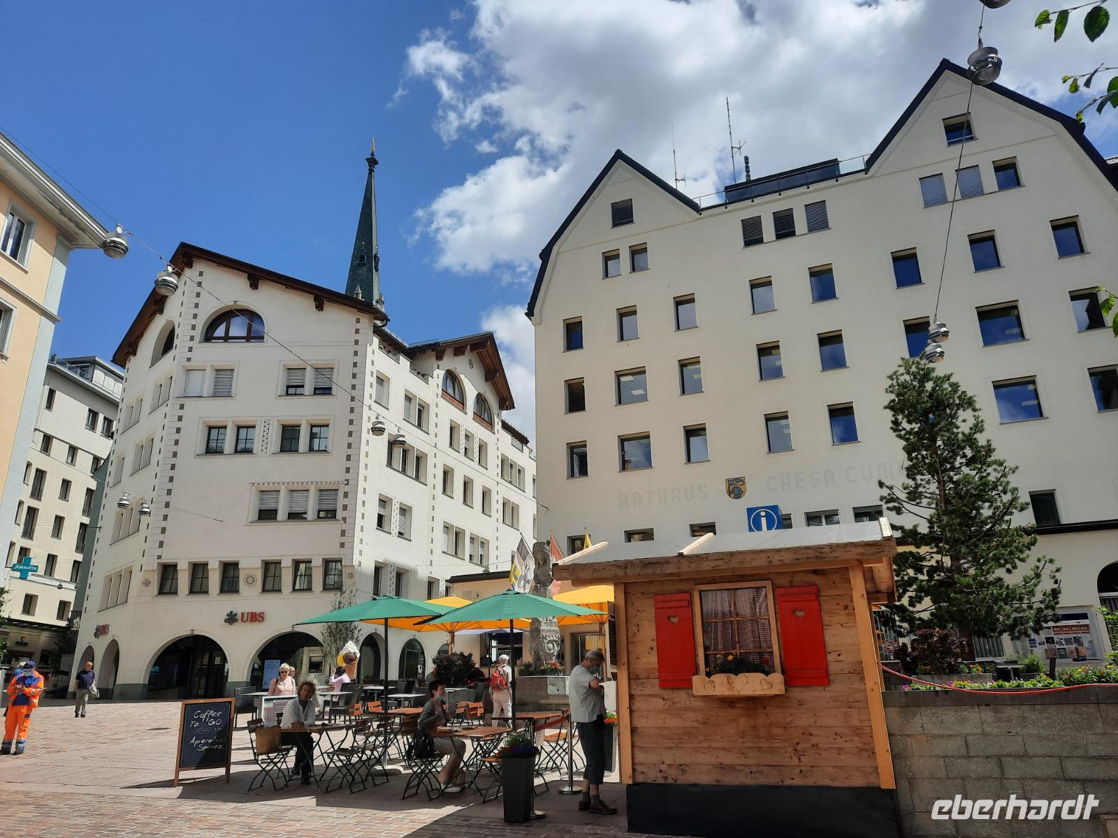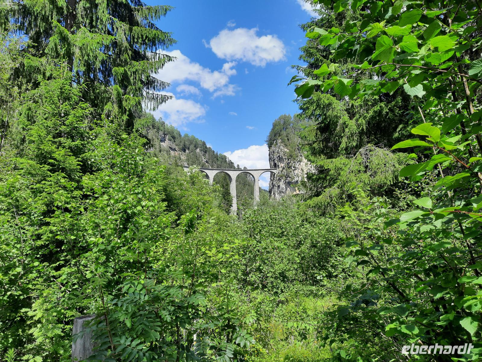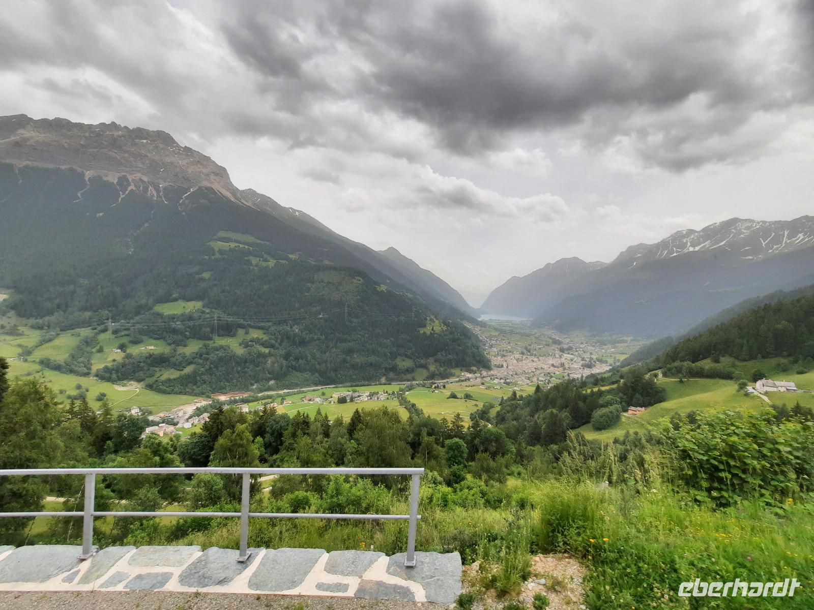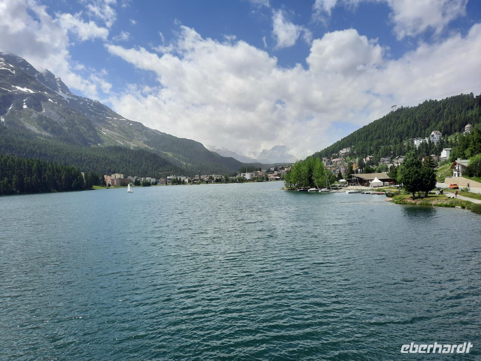 Nach einem ausgiebigen Frühstück begann unser Engadin-Ausflug. Mit dem "Engadin" ist übrigens das Bündner Inntal gemeint. Im Engadin spricht man Rätoromanisch und dort sagt man En, wenn man vom Inn spricht. Unsere heutige Fahrt führte uns wiederum über den Flüela-Pass vorerst ins Unterengadin und von Susch aus über Zernez, vorbei an Zuoz und Samedan nach St. Moritz. Zahlreiche Baustellen prägten das Ortsbild, aber das ist im Sommer durchaus normal. Die meisten Touristen besuchen St. Moritz nämlich im Winter. Das hatte natürlich auch einen Vorteil für uns, denn so konnten wir ganz in Ruhe flanieren. Zum Glück für die Männer, hatten auch noch einige der teuren Geschäfte geschlossen und so musste niemand seine Kreditkarte zücken. Ich führte unsere Gäste vorbei an den leider nur noch wenigen übrig gebliebenen typisch Engadiner Häusern bis zum sogenannten "Schiefen Turm", dem Rest einer alten Kirche aus dem Mittelalter. Dieser Turm ist übrigens eines der Wahrzeichen von St. Moritz, denn viele historische Bauten mussten Neubauten weichen. Für die meisten von uns ging es schließlich ganz einfach darum, St. Moritz zumindest mal gesehen zu haben, um mitreden zu können. Fast alle waren der Meinung, dass hier leider sehr viel von der Ursprünglichkeit verloren gegangen ist. Vorbei an den Oberengadiner Seen bzw. einer kleinen Mittagspause am Silvaplaner See ging es nunmehr zum Julierpass hinauf. Dieser Pass bildet den Übergang vom Engadin nach Tiefencastel bzw. ins Rheintal. Durch das Oberhalbstein-Gebiet gelangten wir nach Tiefencastel und legten abschließend einen Fotostopp am imposanten Landwasserviadukt bei Filisur ein, bevor es am Nachmittag durch das Landwassertal nach Davos zurück ging. Am späten Nachmittag nutzten dann die meisten unserer Gäste die Gelegenheit, mit der Schatzalpbahn in nur etwa vier Minuten zur 1.860 Meter hoch gelegenen Schatzalp zu fahren - von dort aus konnten wir einen fantastischen Blick auf die Landschaft Davos und die umliegenden Berge genießen. Schließlich waren wir im Besitz der Davoser Gästekarte und mit diesem speziellen Sommerangebot konnten wir zu einem stark reduzierten Preis hinauf- bzw. hinunterfahren.