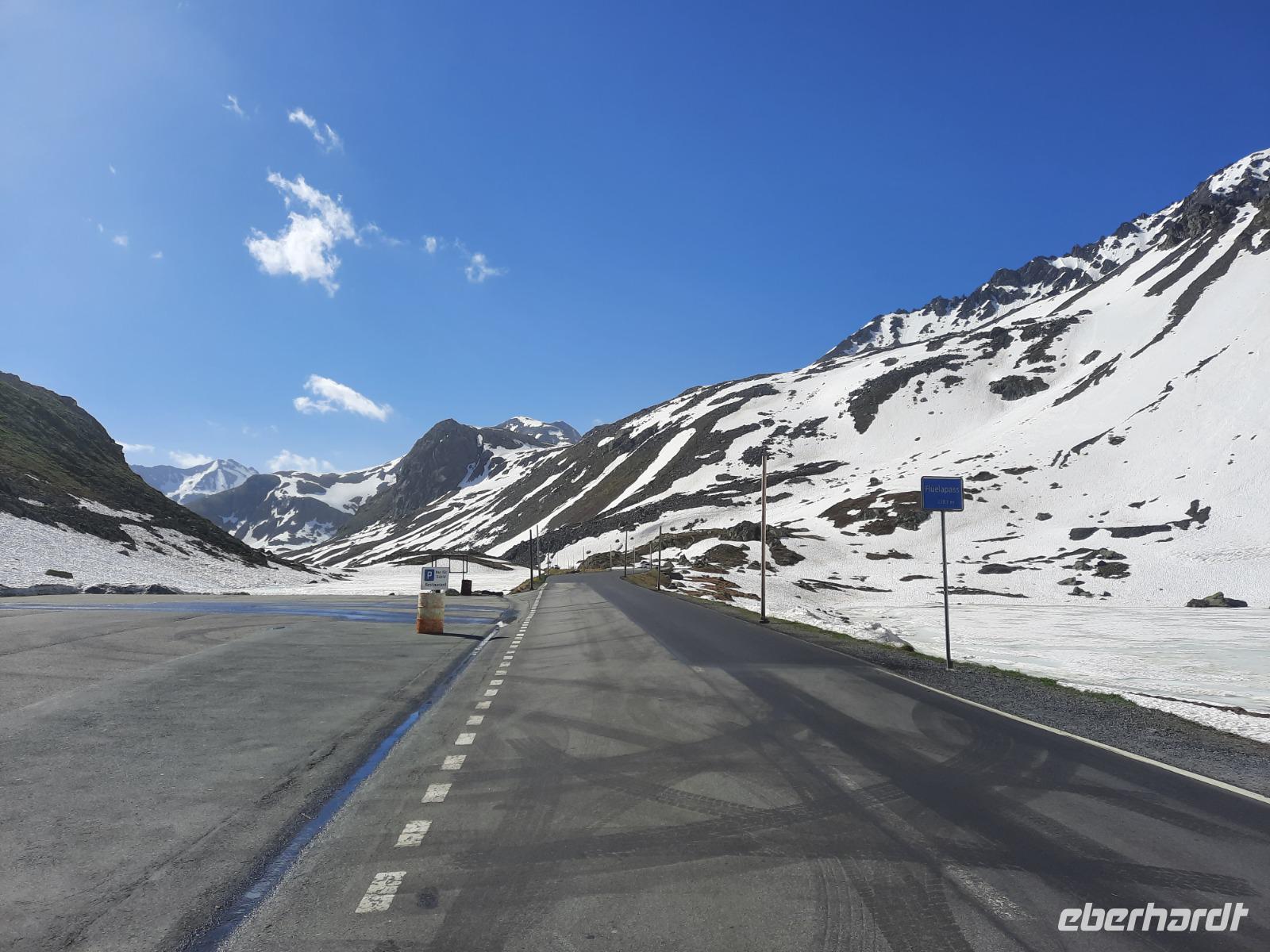 Bereits heute stand der erste Höhepunkt dieser Reise auf unserem Programm, die Fahrt mit dem Bernina-Express! Mit unserem Bus fuhren wir zunächst über den 2.383 m hoch gelegenen Flüela-Pass nach Pontresina und von dort aus weiter über den Bernina-Pass bis in den schweizerischen Grenzort Campocologno. Unterwegs legten wir selbstverständlich ein paar Foto-Stopps ein, denn während unserer Bahnfahrt am Nachmittag war das in diesem Umfang natürlich nicht möglich. So bestaunten wir unter anderem den imposanten Morteratsch-Gletscher, der seinen Ursprung im gigantischen Bernina-Massiv hat, bevor wir schließlich einen Aufenthalt auf der Passhöhe des Bernina-Passes planten. Bis hierher hatten wir bereits immerzu die Streckenführung des Bernina-Expresses zu sehen bekommen, denn die Straße führte uns ab Pontresina nahezu parallel zur Bahnstrecke. Später gelangten wir zum berühmten Kreisviadukt von Brusio, wo wir selbstverständlich einen Zug abwarteten, damit unser Foto perfekt wurde - schließlich dürfte es zu den meistfotografierten Bauwerken der Rhätischen Bahn zählen! Wir erlebten wir eine wahre Einzigartigkeit, denn der Bernina-Express beschreibt hier eine 107 Meter lange Schleife über einen Kreisviadukt. Diese 360-Grad-Kehre bringt wertvolle Höhenmeter, ein Griff in die Trickkiste der Bahnbauer, der sonst nur bei Kehrtunnels angewendet wird. Am Mittag war es dann endlich soweit wir stiegen in Campocologno kurz vor der schweizerisch-italienischen Grenze in den Bernina-Express ein. Die Bernina-Linie ist übrigens die einzige Schweizerbahn, die offen über die Alpen führt und wurde bereits 1910 fertig gestellt. Sie brachte uns nun vom mediterranen Tal des Val die Poschiavo von 553 m ü. d. M. hinauf zu den Gletschern des Bernina-Passes. Während der Höhenunterschied zwischen Campocologno und Ospizio Bernina etwa 1.700 Meter beträgt, misst die Horizontaldistanz nur etwa 22 Kilometer. Diese Höhendifferenz wird ohne Zahnrad-Strecken überwunden - trotz Steigungen von bis zu 70o/oo. Das ist das absolute Maximum, das eine Adhäsionsbahn noch nutzbringend bewältigen kann. Besonders raffiniert ist übrigens auch die Wahl der Linienführung, denn sie ermöglicht nicht nur die Überwindung der immensen Höhenunterschiede, sondern eröffnete uns auch atemberaubende Ausblicke auf eine imposante Bergwelt, auf Gletscher und Täler. Weiter hinauf ging es zum Lago di Poschiavo und durch die Ortschaften des Val di Poschiavo, einem italienisch-sprachigen Südtal des Kantons Graubünden, erreichten wir die Bernina-Passstraße. Diese ist gewöhnlich ganzjährig geöffnet und stellt die Verbindung zwischen dem Puschlav im Süden und dem Engadin im Norden dar. Damit ist der Pass gleichzeitig eine Sprachgrenze. Eine gelbe Tafel auf dem Pass signalisiert die Europäische Wasserscheide, das Wasser in Richtung Süden gelangt über die Flüsse Poschiavino, Adda und Po ins Adriatische Meer und das Wasser in Richtung Norden wird über den Inn und die Donau ins Schwarze Meer geleitet. Die 2-stündige Fahrt mit dem Bernina-Express verging wie im Fluge und in Pontresina wartete unser Buschauffeur Steffen bereits mit dem Bus auf uns und sogleich ging es über den Flüela-Pass nach Davos zurück. Ein langer und erlebnisreicher Tag war damit zu Ende.