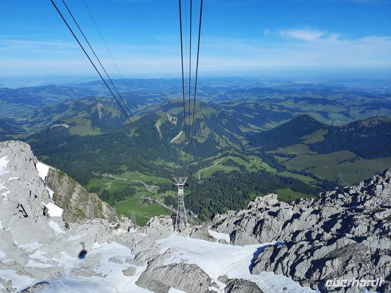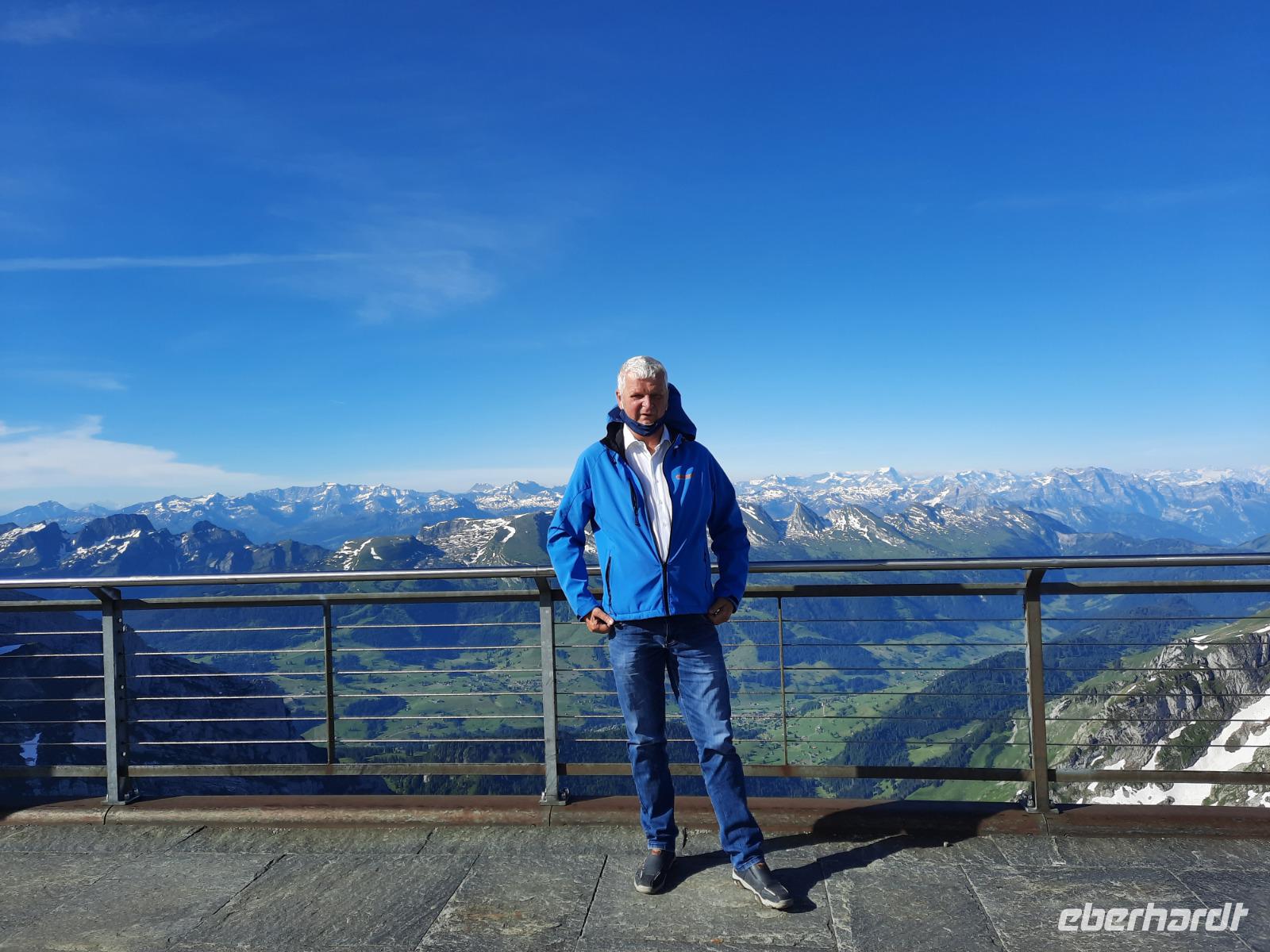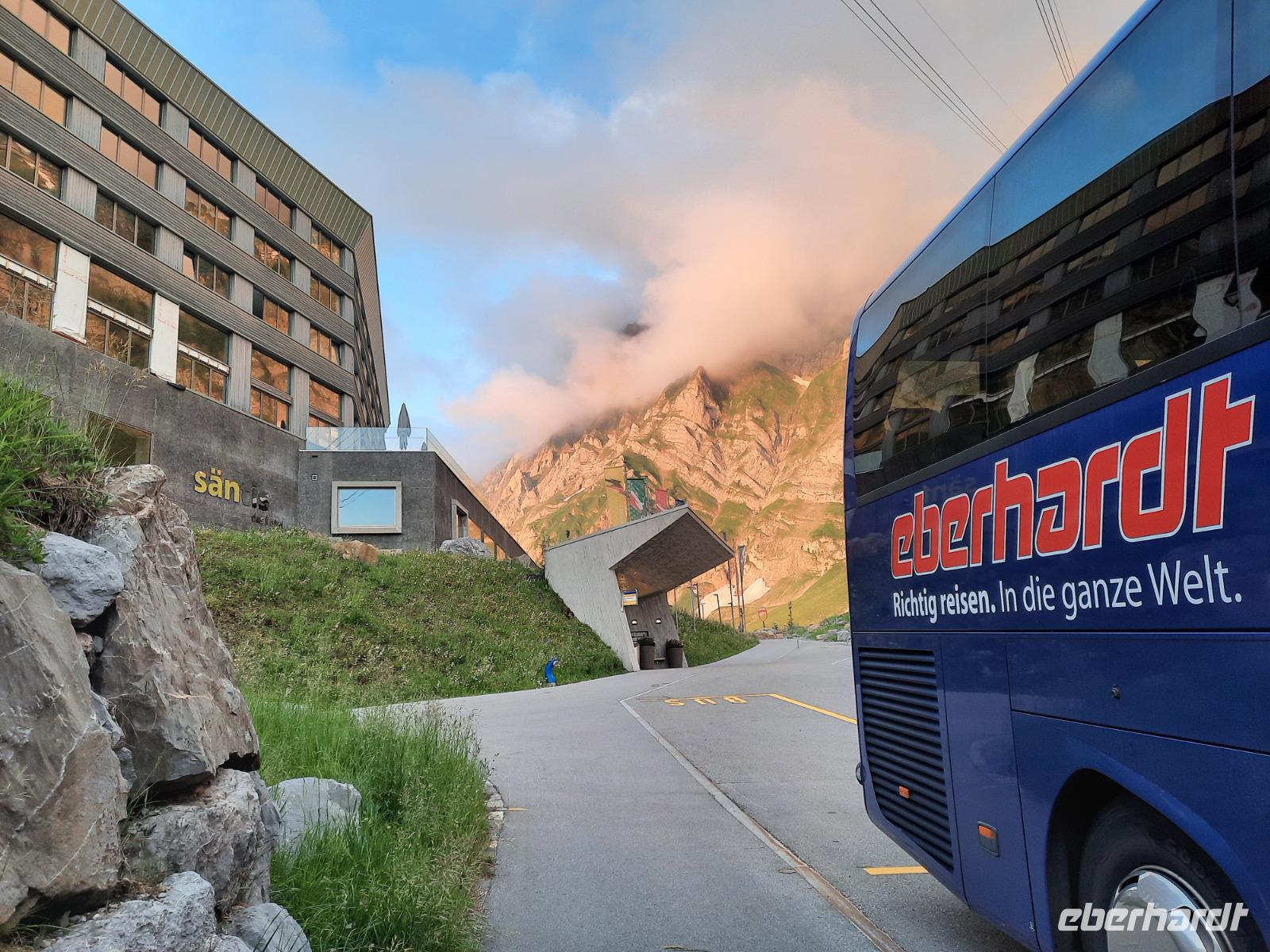 Den Abreisetag begannen wir mit einem weiteren großen Erlebnis, denn gleich früh ging es mit der Säntis-Schwebebahn hinauf zum etwa 2.502 Meter hohen Säntis. Dort nahmen wir unser letztes Frühstück ein - sozusagen ein "Panorama-Frühstück" mit grandiosen Aussichten, denn das Wetter hatte auch heute wieder ein Einsehen mit uns, besser konnte es nicht sein. Das Frühstück ließ keinerlei kulinarische Wünsche offen und derart gut gestärkt traten wir am Vormittag unsere Heimreise an. Zum Glück gibt es bei Eberhardt TRAVEL noch andere Reisen in die Schweiz, wo längere Aufenthalte auf der Schwägalp beziehungsweise auf dem Säntis vorgesehen sind. Nach herrlichen 9 Tagen mit überwiegend grandiosem Wetter sollte es also nun wieder nach Hause gehen. Über Ulm und Nürnberg kamen wir kurz nach 20 Uhr wohlbehalten und voller Eindrücke am Dresdner Flughafen an.