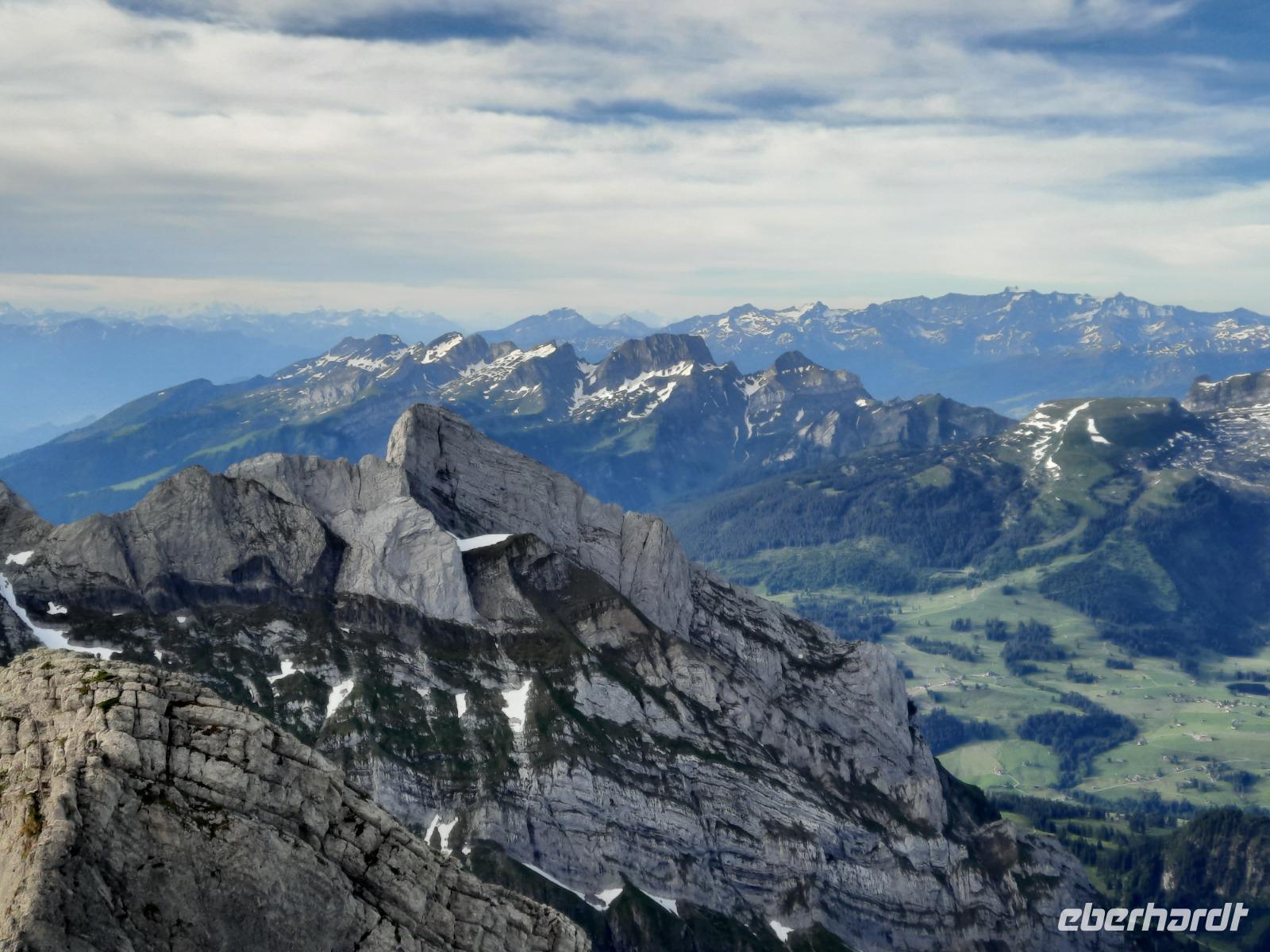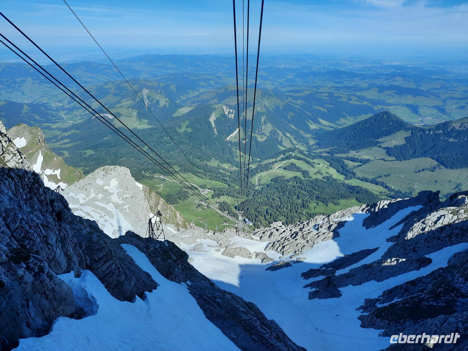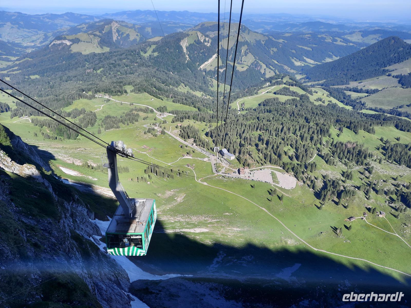 Den Abreisetag begannen wir mit einem weiteren großen Erlebnis, denn gleich früh ging es mit der Säntis-Schwebebahn hinauf zum etwa 2.502 Meter hohen Säntis. Dort nahmen wir unser letztes Frühstück ein - sozusagen ein "Panorama-Frühstück" mit grandiosen Aussichten, denn das Wetter hatte auch heute wieder ein Einsehen mit uns, besser konnte es nicht sein. Das Frühstück ließ keinerlei kulinarische Wünsche offen und derart gut gestärkt traten wir am Vormittag unsere Heimreise an. Zum Glück gibt es bei Eberhardt TRAVEL noch andere Reisen in die Schweiz, wo längere Aufenthalte auf der Schwägalp beziehungsweise auf dem Säntis vorgesehen sind. Nach herrlichen 9 Tagen mit überwiegend grandiosem Wetter sollte es also nun wieder nach Hause gehen. Über Ulm und Nürnberg kamen wir kurz nach 20 Uhr wohlbehalten und voller Eindrücke am Dresdner Flughafen an.