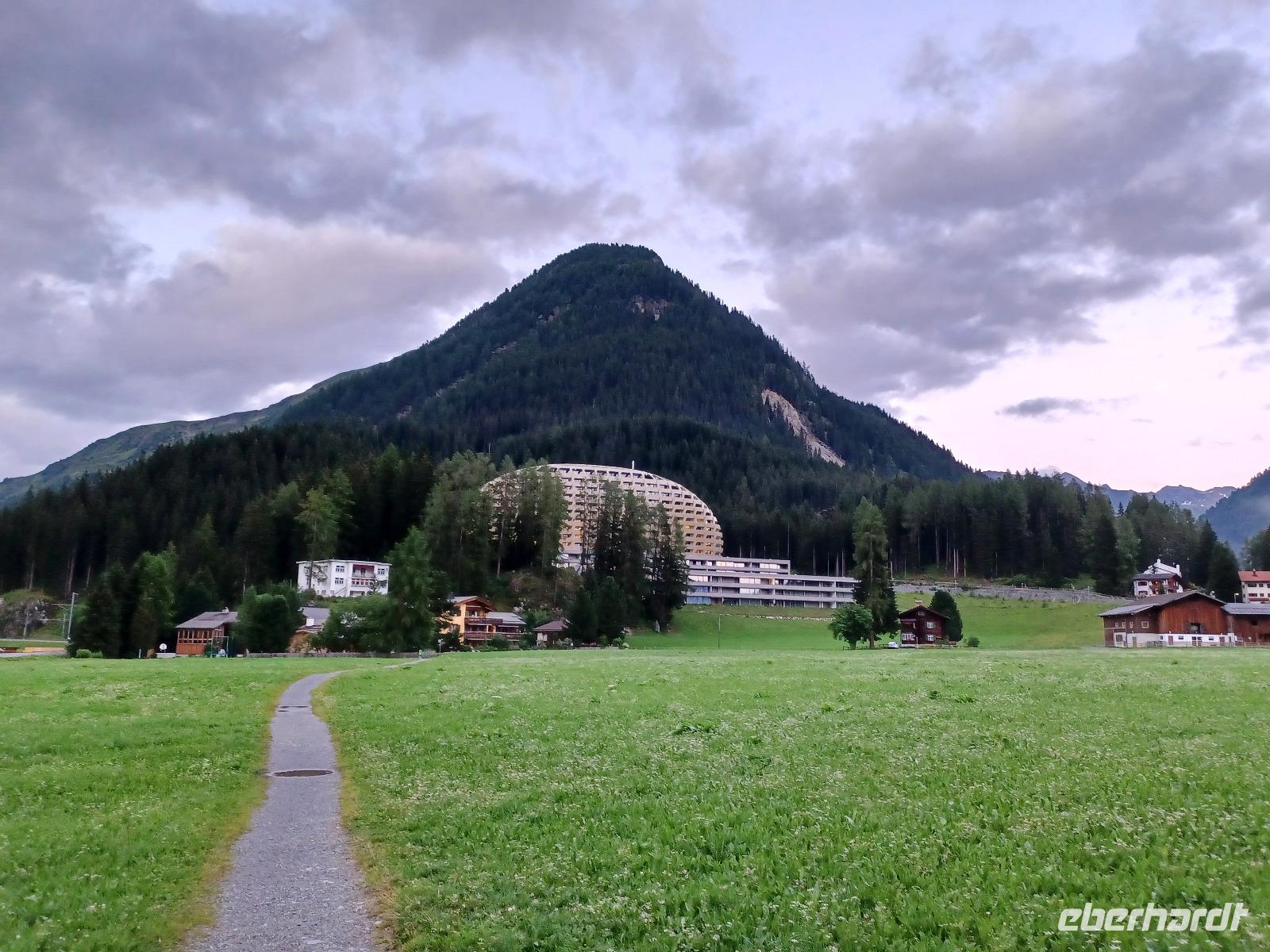 30.7.2021. Petrus hat seine gute Laune behalten. Gleich nachdem die Sonne über den östlichen Bergen von Davos aufgegangen ist, bescheint sie das Tal mit ihren goldenen Strahlen. Heute kann jeder unserer Reisgeäste die schöne Gegend individuell erschließen. Mit der Davos - Card sind alle öffentlichen Verkehrsmittel in der recht großen Gemeinde gratis und die Bergbahnen können mit Ermäßigungen benutzt werden; also heißt es nach dem kräftigenden Frühstück: Auf geht es! Die Luft ist warm, die Sonne lacht und der Möglichkeiten gibt es viele. Unweit unseres Hotels führt die Schatzalpbahn auf den Berg. Hier verbrachte Thomas Mann einige Zeit seines Lebens; an diesem ruhigen Platz holte sich der große Dichter Inspiration für seinen „Zauberberg", das Jugendstilhotel in dem er mit seiner Frau wohnte, blieb bis zum heutigen Tag erhalten. Gleich dahinter zeigt uns der Alpengarten die imposante Flora dieser Berge; ein Rundgang weit oberhalb von Davos bringt in klarer Luft angenehme Erholung. Aber Davos hat noch viel mehr zu bieten: Ein Fahrt hinauf zum Jakobshorn, sie erfolgt in drei Etappen, zählt zu den ganz großen Erlebnissen hier in Graubünden. Oder auch, auf der gegenüberliegenden Seite, die Parsenn - Bahn die zahlreiche Touristen ins Reich der Murmeltiere bringt.