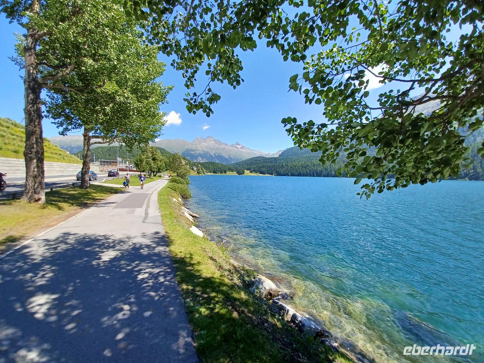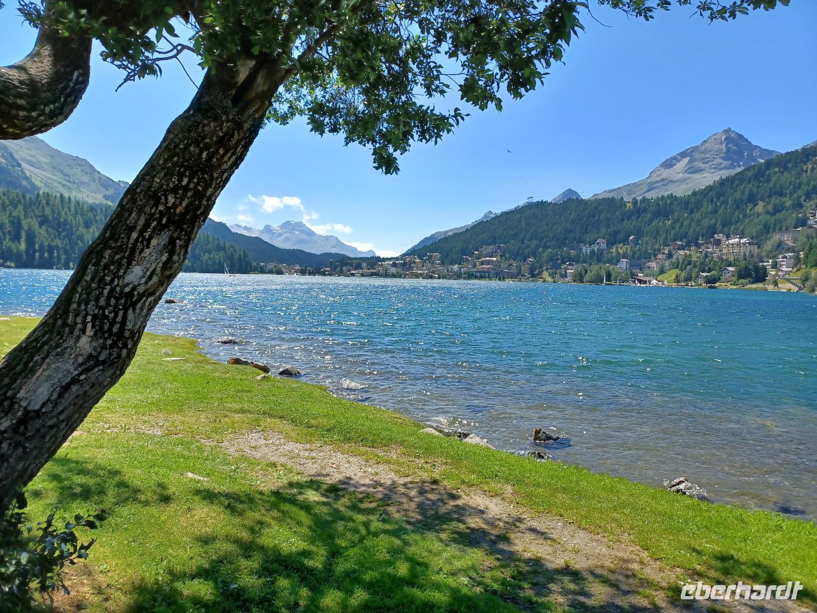 Nach diesem eindrucksvollen Besuch setzen wir die Fahrt fort und folgen dem Flussverlauf des Inn aufwärts. Ein wunderbarer Kontrast von grünen Wiesen, blauem Himmel und bewaldeten Bergen begleitet unsere Fahrt die zunächst in Sankt Moritz unterbrochen wird. Diesen wohl berühmtesten Ort der Alpen wollen wir uns unbedingt anschauen. Über eine Rolltreppe gelangen wir ins Zentrum und ein kleiner Bummel führt uns entlang der Hotels, an den Edelboutiquen vorbei und all diese Impressionen werden von den teilweise weißen Kuppen der Berge eingerahmt. Nach diesem Aufenthalt im luxuriösen Ort haben wir im Bus wieder Platz genommen; entlang der Seen die der Inn hier bildet, gelangen wir bald wieder über die Baumgrenze hinaus. Durch ein mächtiges Hochtal hindurch kommen wir bald zum Julier - Pass. Eine nachmittägliche Rast, erneut weit über 2 000 Meter, wird von strahlendem Sonnenschein begleitet. Hier in dieser grandiosen Bergnatur möchte man ewig bleiben, aber es muss weiter gehen. Wir gelangen über Serpentinen ins Oberhalbstein und von hier durch die pittoresken Orte die am Weg liegen bis nach Tiefencastel. Nun geht es wieder stetig bergan; hier sehen wir nun schon Teile der Glacier - Strecke welcher wir am Samstag folgen werden. Auch in diesem Teil unserer Rundfahrt genießen wir die Bergimpressionen und staunen über diese grandiose Natur. Am Nachmittag erreichen wir, immer noch bei strahlendem Sonnenschein, Davos; hier schließt sich der Kreis und die Runde die wir gedreht haben ist nun beendet. Alle sind sich einig: Ein schöner Tag liegt hinter uns!