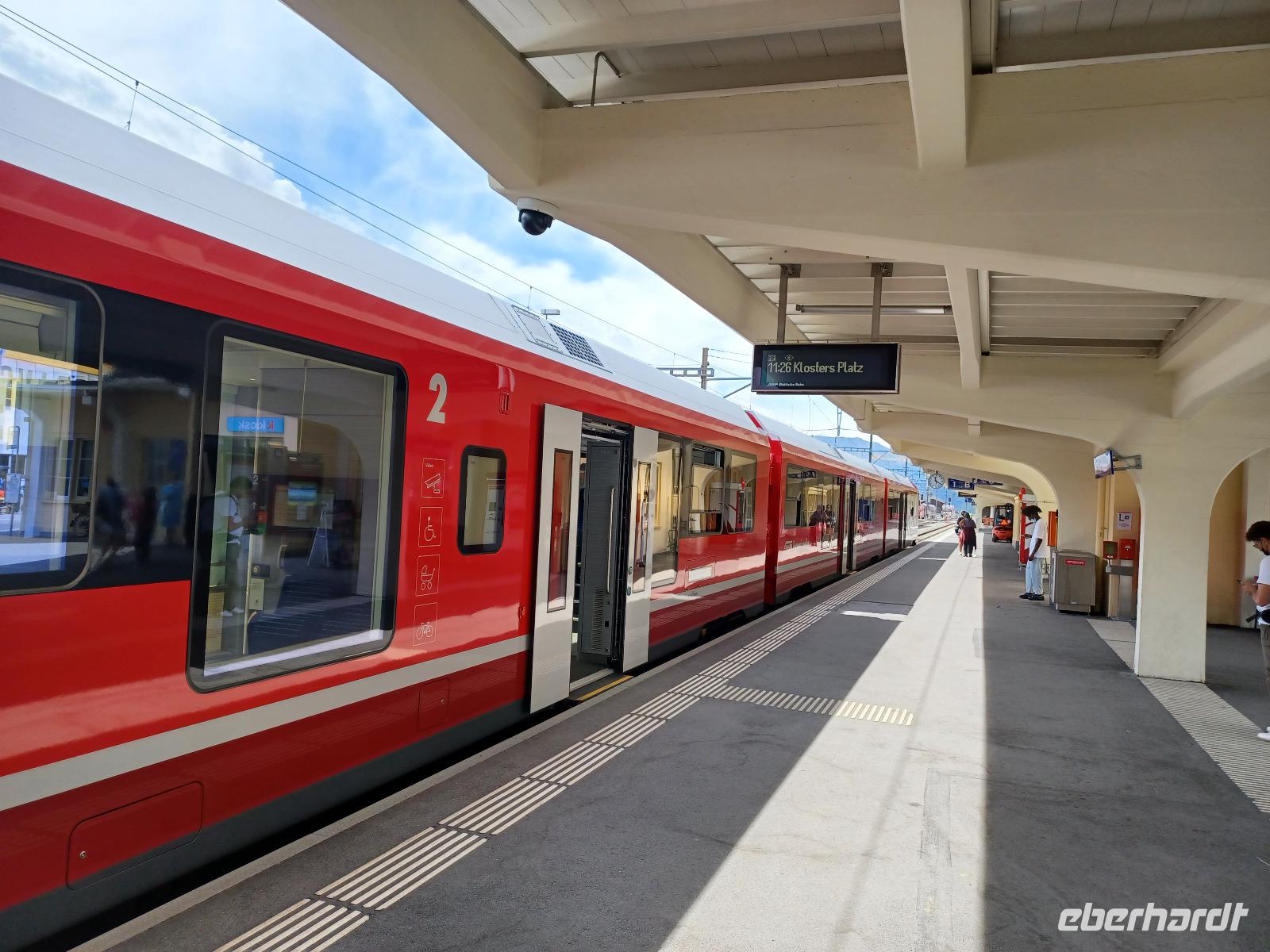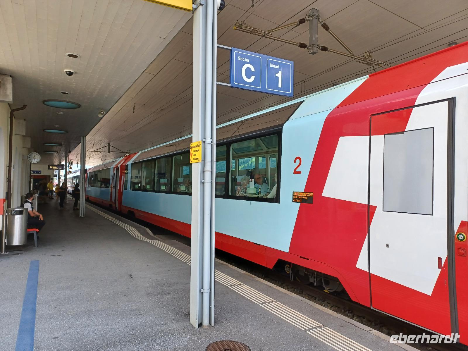 Aber die Vorfreude ist schon groß als sich unsere Reisegruppe am Bahnhof Davos versammelt hat, nun beginnt das zweite Bahnerlebnis unserer Reise. Bevor wir aber in den Glacier - Express steigen, geht es mit dem Vorortzug nach Filisur. Schnell verschwinden die Häuser von Davos und dieser gastliche Ort ist für uns bald nur noch Erinnerung.