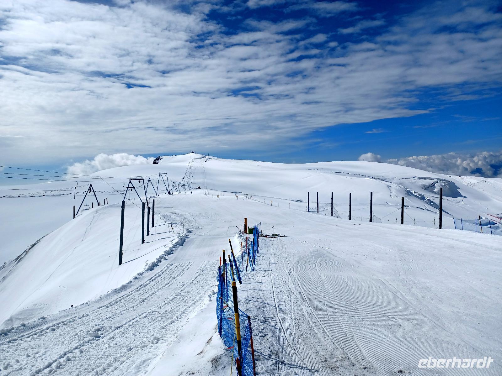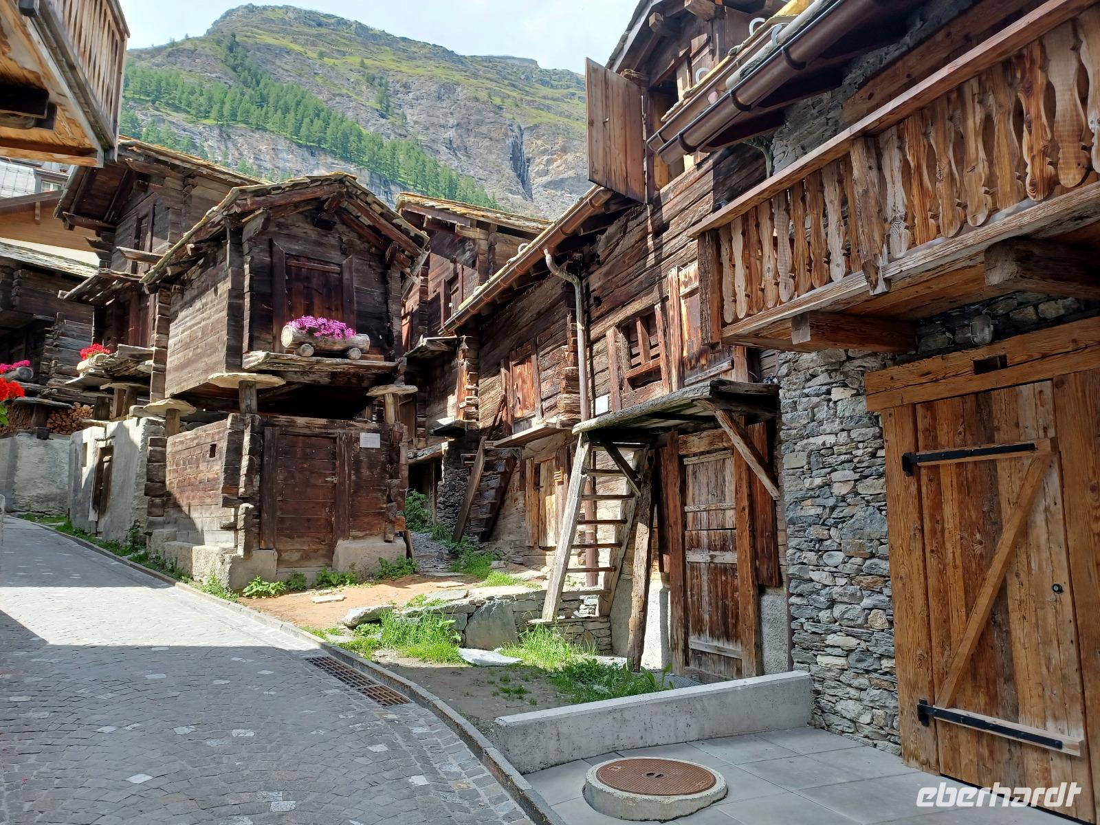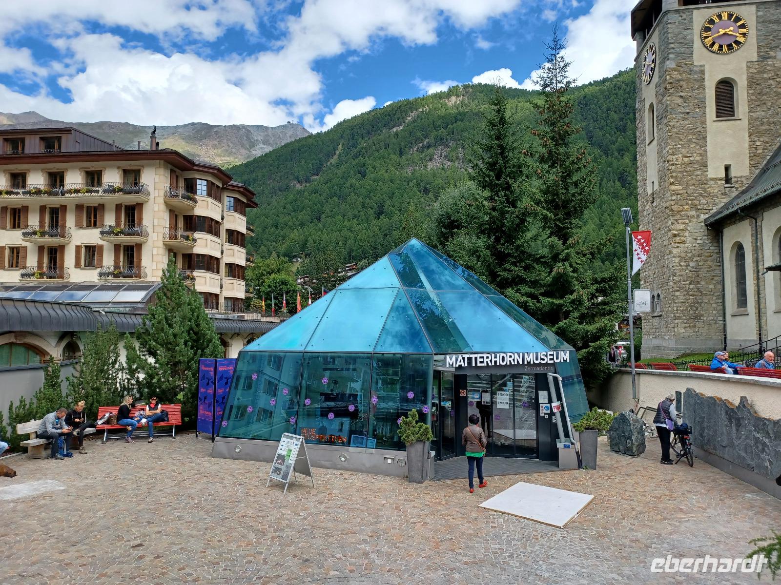 Ein Tunnel führt hinaus auf das Skigebiet; wir schreiben Anfang August aber hier oben ist tiefster Winter. Zahlreiche Skifahrer sind unterwegs und nutzen das tolle Wetter für ihre Aktivitäten. Wohin das Auge blickt: Schnee. Links die mächtige Kuppe des Breithorns, rechts ist das Terrain flacher, in dieser Höhe können wir fast auf die Wolken herabsehen. Die Zeit vergeht sehr schnell, am späteren Nachmittag hat sich unserer Gruppe wieder versammelt und wir besuchen das wirklich schöne Matterhornmuseum. Tief unter der Erde zeigt sich uns das uralte Zermatt, wie es einmal war als die ersten Touristen kamen. Hier kann man auch das einstige Dorf bewundern, zu einer Zeit als hier nur Gebirgsbauern lebten. Eine wunderbare letzte Impression von Zermatt, denn morgen müssen wir leider diesen schönen und gemütlichen Ort verlassen.