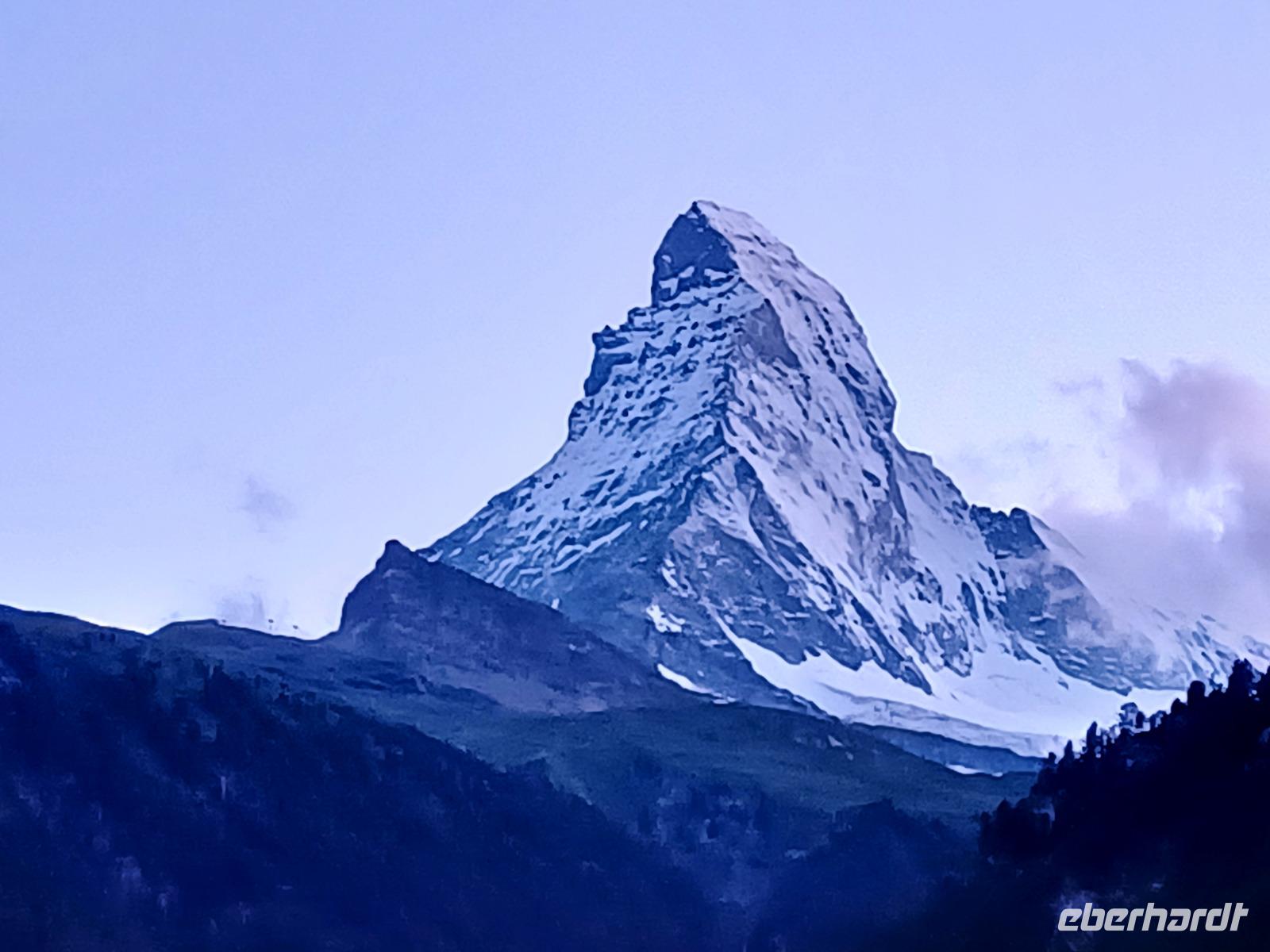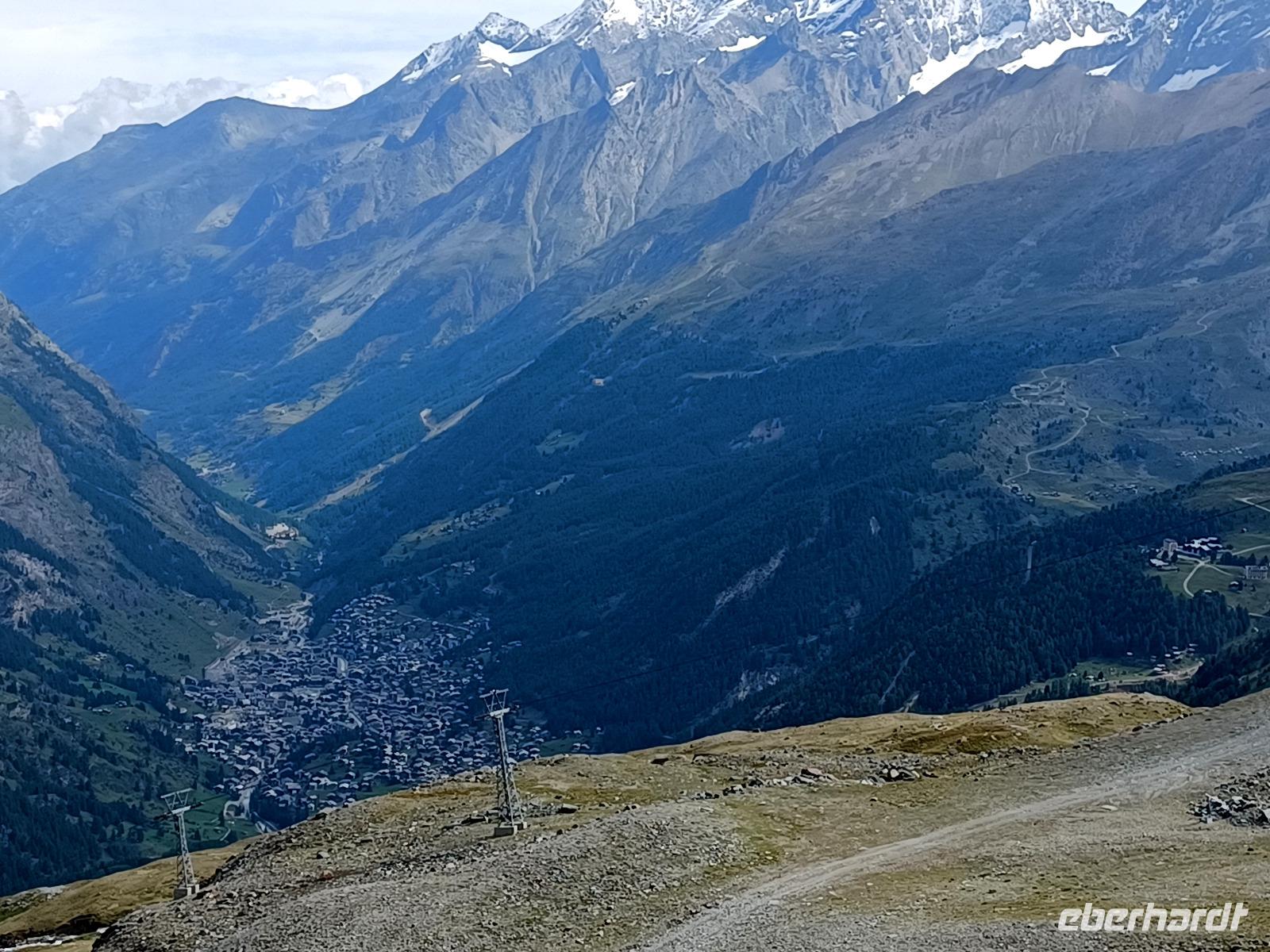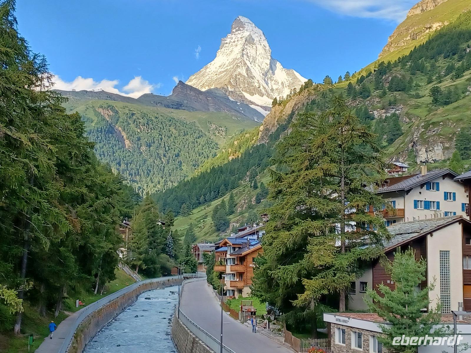 Eine extra Bahn bringt und wieder hinunter nach Zermatt. Ein Raunen geht durch die Gondel - das Matterhorn zeigt sich uns endlich in seiner ganzen Pracht. Das ist nun der Abschluss und krönende Höhepunkt dieses schönen Tages.