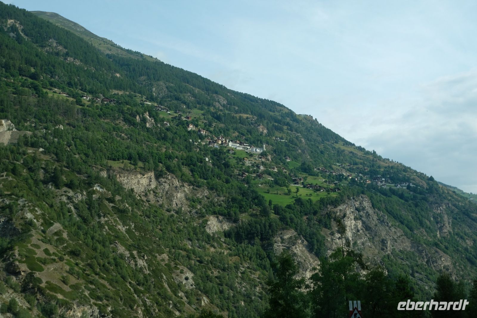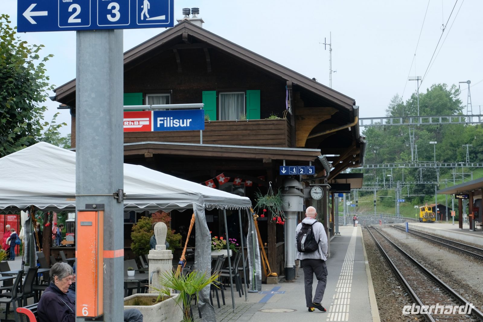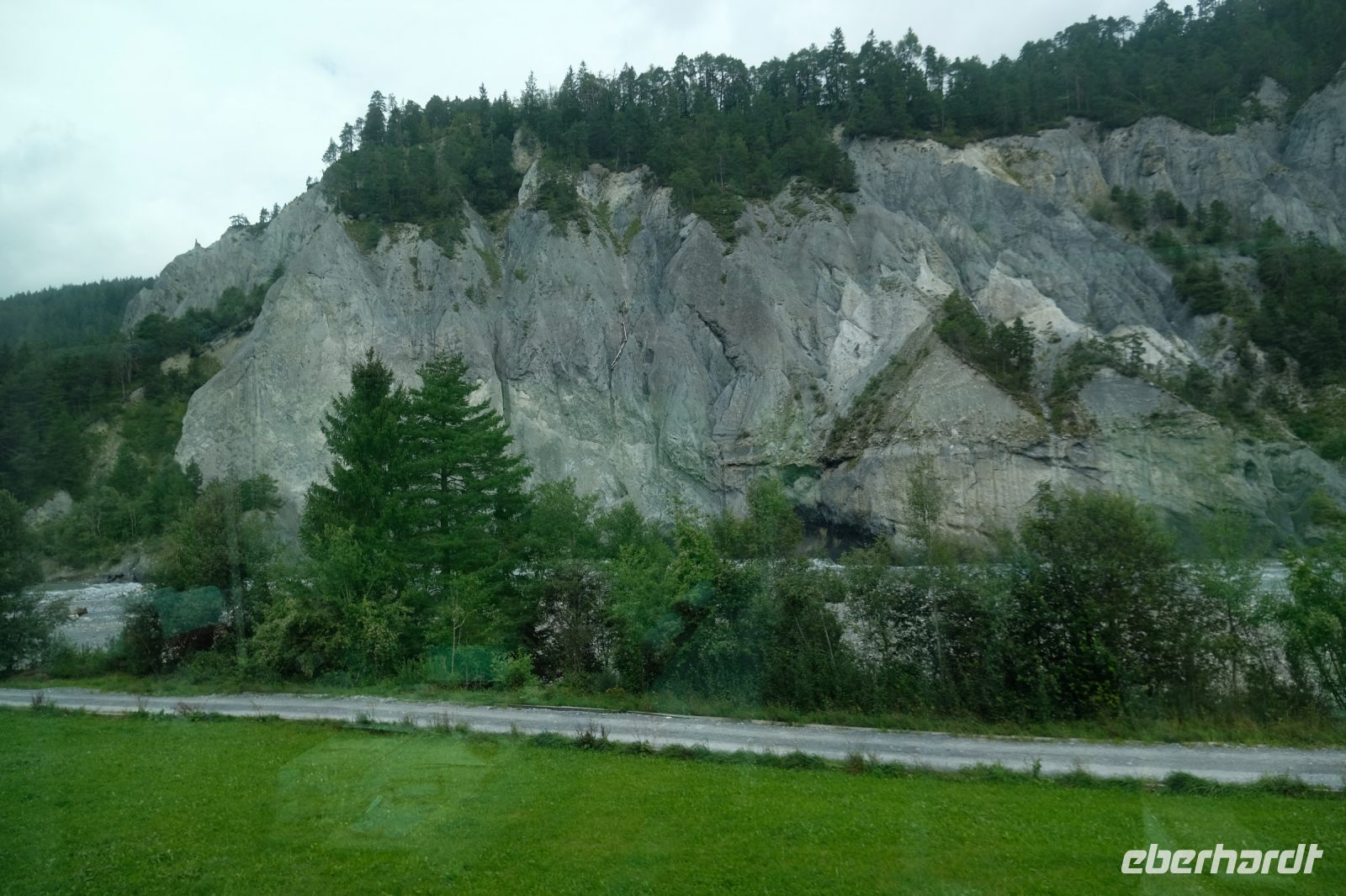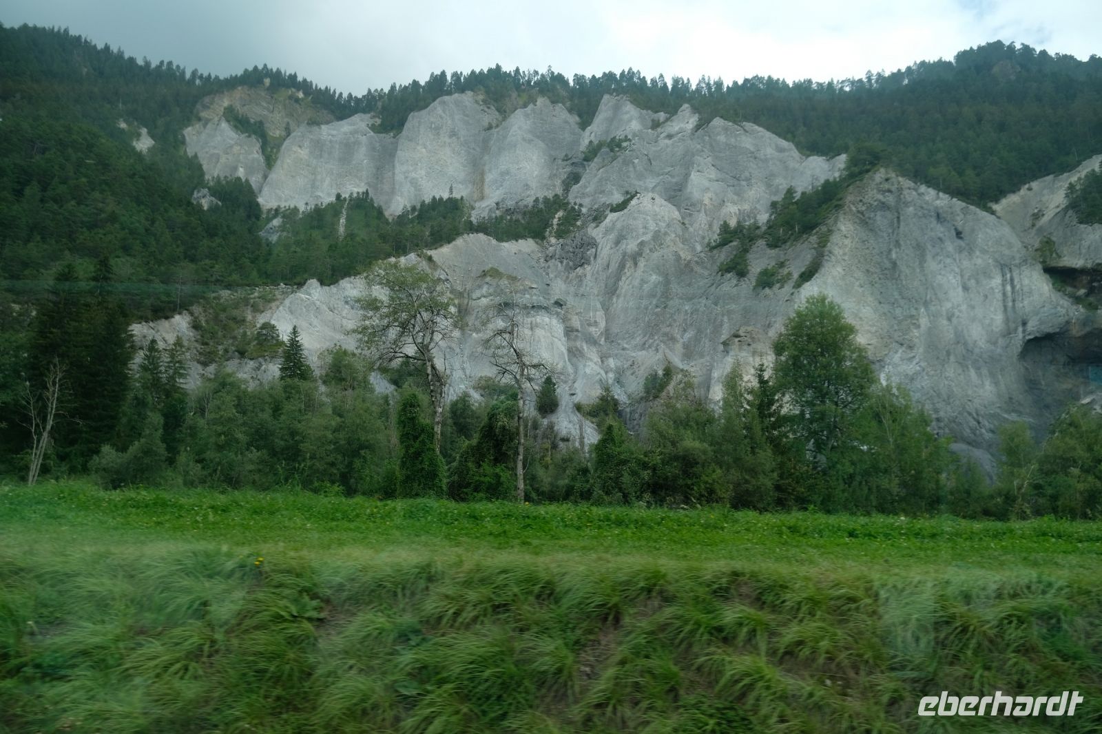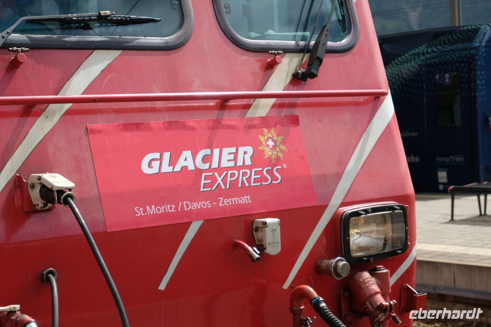 Heute sollte ein weiterer Höhepunkt unseres Urlaubes stattfinden, die Fahrt mit dem Glacier-Express. Unser Busfahrer Olaf fuhr uns zunächst zum Bahnhof Davos und dann mit dem gesamten Gepäck direkt über Täsch nach Zermatt. Unsere Reisegruppe konnte die Fahrt von Davos nach Filisur in einem bequemen Wagen zurücklegen. Dort bestiegen wir dann den Glacier-Express. Jeder hatte durch eine persönliche Platzkarte sofort seinen Sitzplatz im Panoramawagen der 2. Klasse. Die Fahrt begann gleich mit einem Höhepunkt, der Fahrt über das Landwasserviadukt. Alle Fotoapparate und Handys waren in Betrieb und die Bewunderung für das Bauwerk groß, wenn aber auch gleich wieder vorbei.