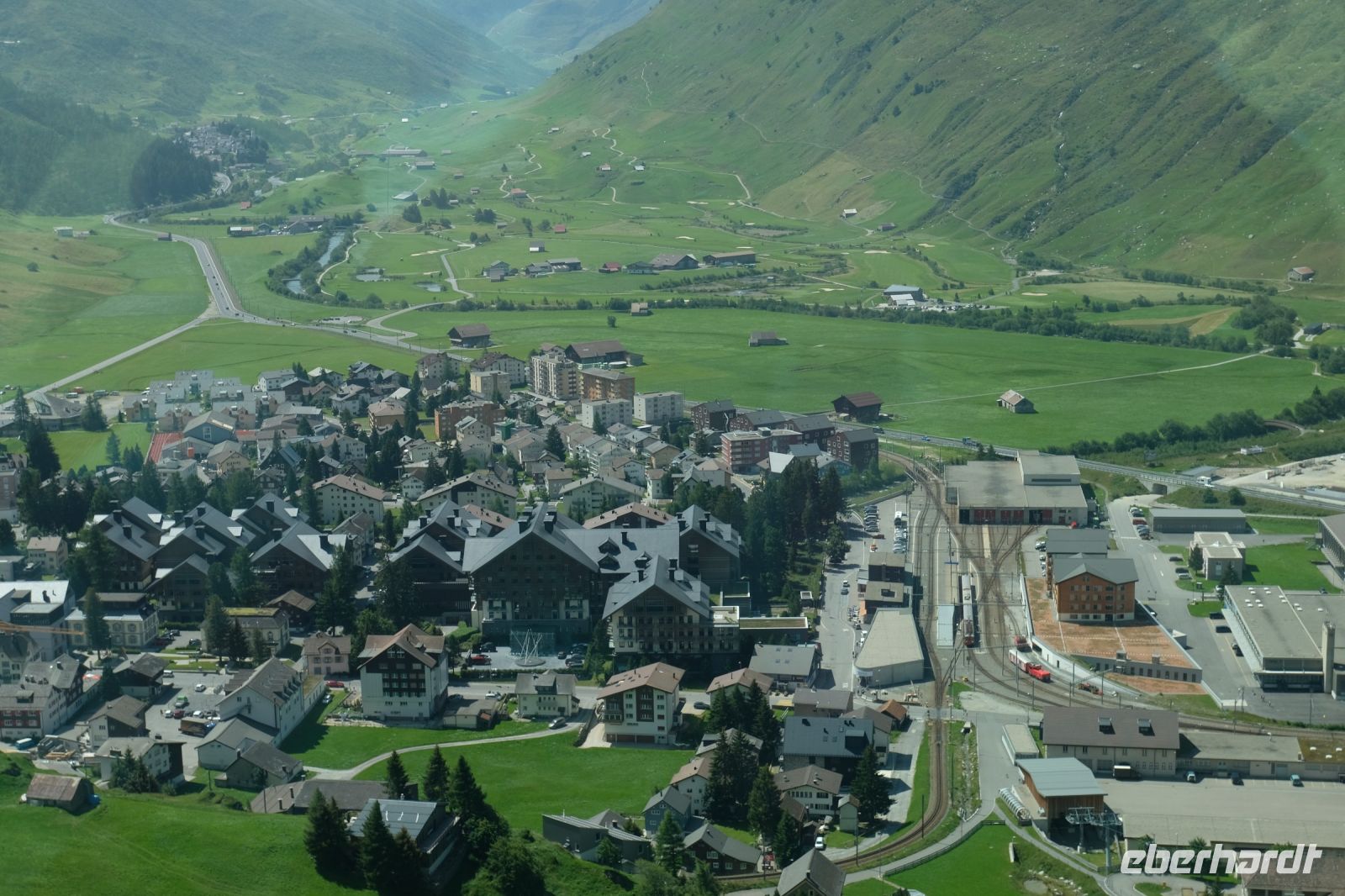 Nachdem die Koffer 7.30 Uhr im Hotel verladen und zum Zug gebracht wurden, konnten wir in aller Ruhe frühstücken, und gemütlich zum Bahnhof laufen. Dort fuhren wir nach Täsch zu unserem Bus. Unser Busfahrer Olaf erwartete uns schon, er hatte die Koffer schon im Bus verladen. Von dort ging die gemeinsame Reise Richtung Luzern. Ein kurzer Fotostopp an der neuen Bellwang-Hängebrücke und schon standen wir vor einer großen steilen Wand. Entweder links zum Grimsel-Pass oder rechts zum Furka-Pass. Der Busfahrer entschied sich für die linke Variante. Atemberaubende Kehren auf schwindelerregender Höhe. Ein wunderbares Erlebnis auf dieser Straße zu fahren. Der zwischen den Pässen liegende Rhonegletscher ist leider nicht mehr zu sehen. Auf dem Grimselpass wurde eine kleine Pause mit Besichtigung des Murmeltierparkes eingelegt. Dann ging es den Berg hinab, um in Meieringen eine Mittagspause einzulegen..