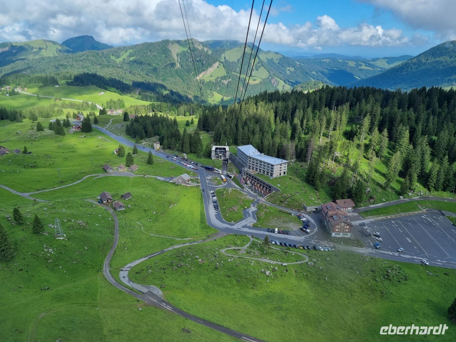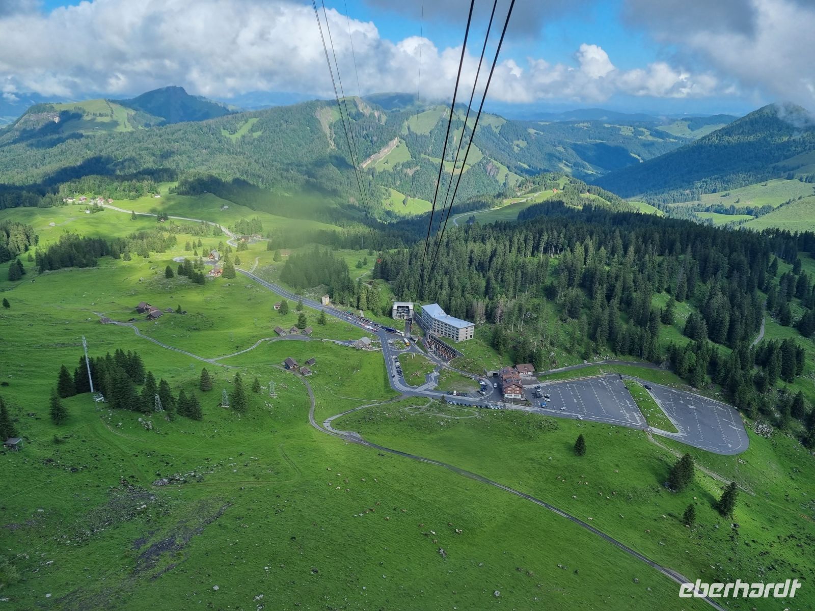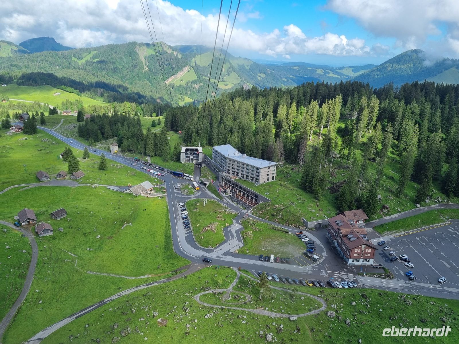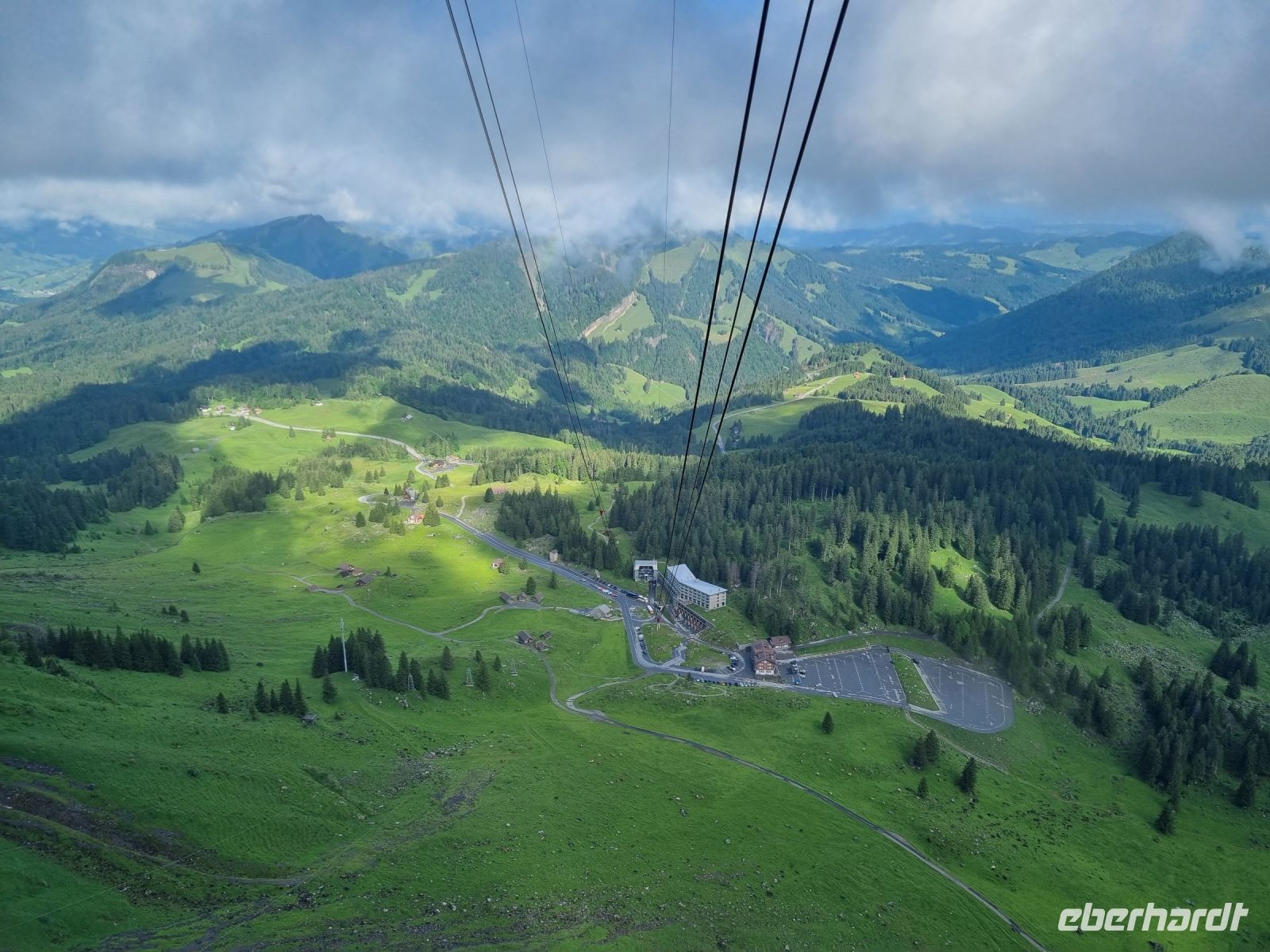 Am Abreisetag ging es gleich früh mit der Säntis-Schwebebahn hinauf zum etwa 2.502 Meter hohen Säntis. Dort nahmen wir unser letztes Frühstück ein - sozusagen ein "Panorama-Frühstück", das heute nur ab und an mit Panorama-Blicken überraschte! Es war wie ein Vorhang, der ab und an kurz aufgezogen wurde, aber letztendlich auch ganz schnell wieder zugezogen wurde. Schade, dass uns danach nicht mehr sehr viel Zeit verblieb, um auf ein besseres Wetter zu warten - wir hatten schließlich noch eine lange Heimreise vor uns. Glücklicherweise gibt es allerdings bei Eberhardt TRAVEL noch andere Reisen in die Schweiz, wo längere Aufenthalte auf der Schwägalp beziehungsweise auf dem Säntis vorgesehen sind.