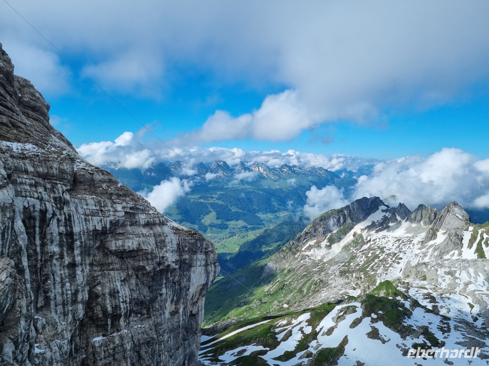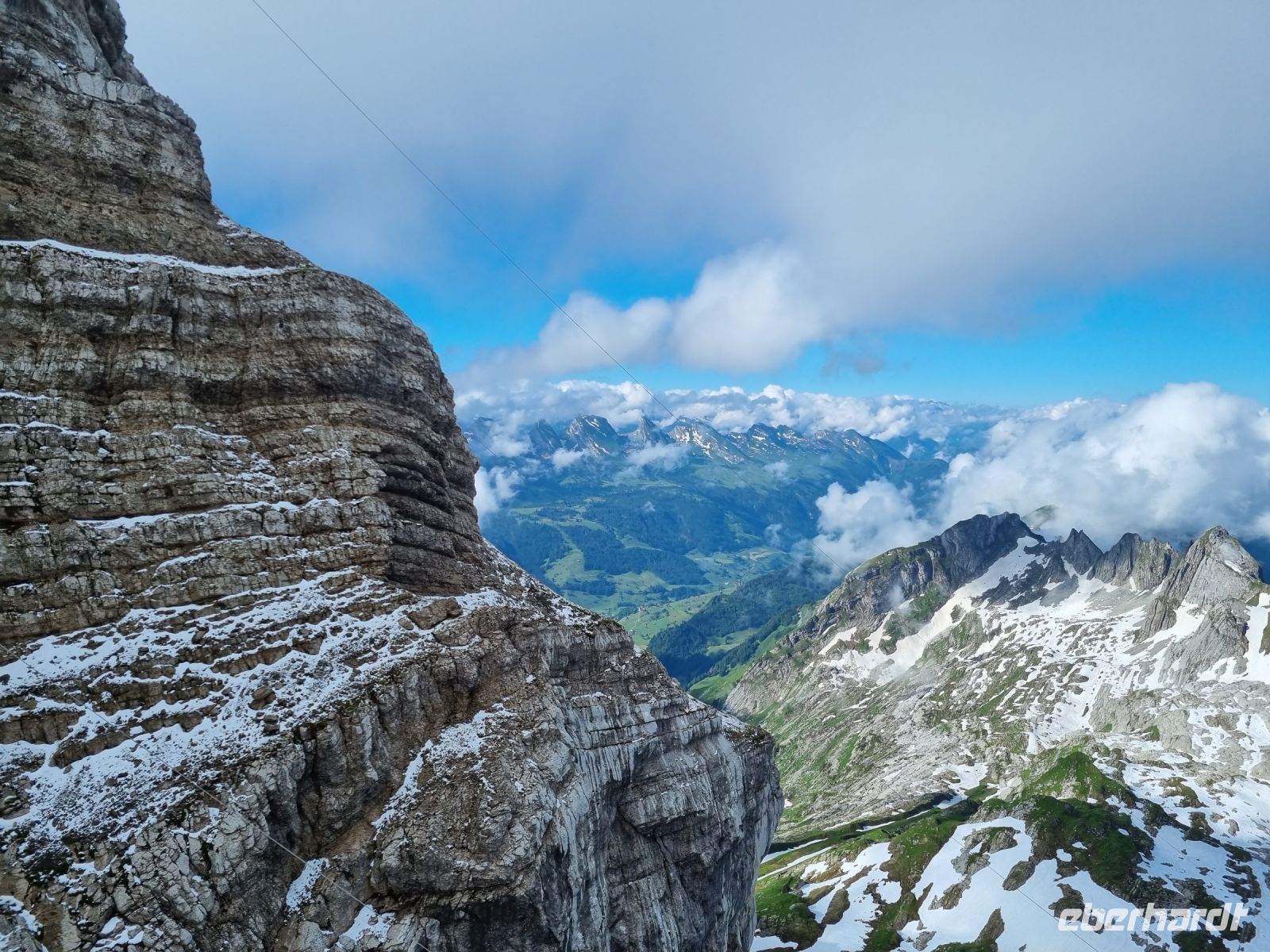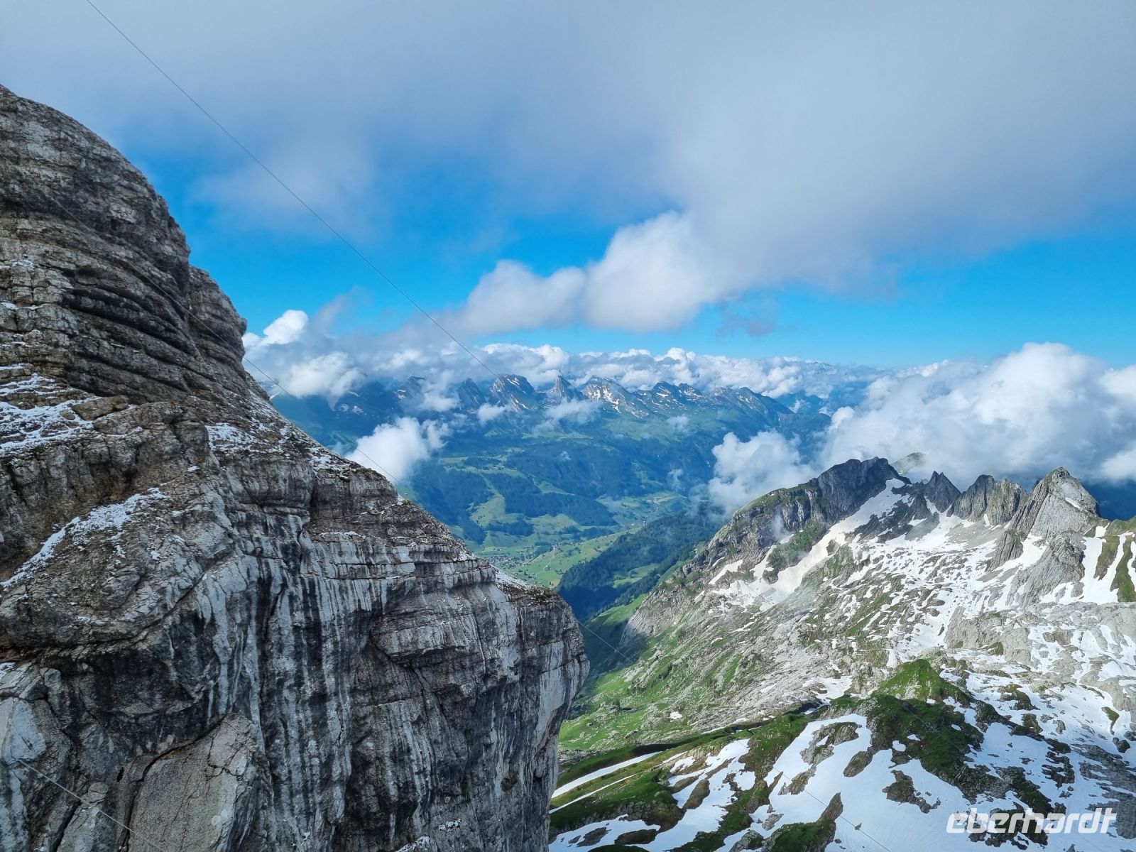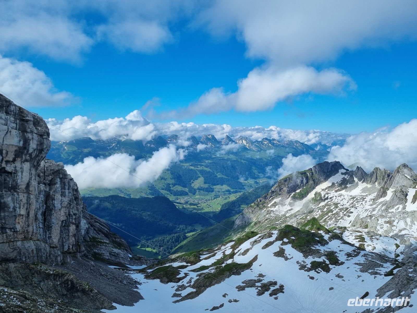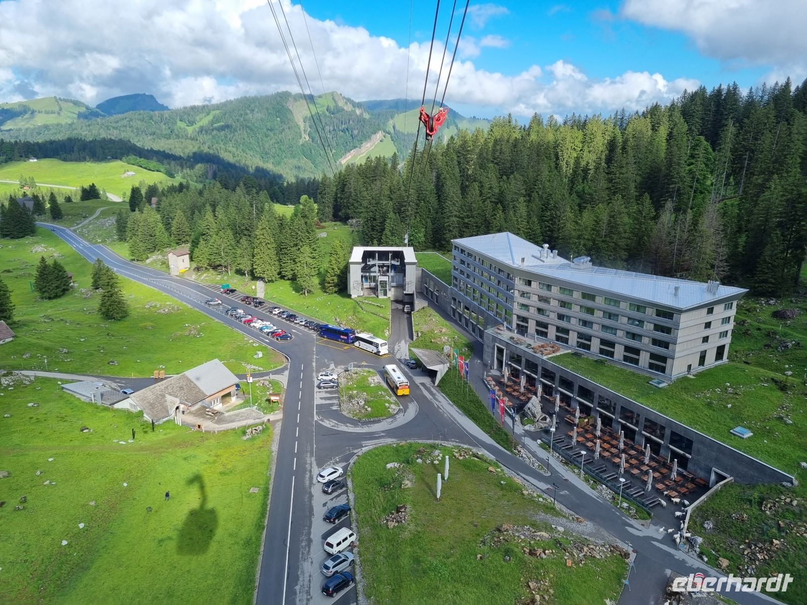 Am Abreisetag ging es gleich früh mit der Säntis-Schwebebahn hinauf zum etwa 2.502 Meter hohen Säntis. Dort nahmen wir unser letztes Frühstück ein - sozusagen ein "Panorama-Frühstück", das heute nur ab und an mit Panorama-Blicken überraschte! Es war wie ein Vorhang, der ab und an kurz aufgezogen wurde, aber letztendlich auch ganz schnell wieder zugezogen wurde. Schade, dass uns danach nicht mehr sehr viel Zeit verblieb, um auf ein besseres Wetter zu warten - wir hatten schließlich noch eine lange Heimreise vor uns. Glücklicherweise gibt es allerdings bei Eberhardt TRAVEL noch andere Reisen in die Schweiz, wo längere Aufenthalte auf der Schwägalp beziehungsweise auf dem Säntis vorgesehen sind.
