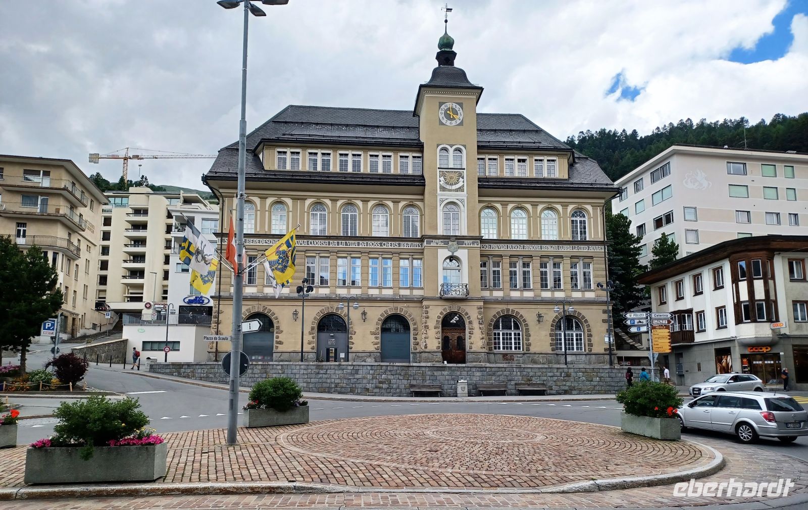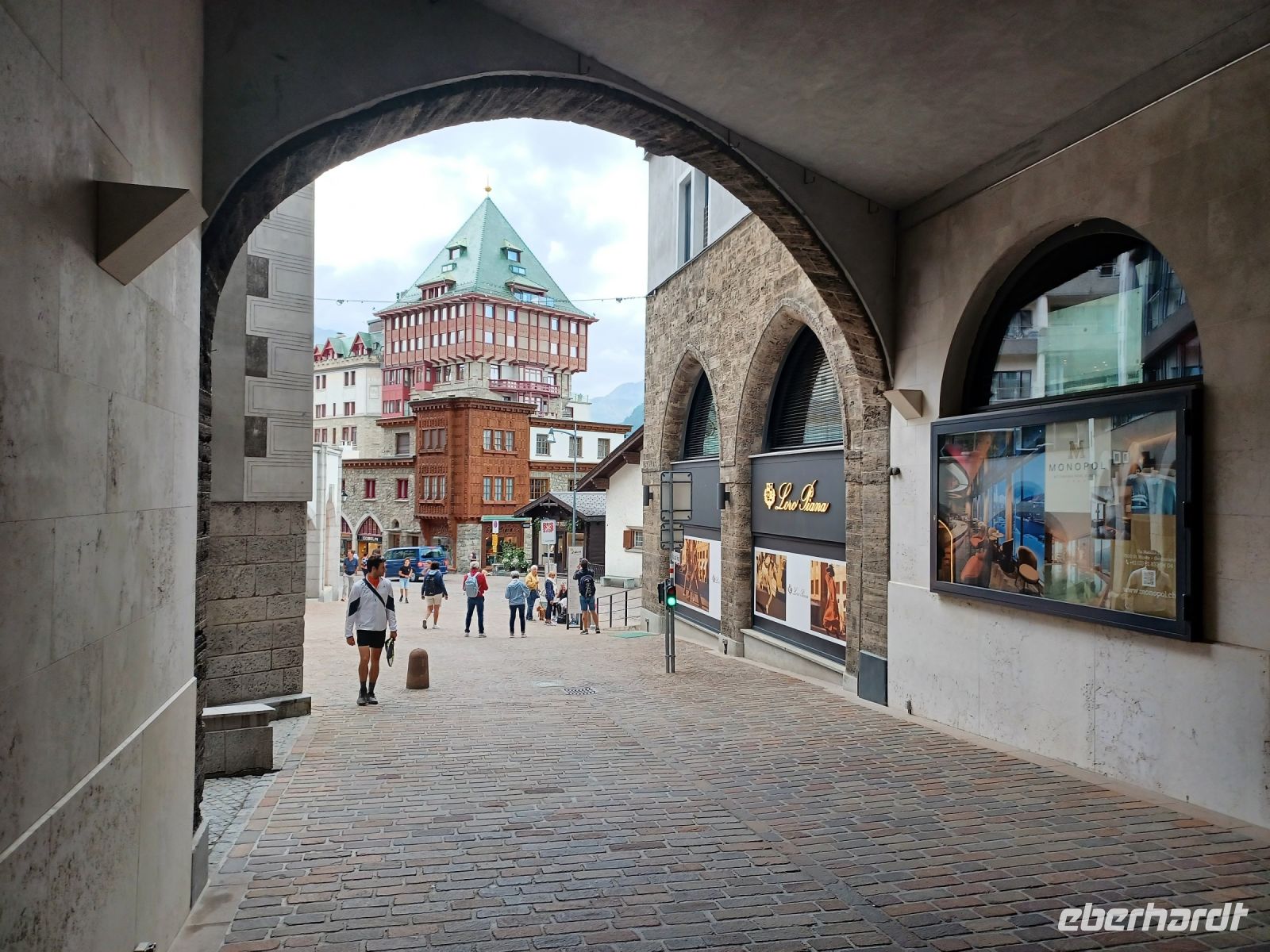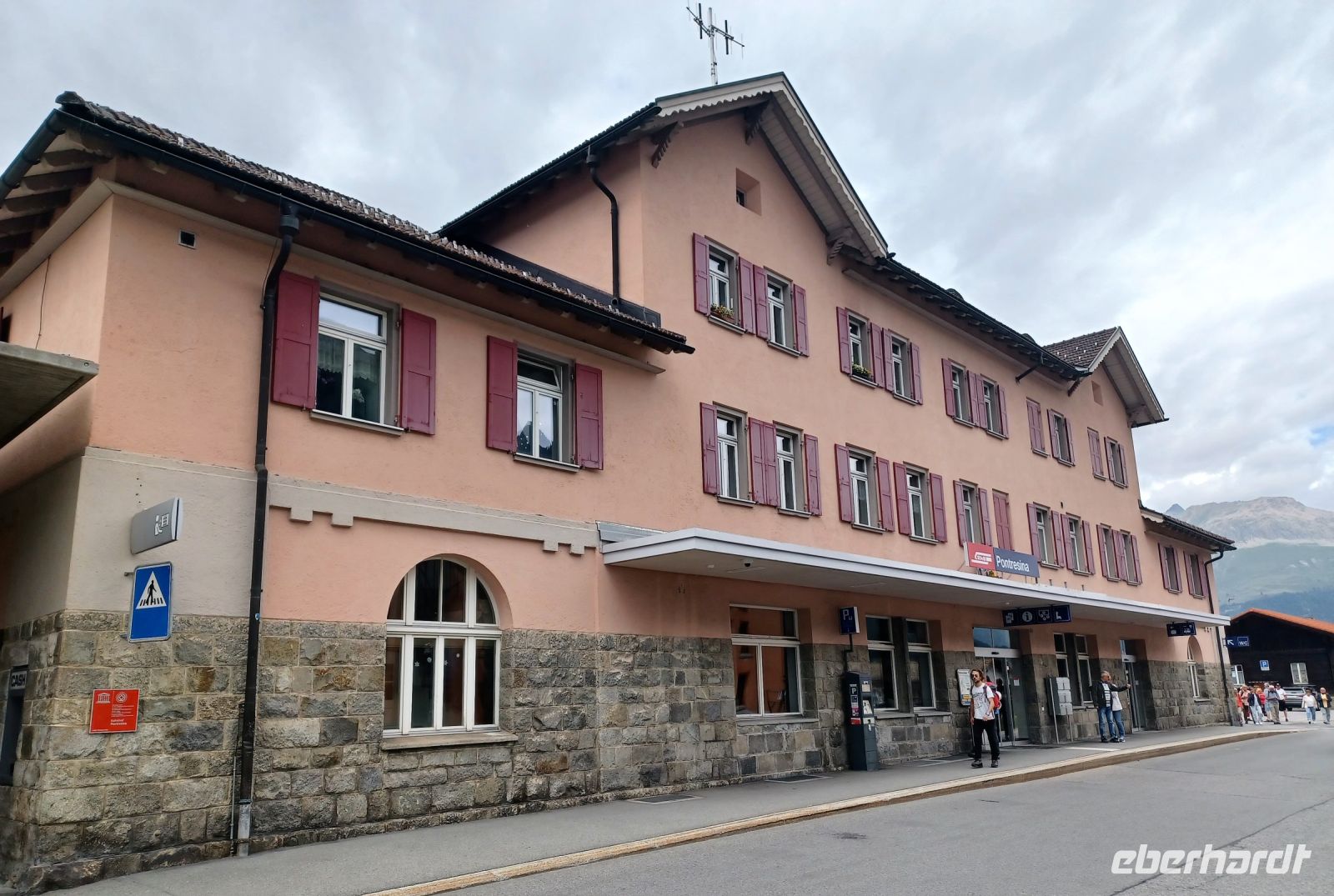 Als wir in Pontresina anlangen hat sich der Himmel etwas bezogen, aber der Blick zu den Bergen bleibt frei. Das ist auch wichtig, denn nun beginnt für uns eine besondere Zugreise: Die Fahrt mit dem Bernina-Express. Leider hat etwas mit der Reservierung nicht geklappt, trotzdem finden wir freie Plätze und können nun diese wunderbare Zugreise voll genießen. Rechts zeigt sich uns bald der mächtige Morteratsch-Gletscher, dann passieren wir den Bernina-Pass und bald bringt uns die Bahn wieder zu Tal. Ganz unten, klein wie ein Spielzeugdorf, zeigt sich uns Poschiavo. Im Tal angelangt fahren wir am gleichnamigen See entlang; hier zeigt sich uns nun eine mediterrane Vegetation. Das Ziel ist bald erreicht; im italienischen Tirano gönnen wir uns ein gutes Mittagessen beim Italiener und am zeitigen Nachmittag geht es nun mit dem Reisebus wieder zurück in das Engadin um hier unsere Rundfahrt mit dem Bus fortzusetzen. Ein wichtiger Ort ist St. Moritz, ihm statten wir an diesem Nachmittag einen Besuch ab und bekommen einen Eindruck des luxuriösen Lebens dieses Nobelortes.
