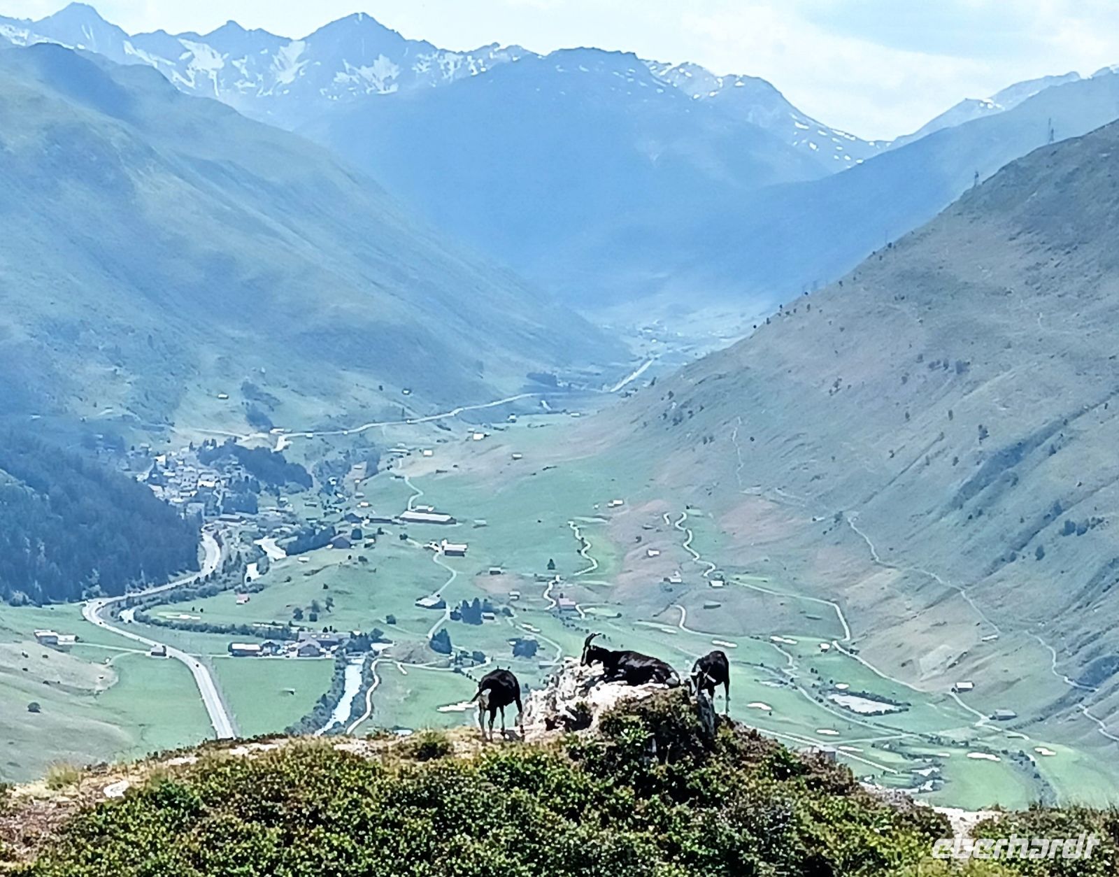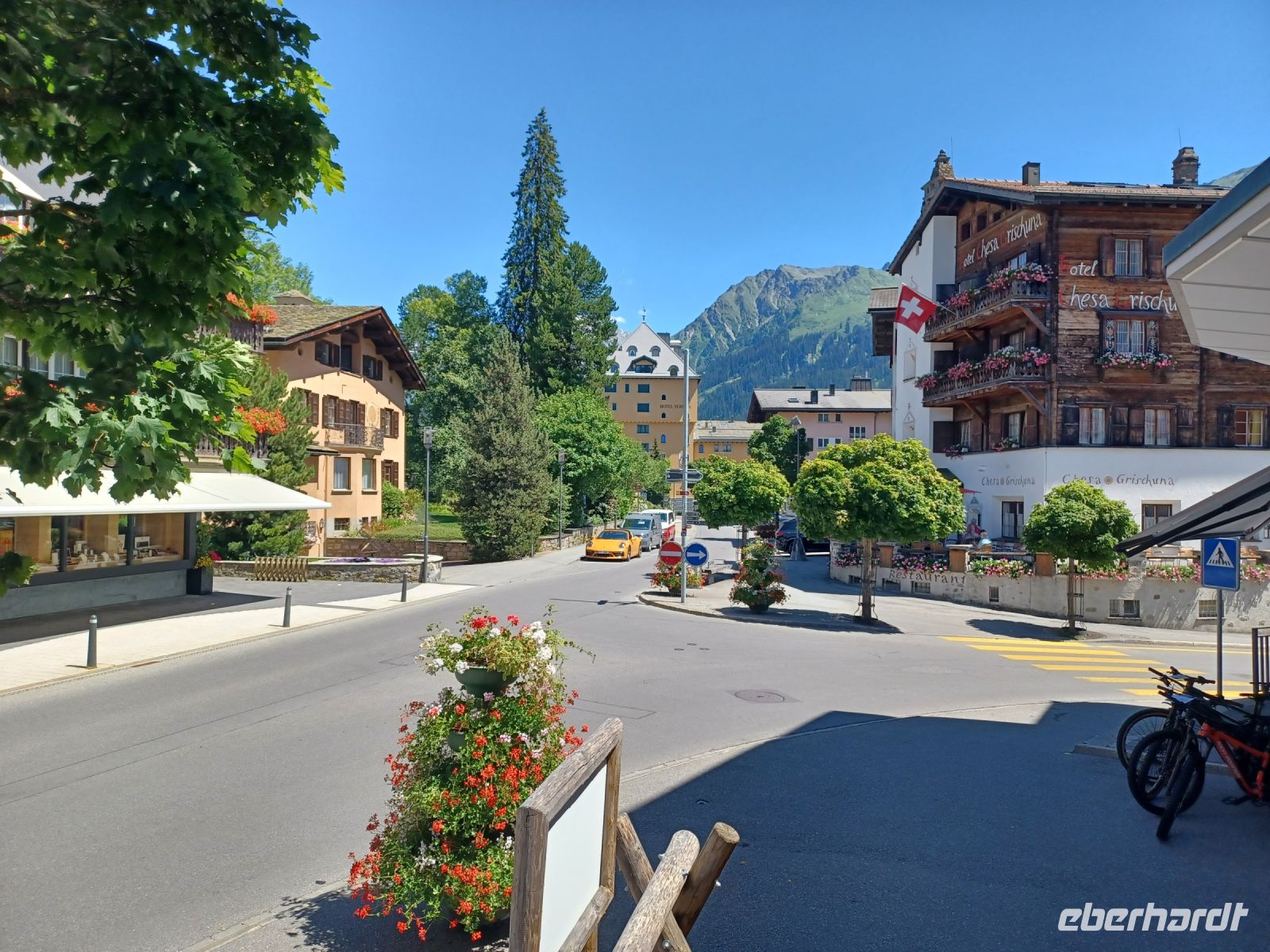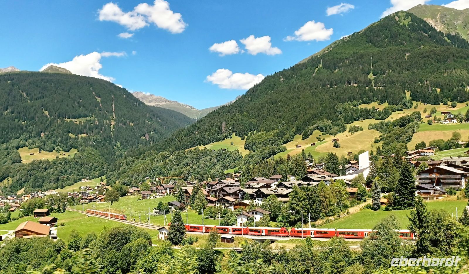 Etwas später verlassen wir den Rhein; nun sind wir im Prättigau unterwegs. Hier wird Landwirtschaft betrieben, zahlreiche Kühe auf saftig-grünen Wiesen zeigen uns hier eine Welt die noch in Ordnung ist. Über allem steht die Nachmittagssonne und wir steigen weiter an, unser Ziel heißt Davos.