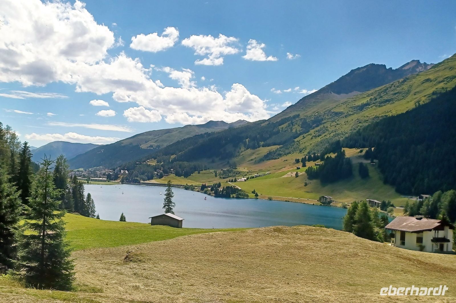 Auf der Rückfahrt im Bahnhof Davos-Dorf ausgestiegen findet der Freund des Wassersports am Davos-See ordentliche Betätigung, ein Bad im erfrischenden Gewässer inklusive. Das macht auch richtig Spaß weil die Sonne von keinem Wölkchen getrübt wird und, bei über 24° im Schatten, der Aufenthalt hier zu einem Erlebnis wird.