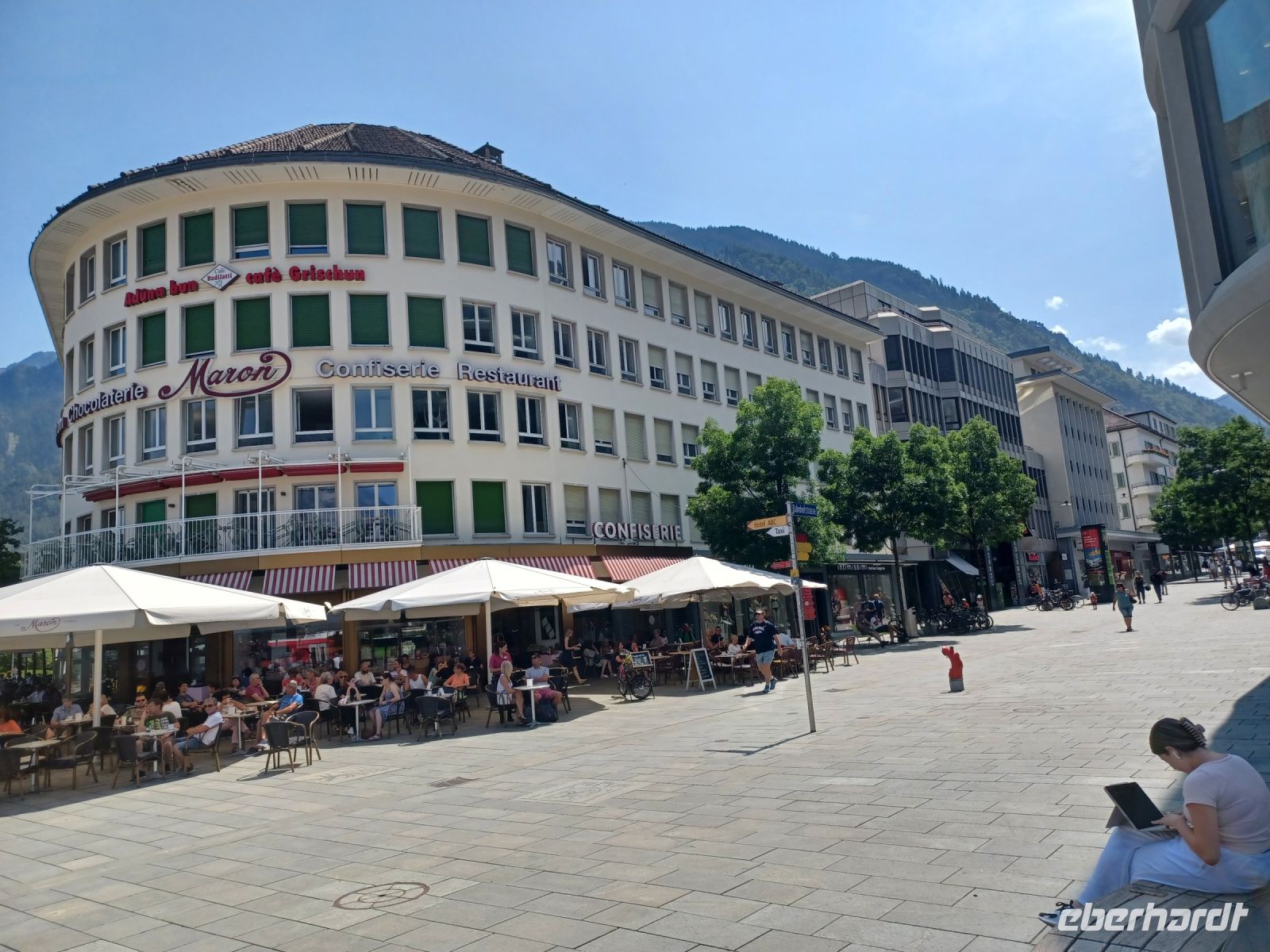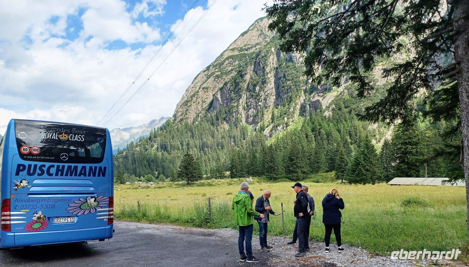 7.7.2023. Der Wecker hat früh geklingelt! Aber das macht gar nichts, denn der Urlaub beginnt. Nach einer ersten Etappe zur Einstiegsstelle unseres Reisebusses nehmen wir Platz, nun kann es los gehen. Die Tour beginnt bei heiteren Wetter in Dresden; von hier aus gelangen wir über Chemnitz und das Vogtland nach Bayern. Von der lachenden Sonne begleitet ziehen schöne Landschaften an den Busfenstern vorbei: Die sanften Erhebungen des Fichtelgebirges, Teile des Frankenwaldes und gegen Mittag grüßt uns die Kirchturmspitze des Ulmer Münsters. Hier genehmigen wir uns auch einen kleinen Imbiss. Dann verläuft unsere Tour durch das Allgäu; im Hintergrund tauchen schon die mächtigen Berge der Alpen auf. Dorthin gelangen wir und im Rheintal sind wir dann mittendrin. Dazu purer Sonnenschein, das Thermometer steht bei 30°, aber wir können im gut klimatisierten Reisebus all die Schönheiten ganz entspannt genießen.