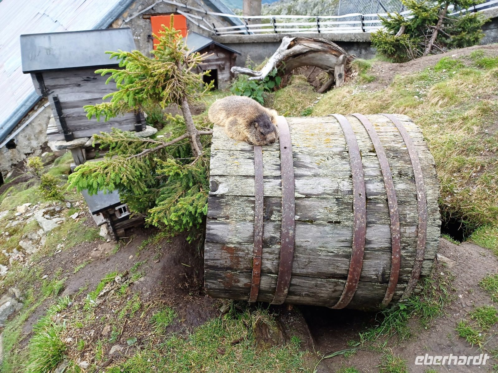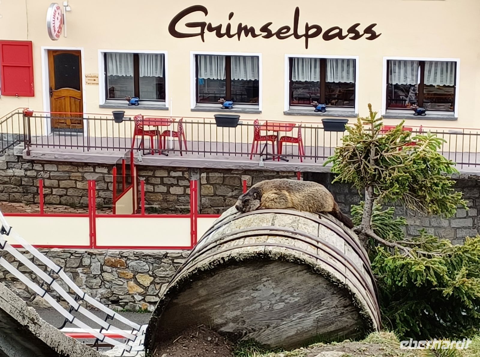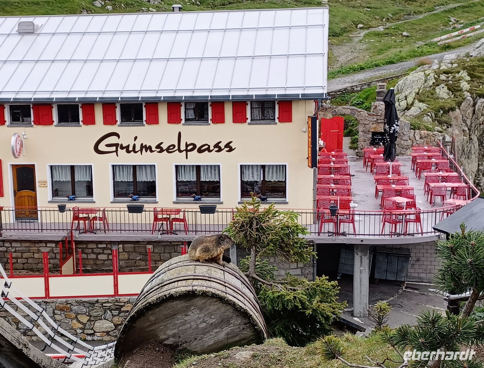 12.7.2023. Über Nacht kam über die Schweiz ein Tief, es brachte neben Blitz und Donner auch eine Abkühlung. Als wir an diesem Vormittag von Zermatt nach Täsch mit dem Pendelzug fahren, hat aber die Sonne schon wieder die Oberhand bekommen. Sie bescheint unsere weitere Reise durch das Mattertal hinunter nach Visp, begleitet uns durch das grüne Goms und selbst oben am Grimselpass, über 2 000 Meter über dem Meer, verlässt sie uns nicht. Das gefällt auch den Murmeltieren im Gehege, sie lassen es sich hier gut gehen.