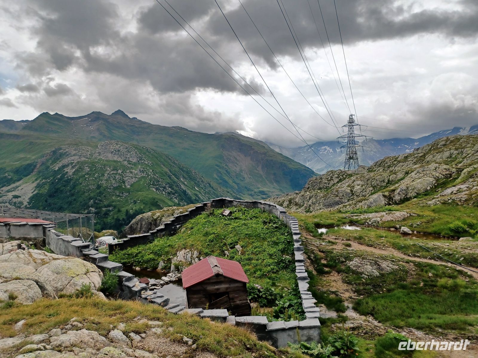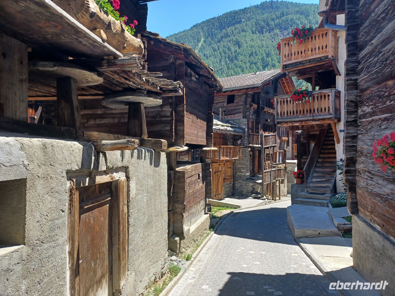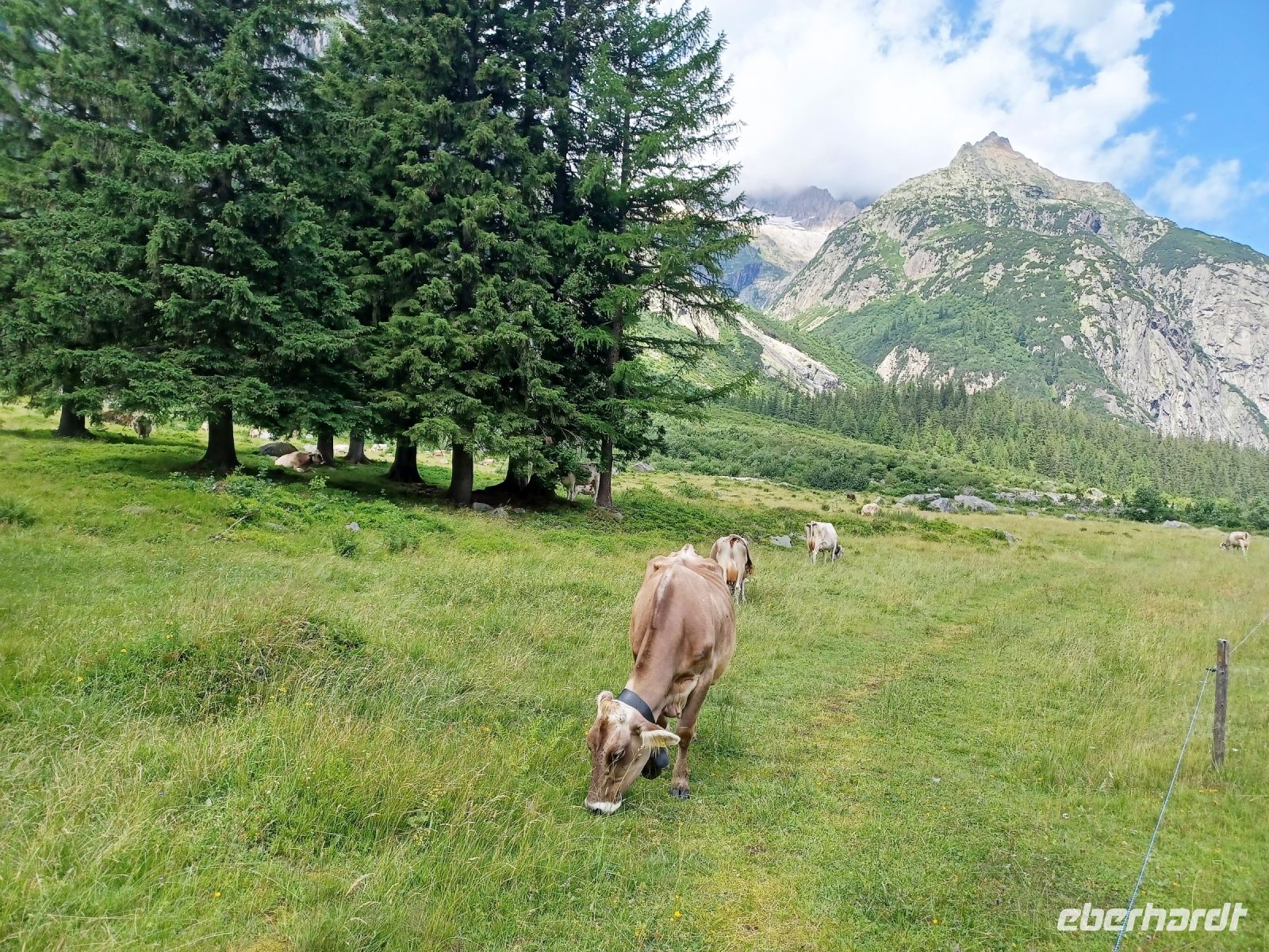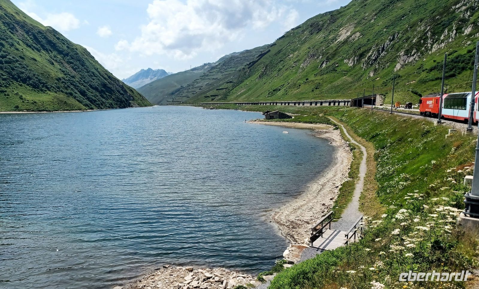 12.7.2023. Über Nacht kam über die Schweiz ein Tief, es brachte neben Blitz und Donner auch eine Abkühlung. Als wir an diesem Vormittag von Zermatt nach Täsch mit dem Pendelzug fahren, hat aber die Sonne schon wieder die Oberhand bekommen. Sie bescheint unsere weitere Reise durch das Mattertal hinunter nach Visp, begleitet uns durch das grüne Goms und selbst oben am Grimselpass, über 2 000 Meter über dem Meer, verlässt sie uns nicht. Das gefällt auch den Murmeltieren im Gehege, sie lassen es sich hier gut gehen.
