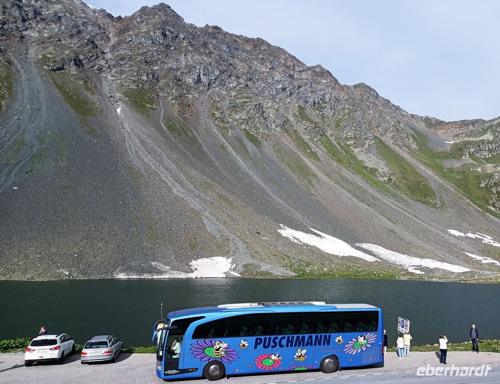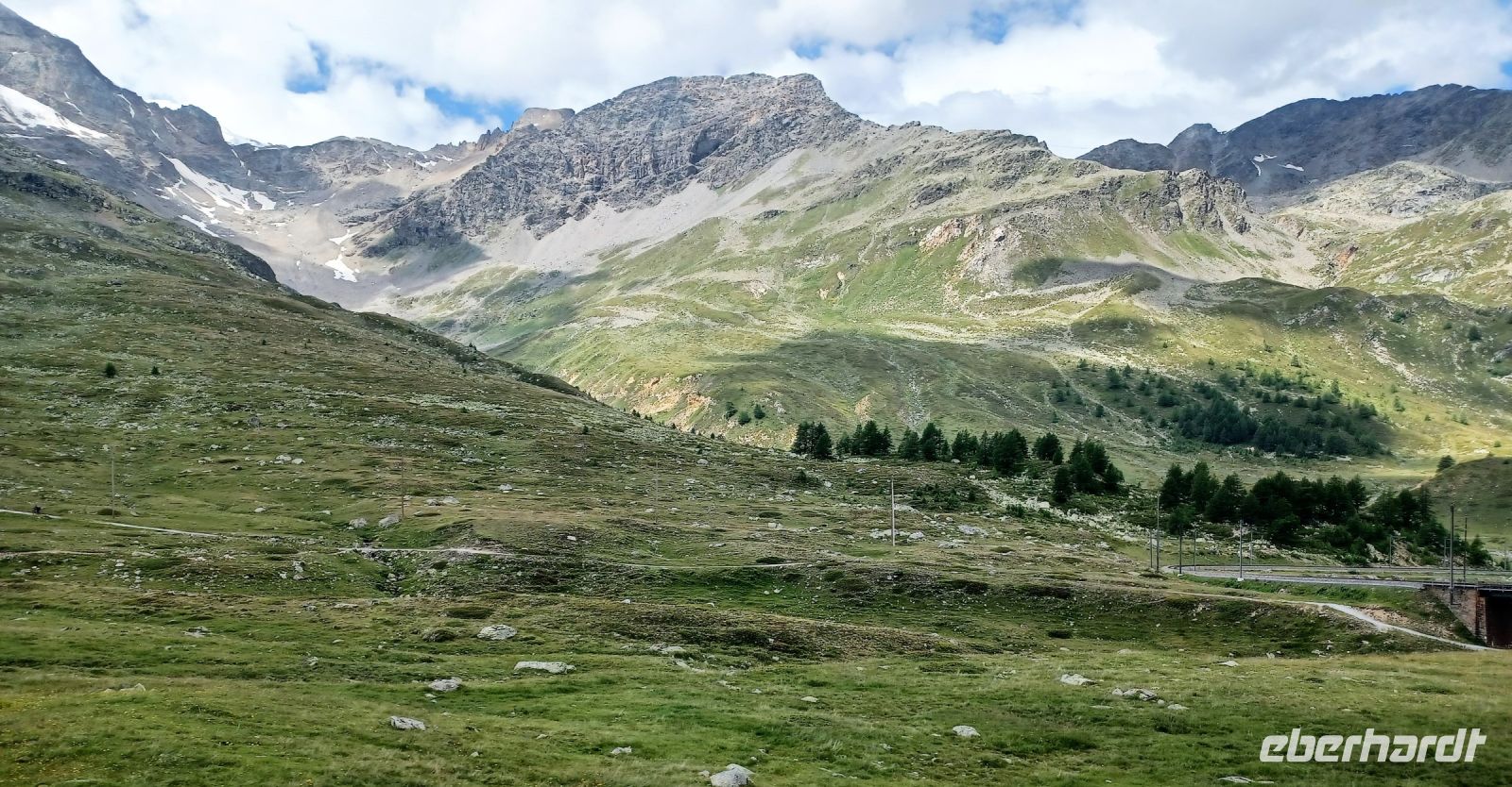 Gegen halb neun verlassen wir das gastliche Davos und sind bald auf dem Weg hinauf zum Flüela-Pass. Schnell sind wir über die Baumgrenze hinaus angestiegen und genießen in den nächsten Minuten die alpinen Impressionen. Oben am Pass legen wir einen kurzen Stopp ein und bewundern hier die intakte Bergwelt. Dann geht es wieder zu Tal; schon von oberhalb zeigt sich uns der Inn und wenig später sind wir endgültig im Engadin angelangt, jenem schönen Tal welches vom noch jungen Fluss gebildet wird. Seinen grünlichen Fluten folgen wir aufwärts, auch hier wird unser Weg von einer faszinierenden Bergkulisse umrahmt.