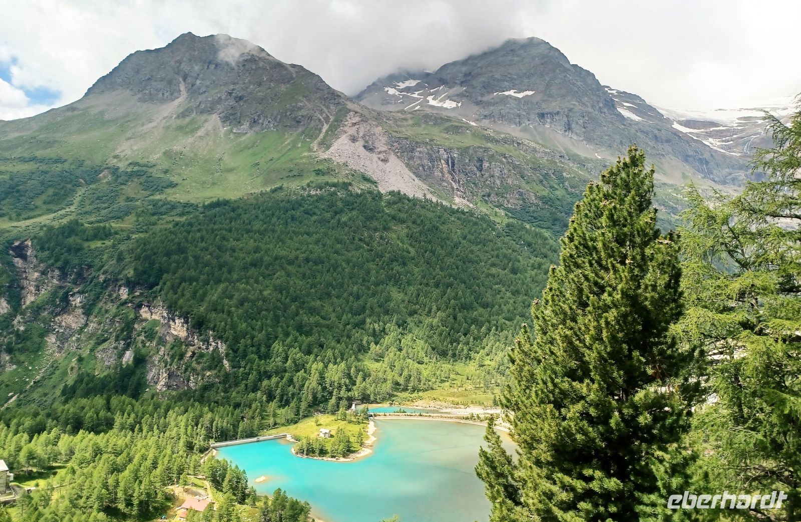 8.7.2023. Mein erster Blick aus dem Fenster sagt mir: Auch heute wird es einen schönen Tag geben. Wenn sich auch einige Wolken an die Berge gehängt haben, sie dienen bei unserem heutigen Ausflug zur Dekoration.