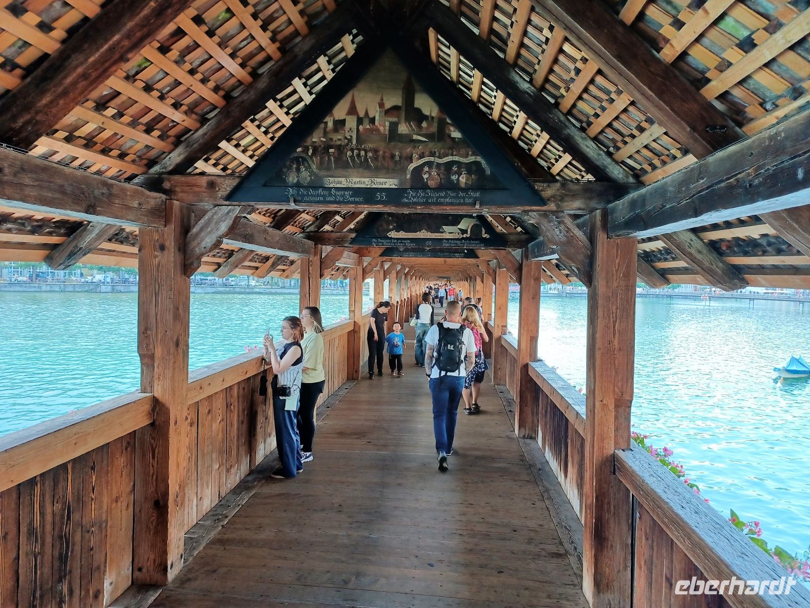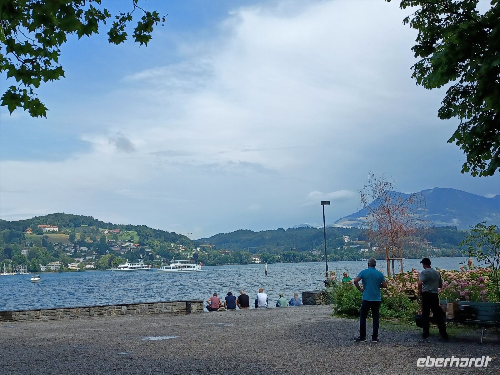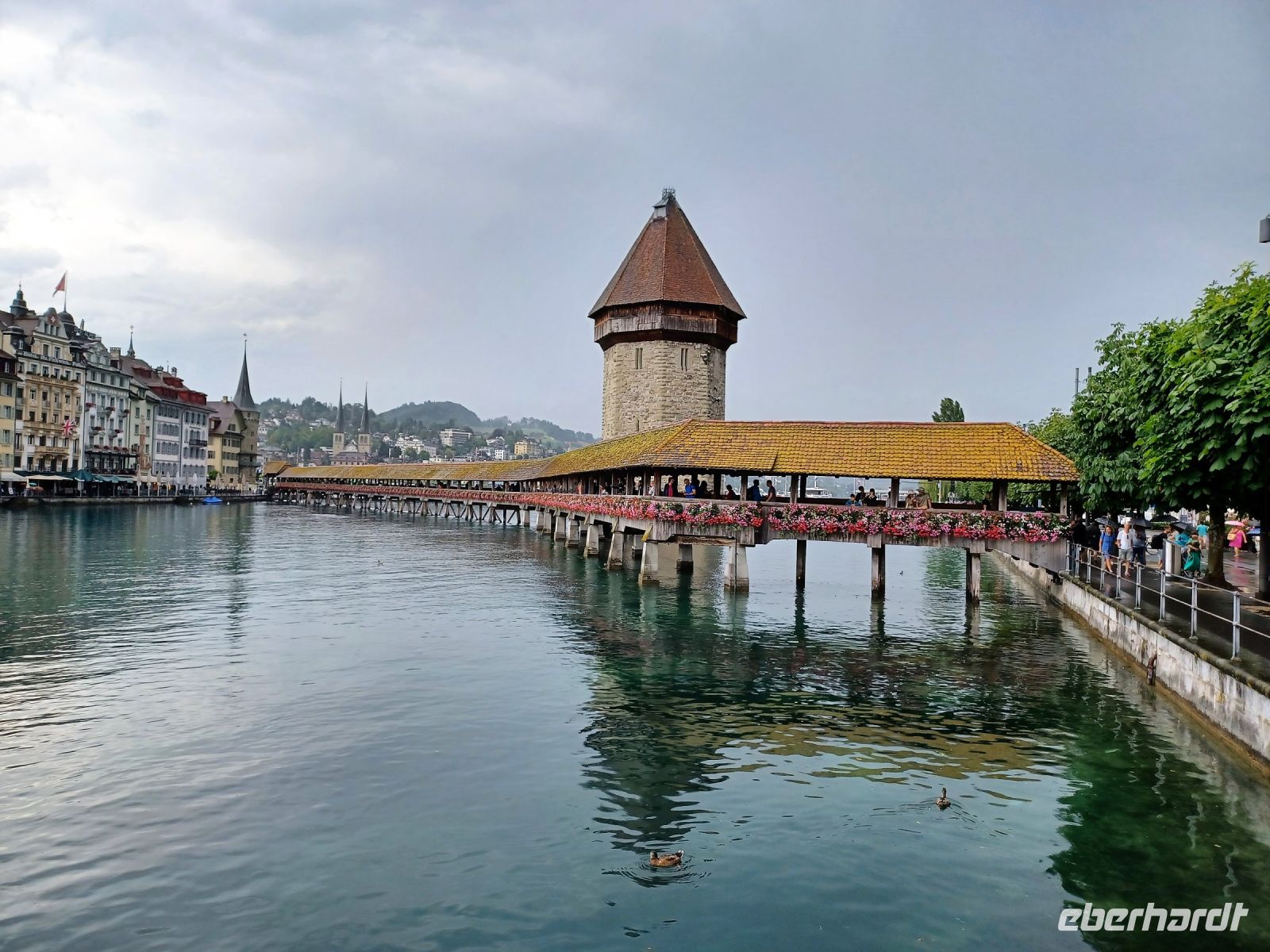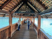 Aber unsere Tour muss weiter gehen; vom Pass gelangen wir entlang einiger Stauseen bald wieder in die grüne Natur, wir genehmigen uns hier, an einem schönen Platz, einen Mittagsimbiss und steuern nach dieser Stärkung das Berner Oberland an. Hier nimmt die Wolkendecke wieder zu; in der Zentralschweiz angelangt tröpfelt es etwas und bei unserem Abstecher im schönen Luzern werden wir mit Blitz und Donner empfangen. Aber die dicken Wolken ziehen vorüber und nun steht dem Besuch dieser einmaligen Stadt nichts mehr im Weg. Ein Hochgenuss ist der Bummel über die blumengeschmückte Kapellbrücke hinüber zur Altstadt. Die zahlreichen alten Bürgerhäuser versprühen hier einen eigenen Charme – dieser nun schon wieder sonnige Nachmittag am Vierwaldstätter See ist ein weiteres großartiges Erlebnis dieser Reise.