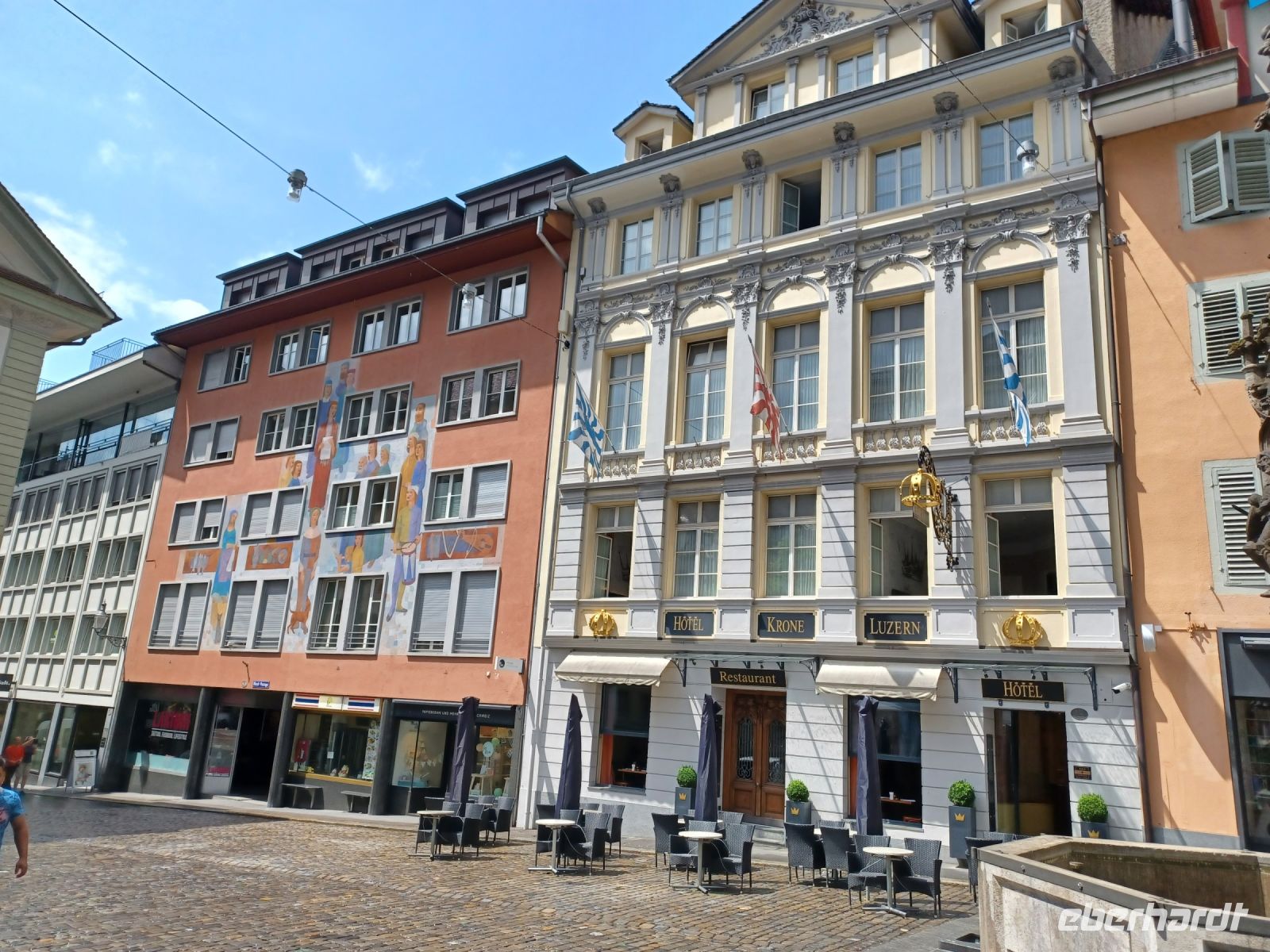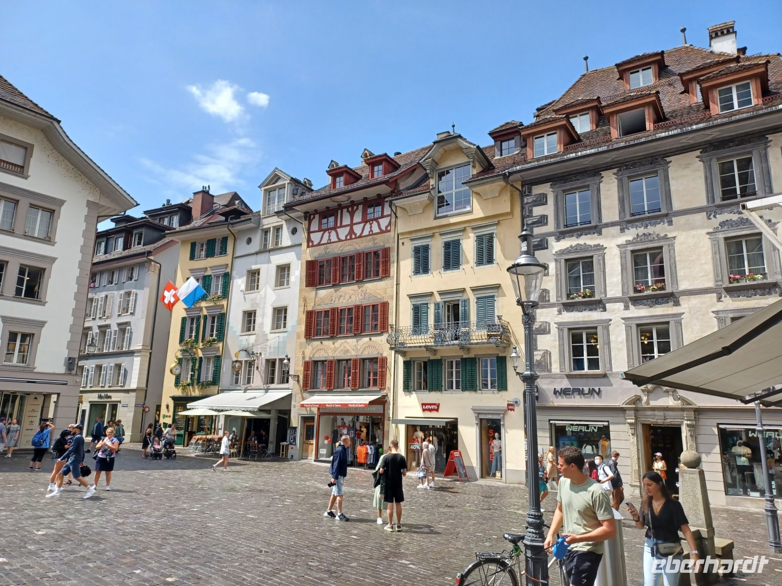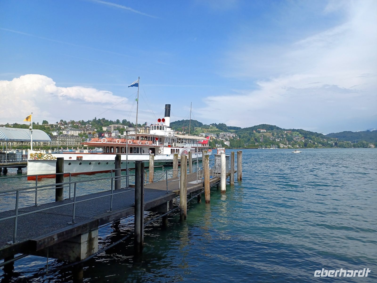 Aber unsere Tour muss weiter gehen; vom Pass gelangen wir entlang einiger Stauseen bald wieder in die grüne Natur, wir genehmigen uns hier, an einem schönen Platz, einen Mittagsimbiss und steuern nach dieser Stärkung das Berner Oberland an. Hier nimmt die Wolkendecke wieder zu; in der Zentralschweiz angelangt tröpfelt es etwas und bei unserem Abstecher im schönen Luzern werden wir mit Blitz und Donner empfangen. Aber die dicken Wolken ziehen vorüber und nun steht dem Besuch dieser einmaligen Stadt nichts mehr im Weg. Ein Hochgenuss ist der Bummel über die blumengeschmückte Kapellbrücke hinüber zur Altstadt. Die zahlreichen alten Bürgerhäuser versprühen hier einen eigenen Charme – dieser nun schon wieder sonnige Nachmittag am Vierwaldstätter See ist ein weiteres großartiges Erlebnis dieser Reise.