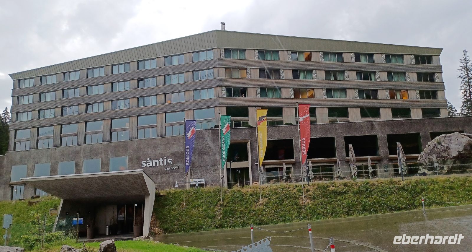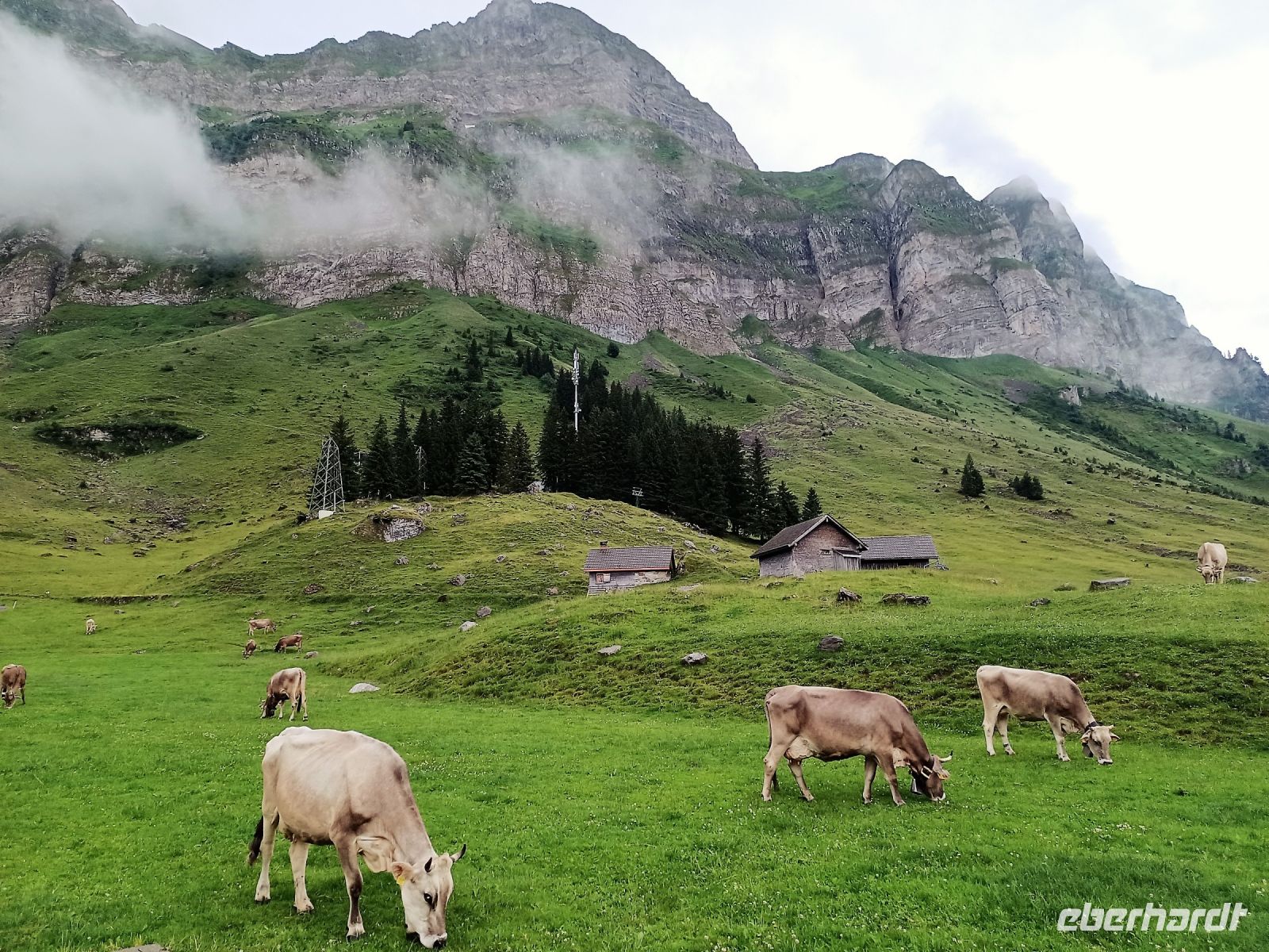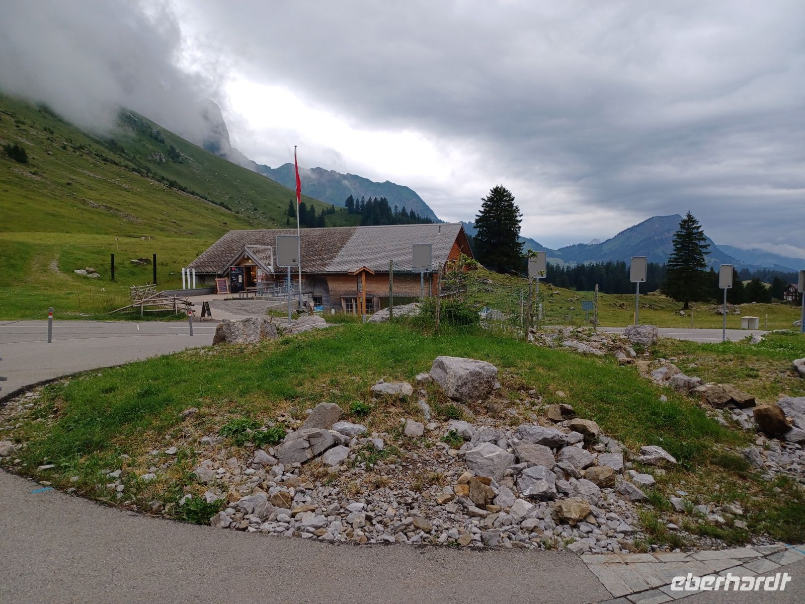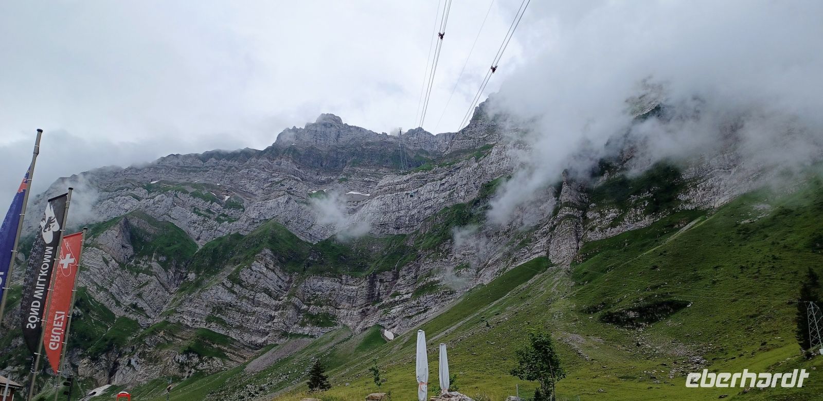 Nun sind noch einige Kilometer zurückzulegen. Am Zürich-See entlang kommen wir später durch das Toggenburg, auch hier wird Landwirtschaft betrieben, ebenso an unsrem Zielort auf der Schwägalp, am Fuße des Säntis. Hier empfängt uns das Gebimmel der Kuhglocken. Diese Musik ist doch so typisch für die Alpen. Aber bald ziehen auch hier dicke Wolken auf; es regnet und blitzt, der Donner bricht sich an den Bergen und kommt als ein zahlreiches Echo zurück. Dieser Aufruhr der Elemente ist irgendwie faszinierend und er zeigt uns die Macht der unbändigen Natur in aller Deutlichkeit.