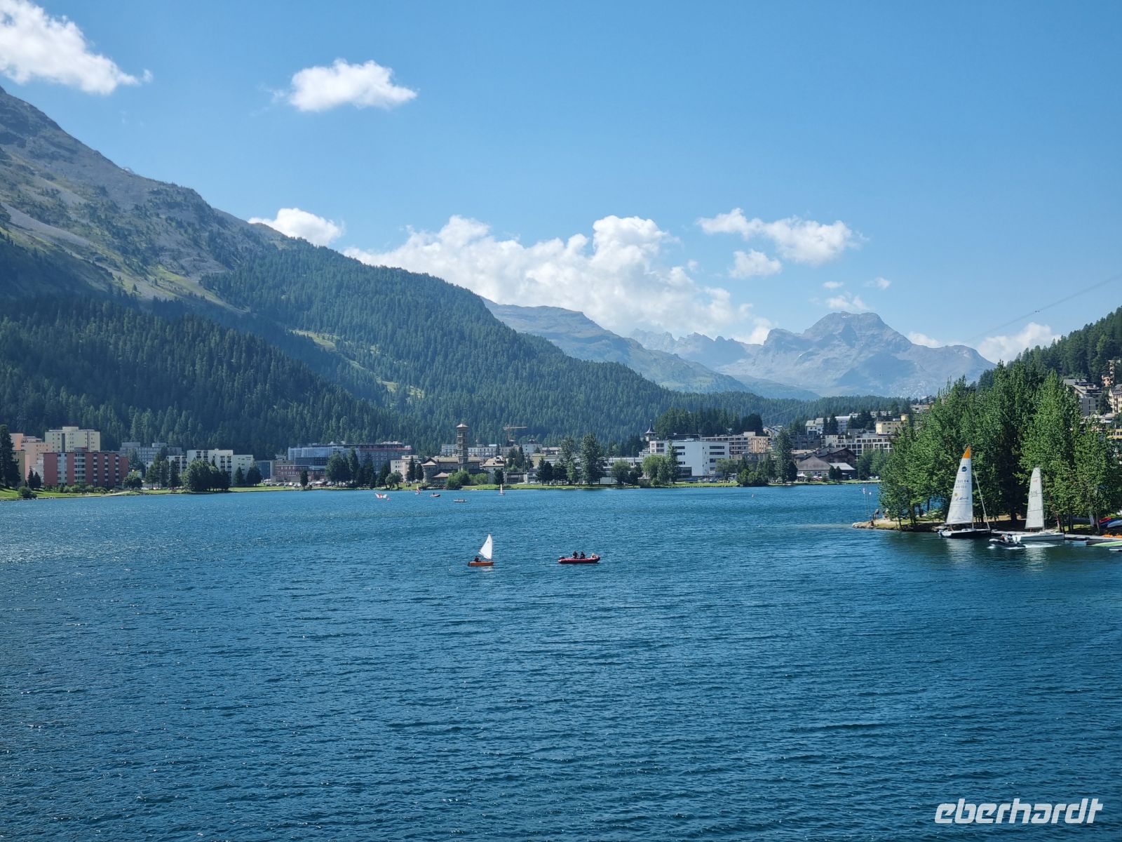 Am Morgen startete unsere Rundfahrt erneut in Davos und führte uns zunächst über den beeindruckenden Flüelapass. Die kurvige Straße bot atemberaubende Ausblicke auf die umliegende Bergwelt – ein echtes Highlight gleich zu Beginn der Tour. Unsere erste Station war das idyllische Engadiner Dorf Zuoz. Der Ort beeindruckte durch seine typischen Engadiner Häuser mit kunstvoll verzierten Fassaden und den charakteristischen Sgraffiti. Bei einem kurzen Aufenthalt konnten wir das traditionelle Ortsbild genießen und die besondere Atmosphäre auf uns wirken lassen. Weiter ging die Fahrt nach St. Moritz, einem der bekanntesten Ferienorte der Schweiz. Hier unternahmen wir einen gemütlichen Spaziergang zum Schiefen Turm, einem der ältesten Bauwerke des Ortes und ein echter Blickfang mit seiner markanten Neigung. Ein kurzer Stopp am Silvaplanersee bot die Möglichkeit, die Ruhe des Sees und das herrliche Panorama der Oberengadiner Seenlandschaft zu genießen. Danach setzten wir unsere Reise fort über den Julierpass, vorbei an dramatischen Landschaften und spektakulären Felsformationen. Die Rückfahrt führte uns durch das malerische Landwassertal zurück nach Davos. Am späten Nachmittag bestand noch die Möglichkeit, mit der Standseilbahn zur Schatzalp hinaufzufahren – ein lohnenswerter Ausflug mit herrlichem Blick über Davos und das umliegende Tal.