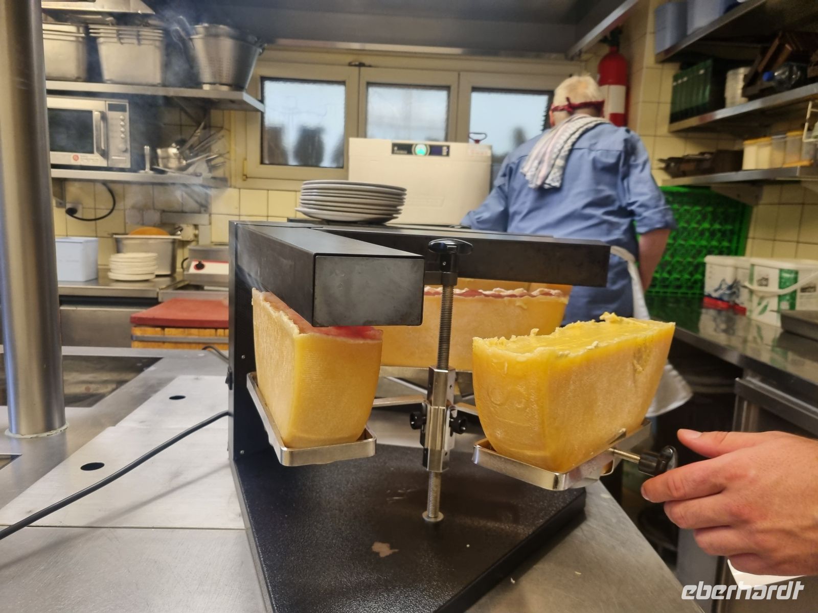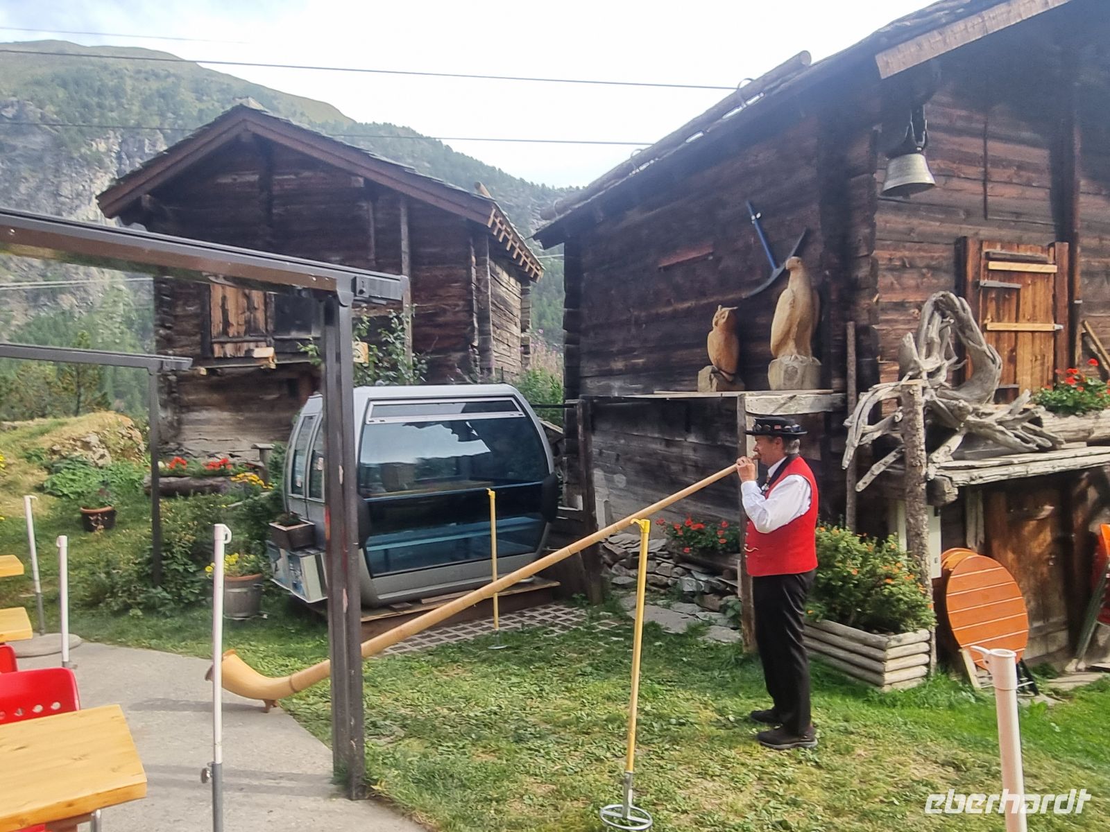 Heute hatten wir unseren freien Tag in Zermatt und das Wetter meinte es wieder einmal sehr gut mit uns. Ein Großteil unserer Reisegruppe fuhr bereits am Vormittag mit der höchsten, frei im Gelände angelegten Zahnradbahn Europas auf den 3.089 Meter hohen Gornergrat – das Panorama und der Blick auf einige Viertausender war ganz einfach atemberaubend und unbeschreiblich! Auch für einen Spaziergang in Zermatt blieb noch genügend Zeit. Besonders interessant ist das alte Zermatt mit den typischen Walliser Holzhäusern. Diese Häuser stehen häufig auf sogenannten „Mäuseplatten“ und dienten früher dazu, dass keine Mäuse an die Vorräte rankamen. So erlebte jeder diesen Tag nach seinen eigenen Vorstellungen. Am frühen Abend trafen wir uns bestens gelaunt im Hotel wieder. Unser Abendessen war heute übrigens nicht im Hotel geplant, sondern als Folklore- bzw. Spezialitätenabend im Bergrestaurant der knapp 2.000 Meter hoch gelegenen Station „Furi“, einem Weiler oberhalb von Zermatt. Das Wetter machte uns zwar leider einen kleinen Strich durch die Rechnung, aber das tat der guten Stimmung keinen Abbruch. Jetzt durften wir ein typisch schweizerisches Essen erleben. Es gab Raclette – eine Käsespezialität mit Pellkartoffeln, grünen Gurken und Glaszwiebeln. Jeder konnte so viel essen, wie er wollte und wir hatten sogar die Gelegenheit bei der Zubereitung zuschauen. Um Raclette anzurichten, wird übrigens ein großer halbierter Käse an der Schnittfläche erhitzt und die geschmolzene Oberfläche jeweils abgeschabt. Für die meisten von uns war es das erste Raclette-Essen des Lebens. Die Schweizer lieben Käse und das merkt man natürlich auch, wenn es um hiesige kulinarische Spezialitäten geht. Für die passende musikalische Unterhaltung war ebenso gesorgt und so erlebten wir einen abwechslungsreichen und stimmungsvollen Abend in einem urigen rustikalen Bergrestaurant. Nachdem wir alle satt und zufrieden waren, ging es mit der Bahn nach Zermatt zurück.
