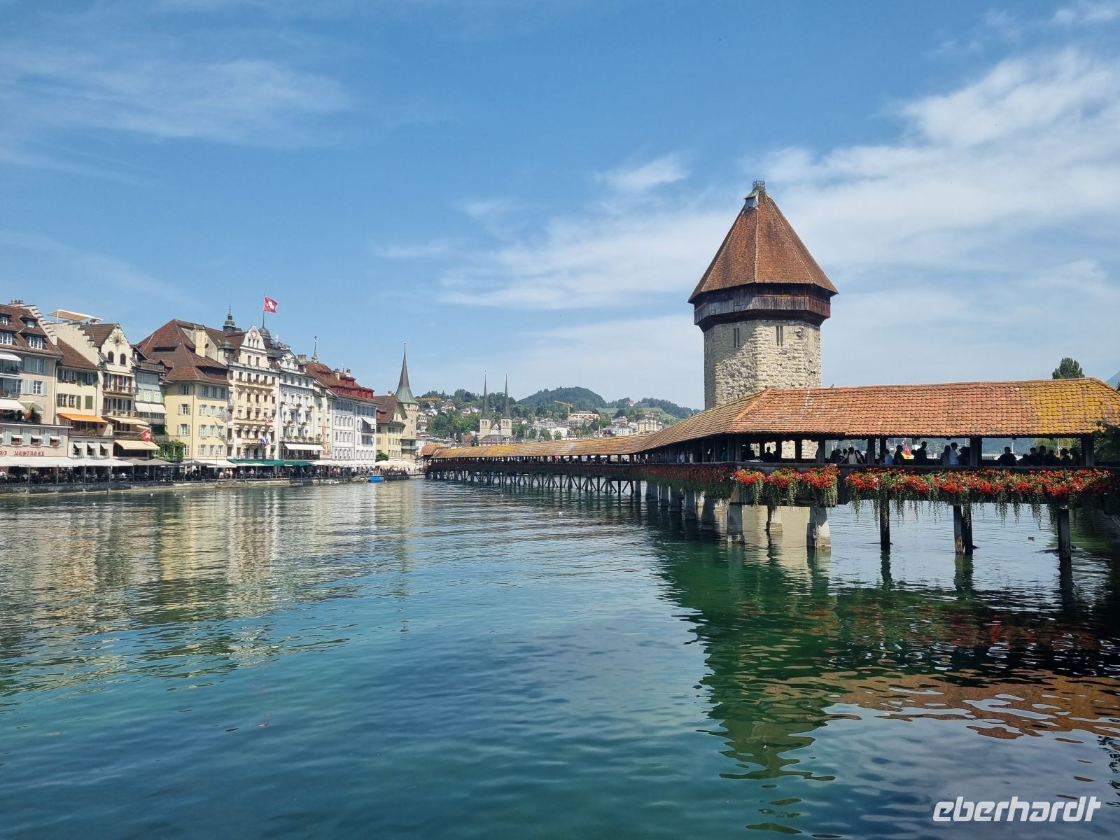 Am nächsten Morgen mussten wir dann leider auch schon wieder Abschied nehmen von dieser Region. Mit dem Pendelzug fuhren wir nach Täsch. Dort, ca. 5 Kilometer nördlich von Zermatt, musste unser Bus parken, da Zermatt ein autofreier Ort ist. In Täsch angekommen, ging es dann gleich mit unserem Bus weiter. Mit unserem Gepäck war übrigens alles bestens organisiert, niemand von uns musste sich darum kümmern. Unser Buschauffeur Ingo, das Hotel und letztendlich die Bahn unternahmen alles, dass unsere Koffer rechtzeitig im Bus waren. Nach einer etwa 2-stündigen Fahrt über Visp, Brig und das obere Rhonetal erreichten wir den 2.165 Meter hohen Grimselpass. Auf der Passhöhe schauten sich die meisten von uns im Murmeltierpark um – leider zeigte sich heute jedoch kein einziges...! Am Nachmittag erreichten wir schließlich Luzern mit der berühmten Kapellbrücke. So konnten wir immerhin behaupten, die zwei meistfotografierten Bildmotive der Schweiz wahrhaftig gesehen zu haben! Die Kapellbrücke wurde übrigens in der ersten Hälfte des 14. Jahrhunderts als Teil der Stadtbefestigung errichtet und hat ihren Namen von der benachbarten St.-Peters-Kapelle. Am frühen Abend kamen wir an unserem letzten Übernachtungsort an – der etwa 1.300 Meter hoch gelegenen Schwägalp im Appenzeller Land. Diese Ruhe dort war einfach himmlisch...! Ein letztes gemeinsames Abendessen rundete diesen Tag ab.