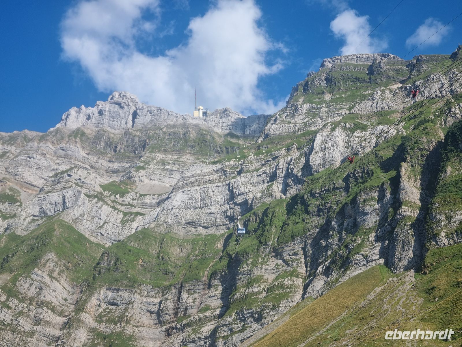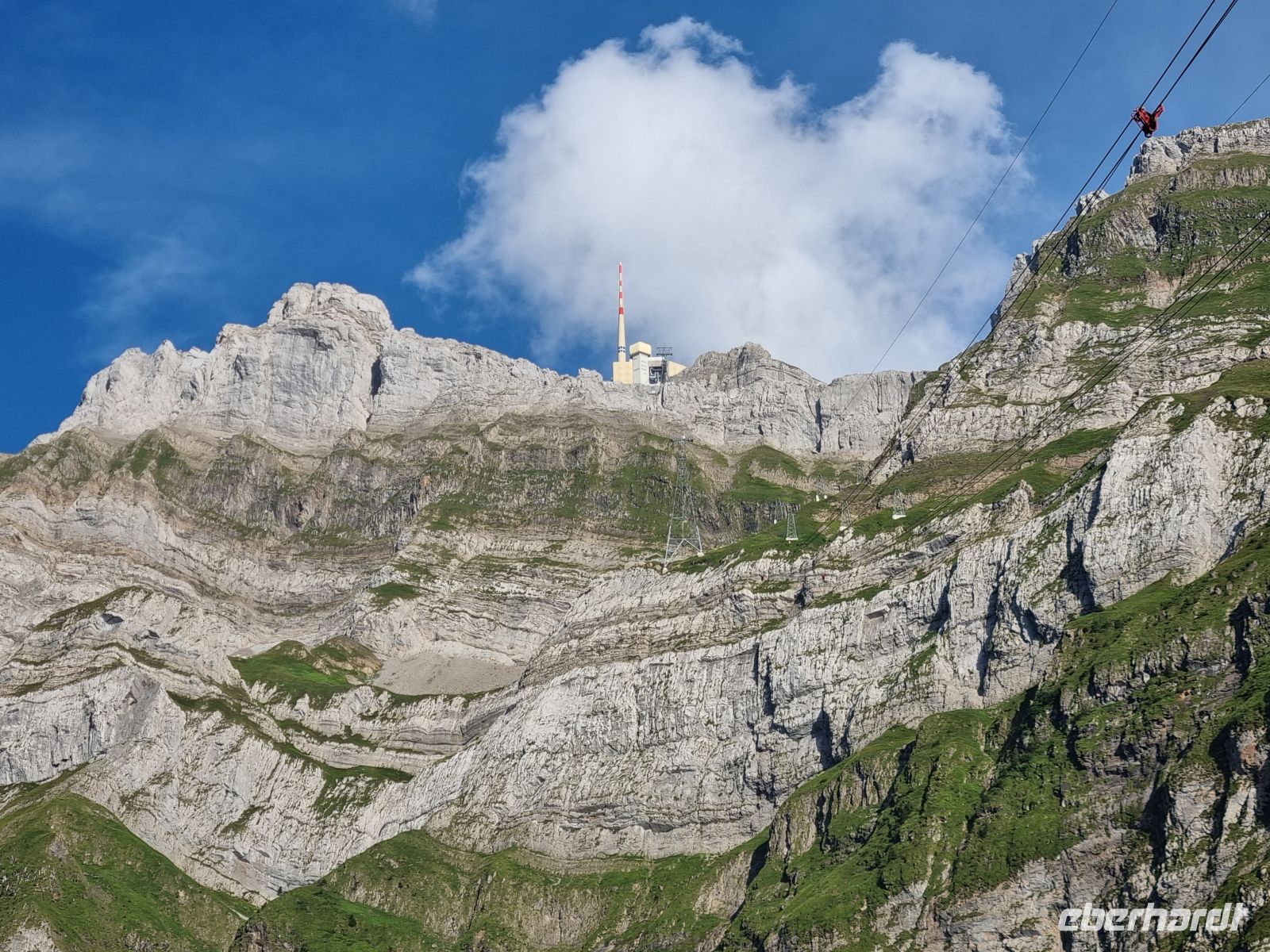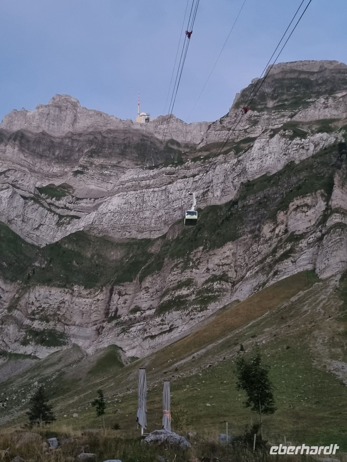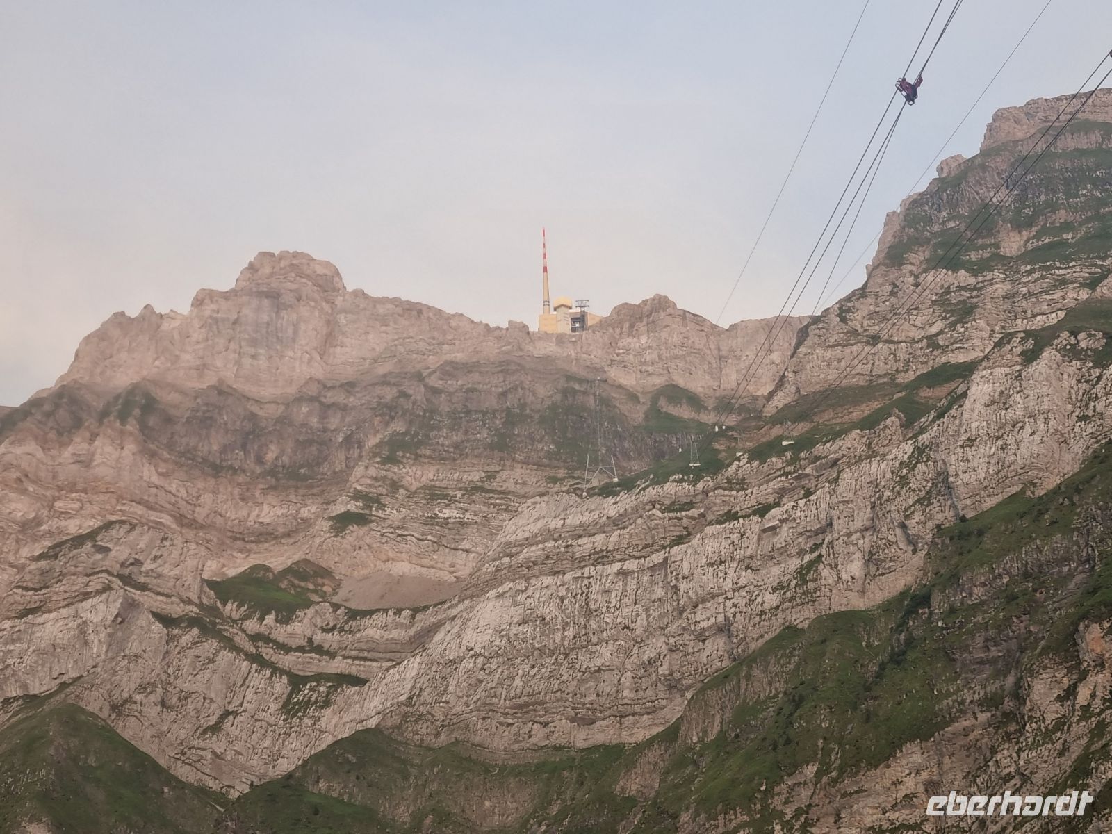 Am Abreisetag ging es gleich früh mit der Säntis-Schwebebahn hinauf zum etwa 2.502 Meter hohen Säntis. Dort nahmen wir unser letztes Frühstück ein – sozusagen ein