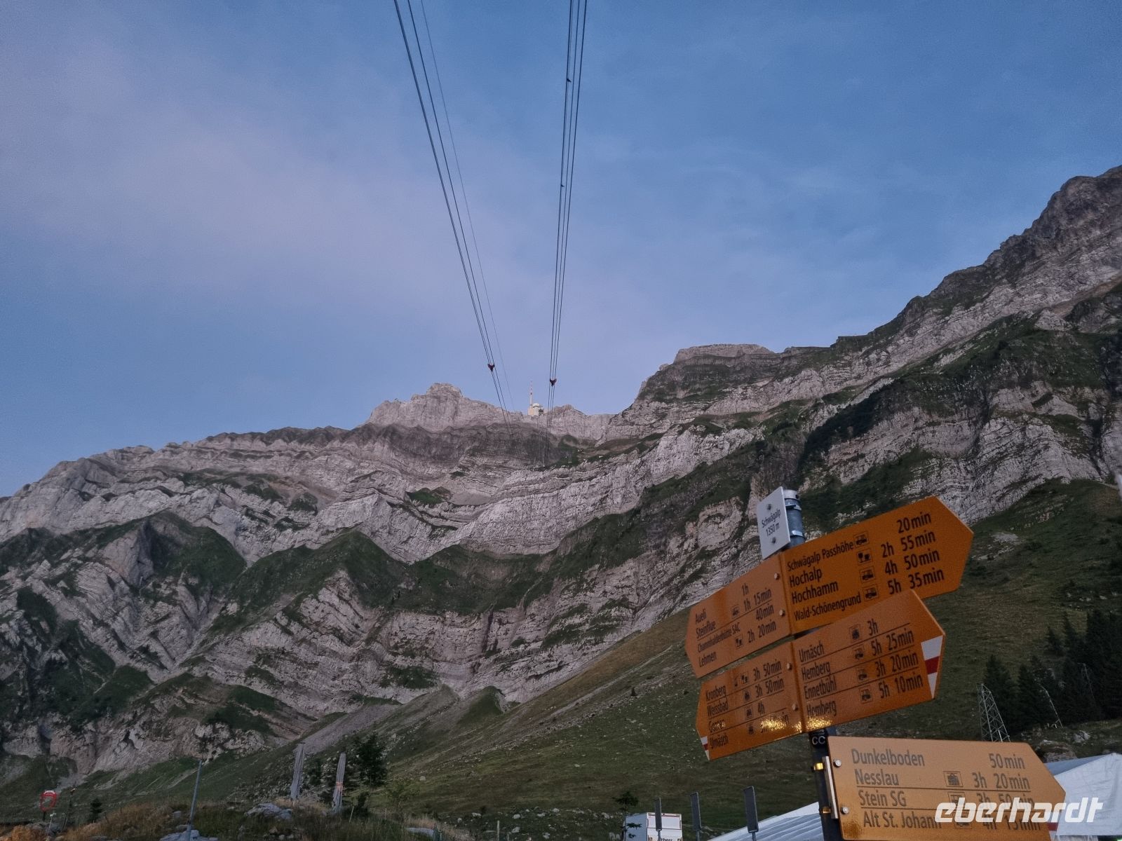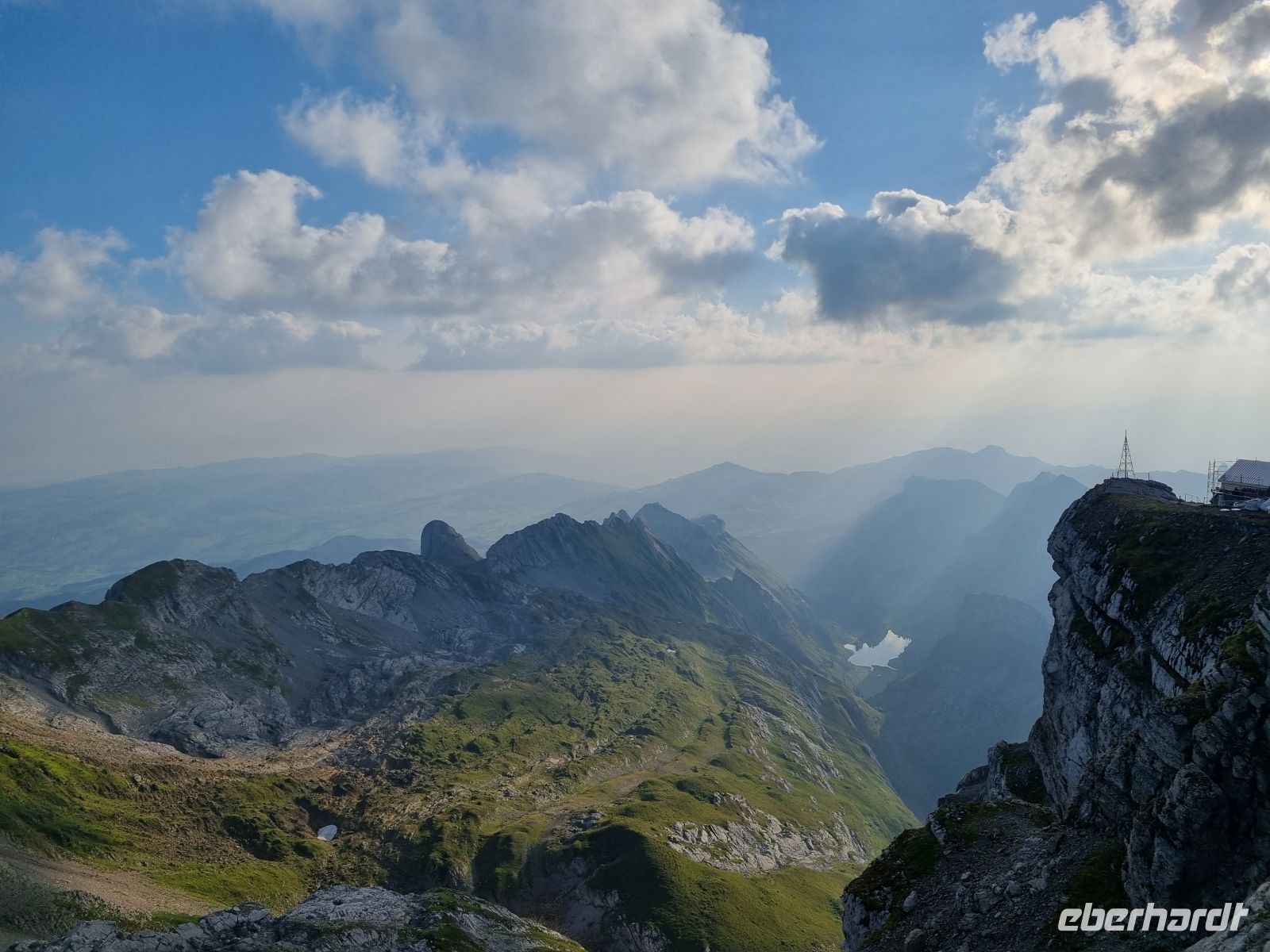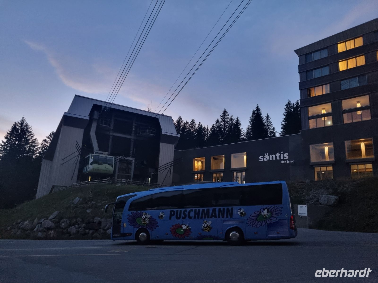 Am Abreisetag ging es gleich früh mit der Säntis-Schwebebahn hinauf zum etwa 2.502 Meter hohen Säntis. Dort nahmen wir unser letztes Frühstück ein – sozusagen ein