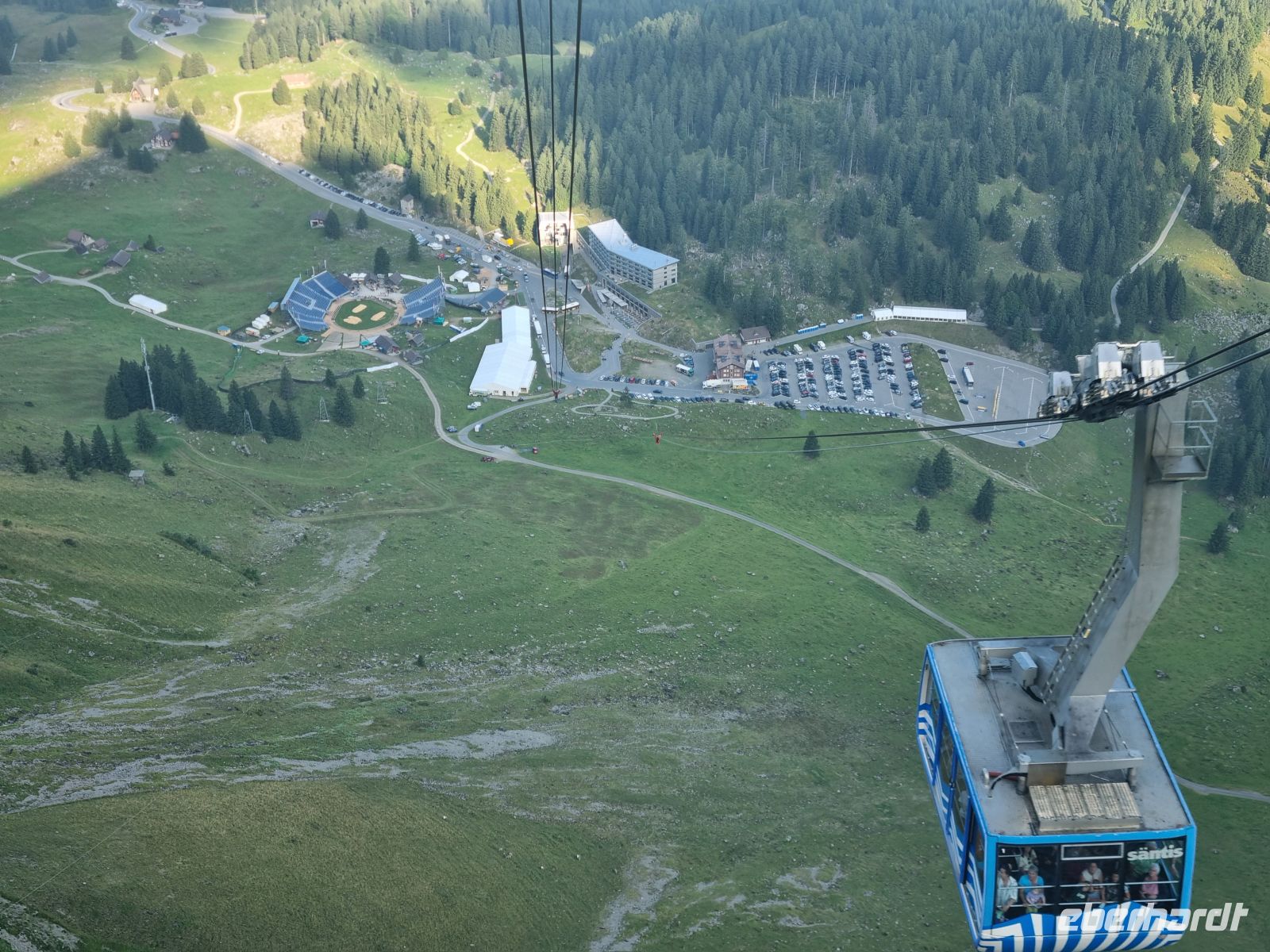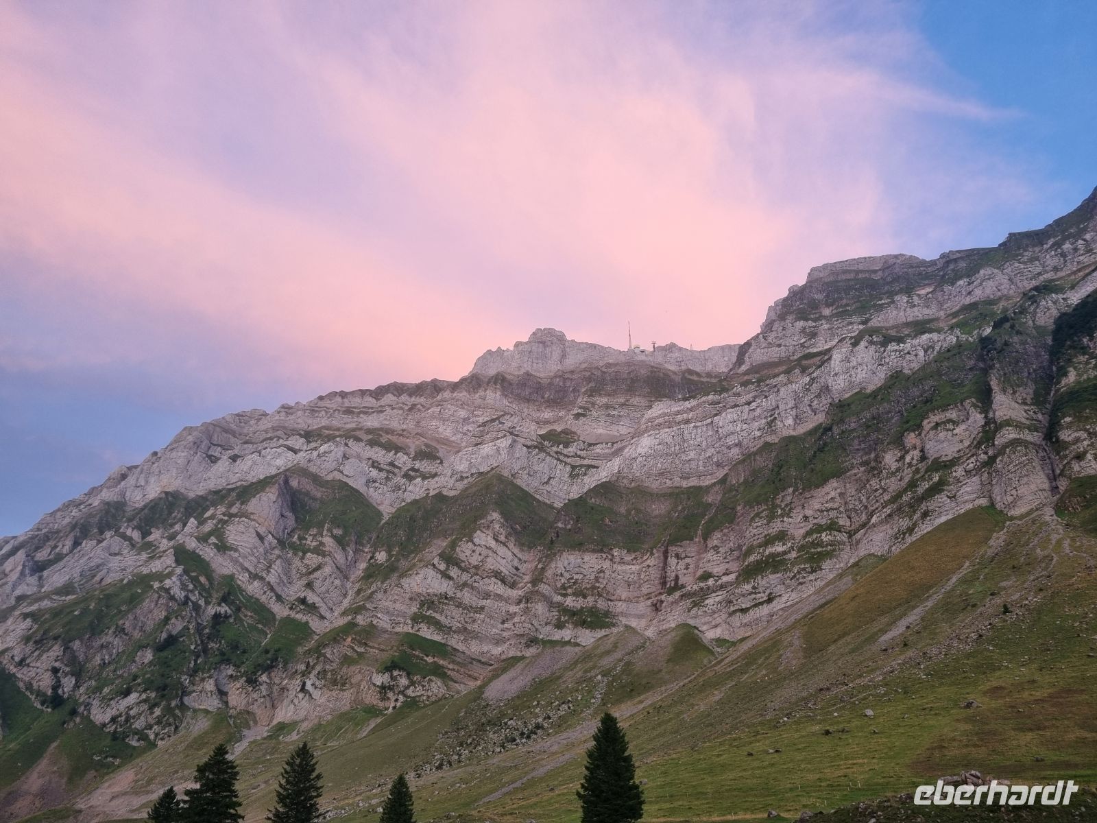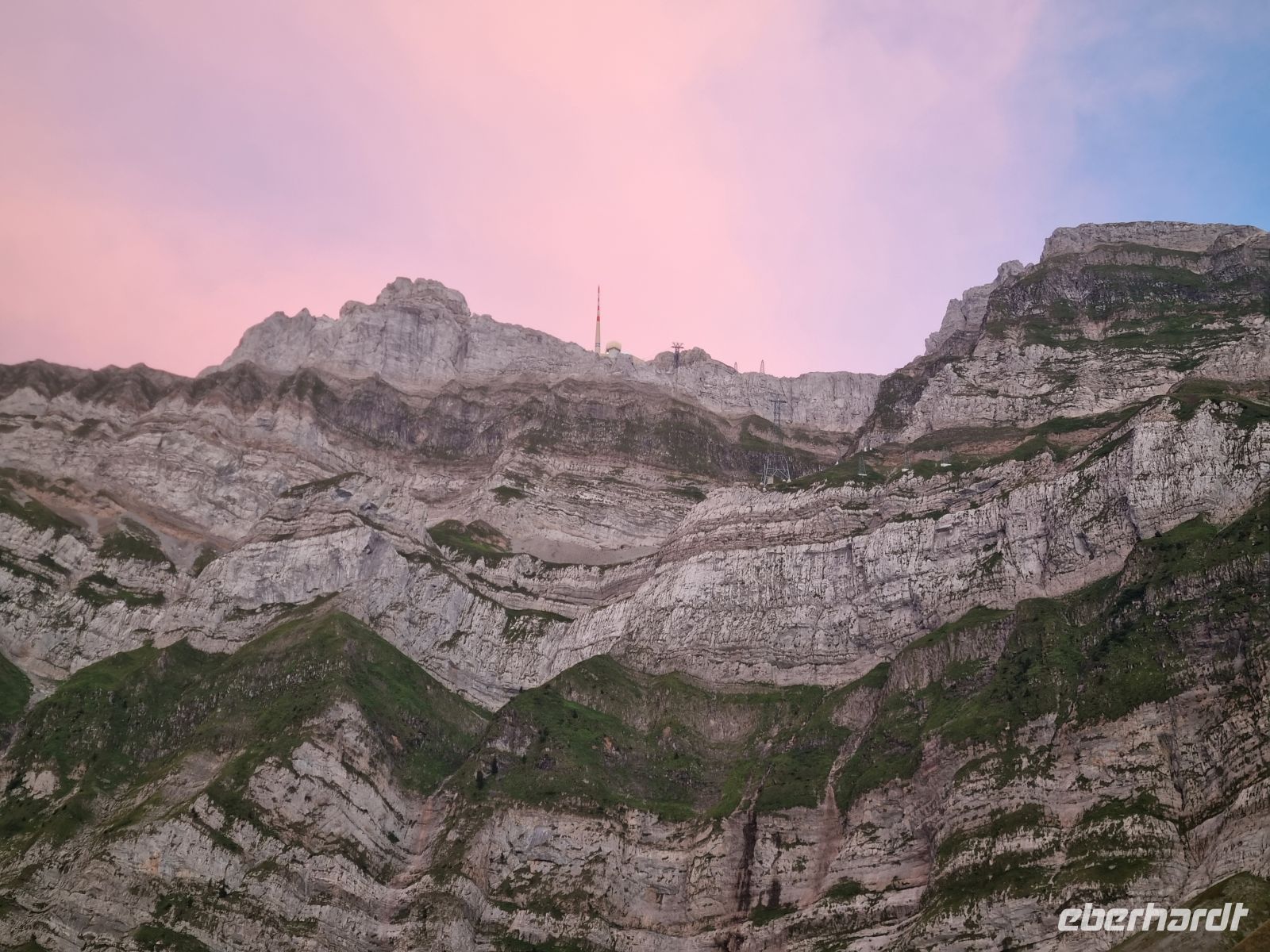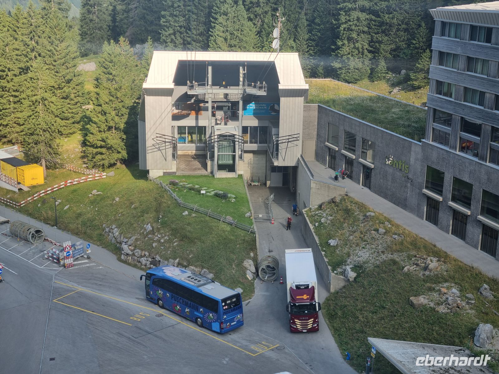 Am Abreisetag ging es gleich früh mit der Säntis-Schwebebahn hinauf zum etwa 2.502 Meter hohen Säntis. Dort nahmen wir unser letztes Frühstück ein – sozusagen ein