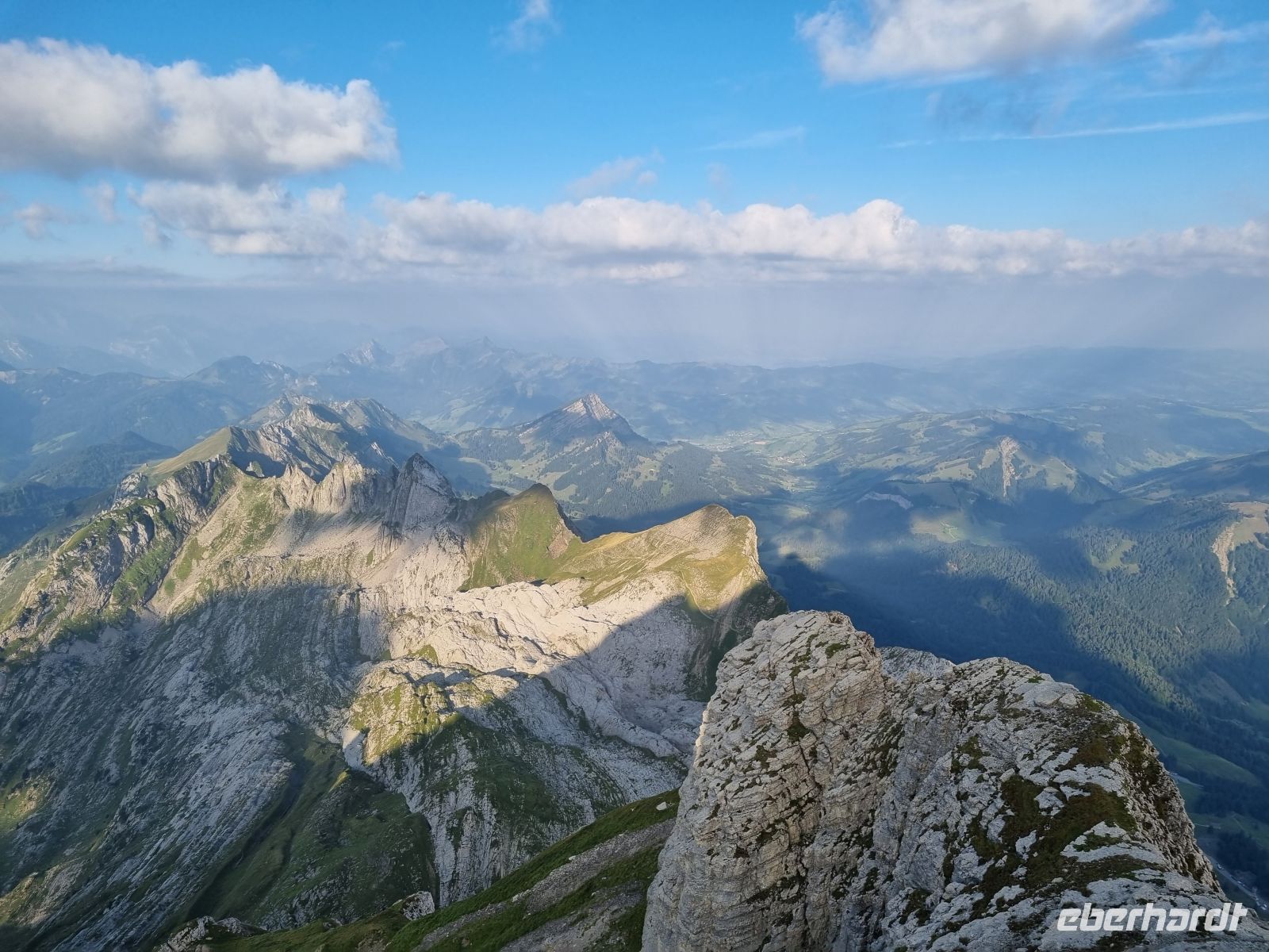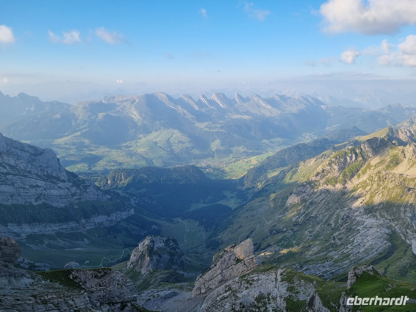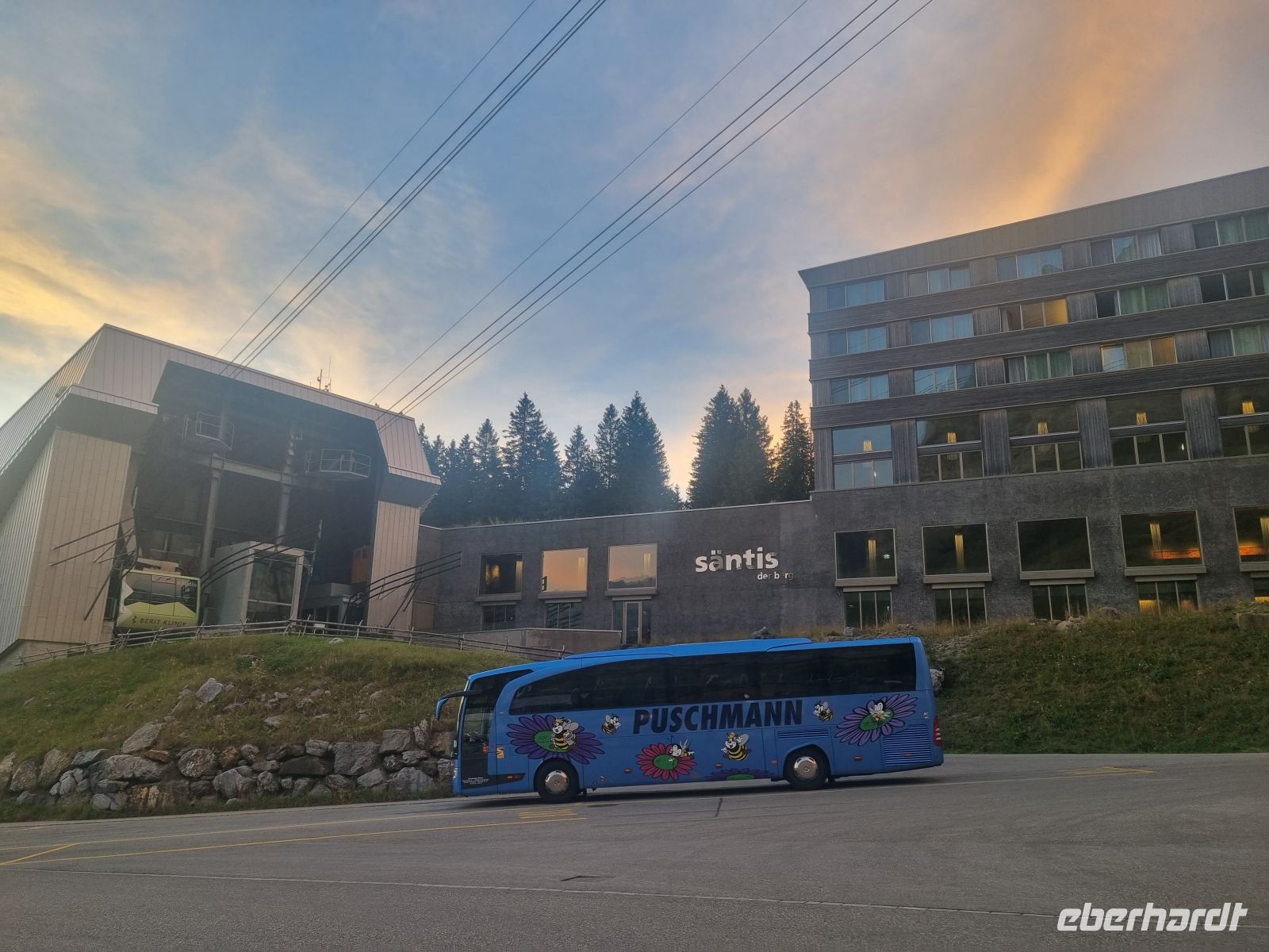 „Panorama-Frühstück“ mit Blicken auf insgesamt sechs Länder! Schade, dass uns danach nicht mehr sehr viel Zeit verblieb – wir hatten schließlich noch eine lange Heimreise vor uns. Glücklicherweise gibt es allerdings bei Eberhardt TRAVEL noch andere Reisen in die Schweiz, wo längere Aufenthalte auf der Schwägalp beziehungsweise auf dem Säntis vorgesehen sind.