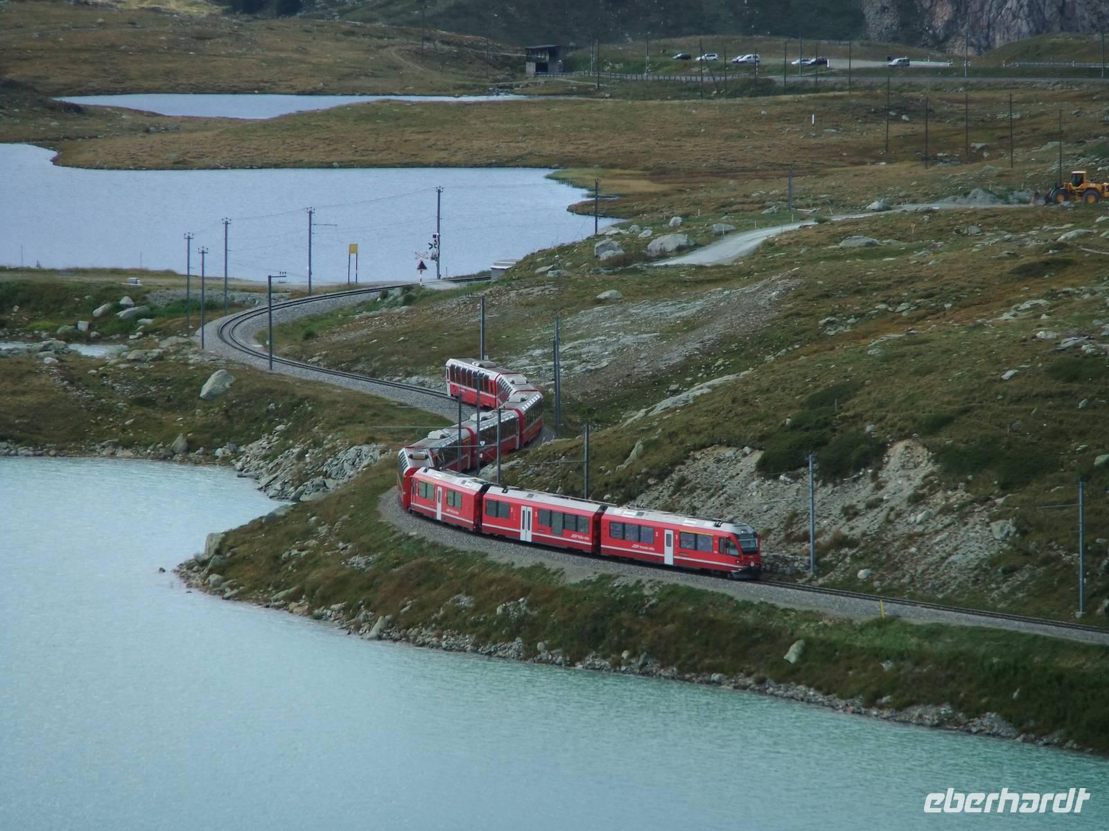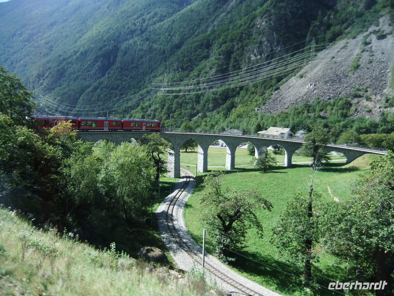 wo der Zug auch über das Kreisviadukt von Brusio rollt.