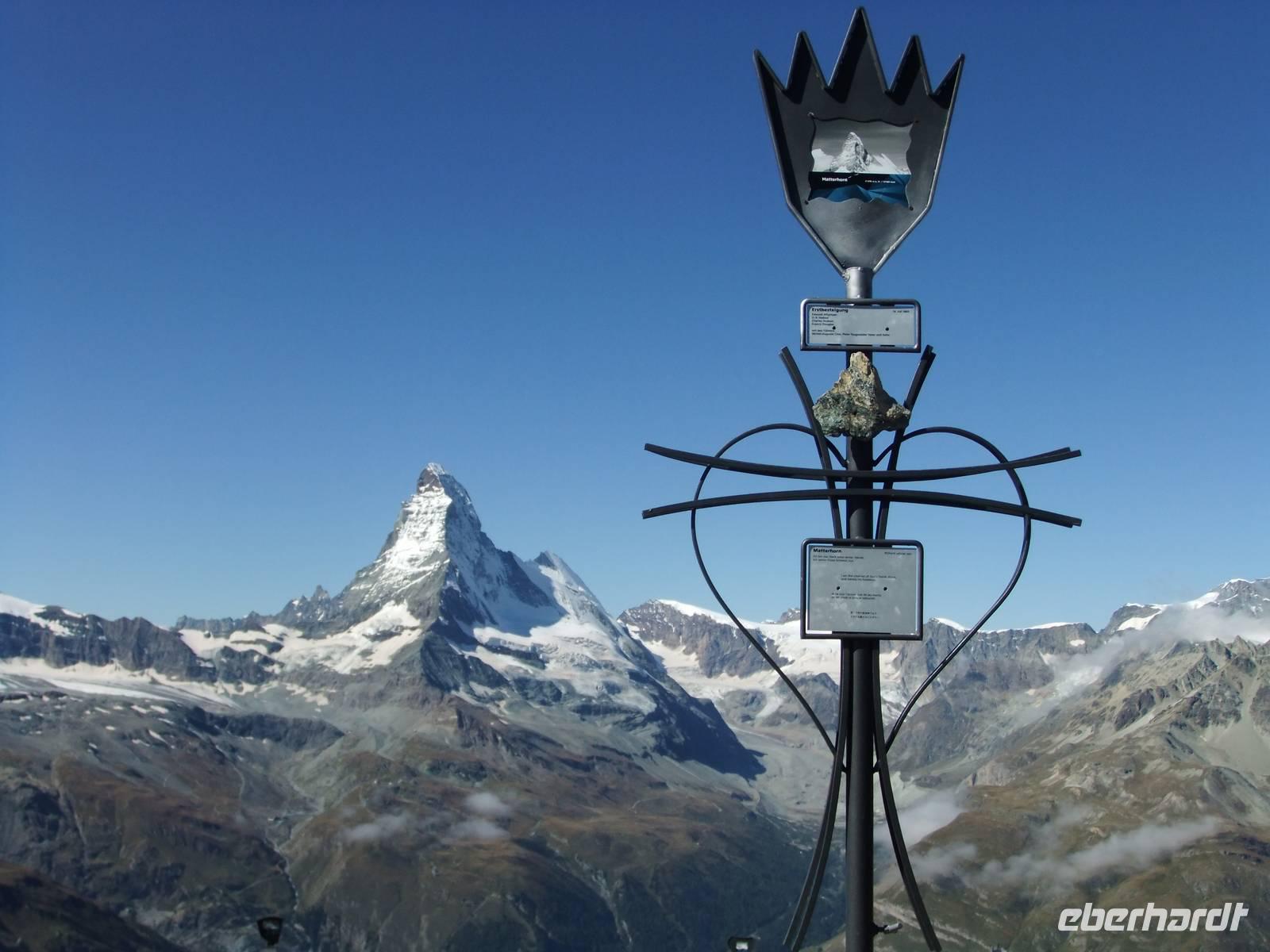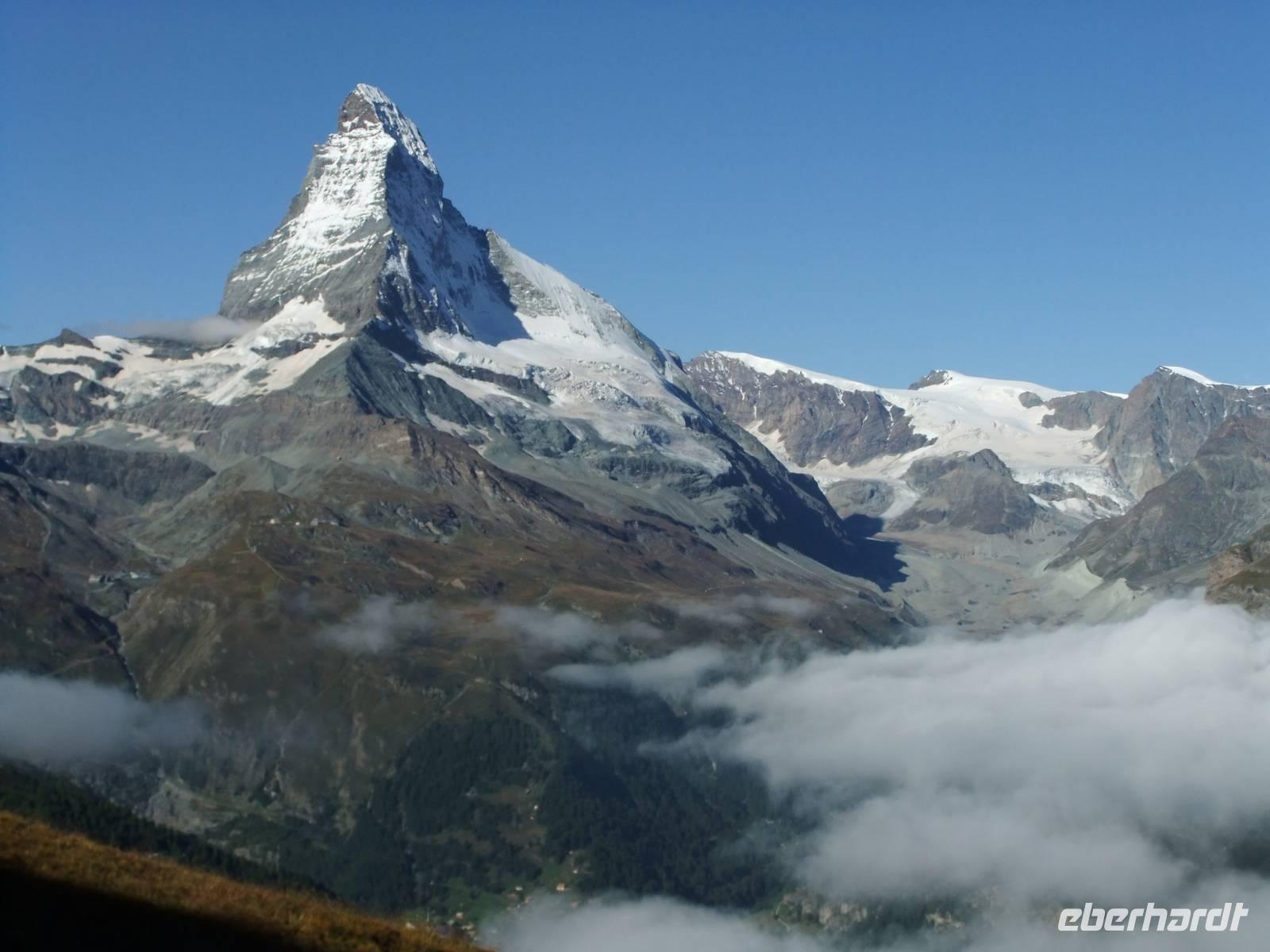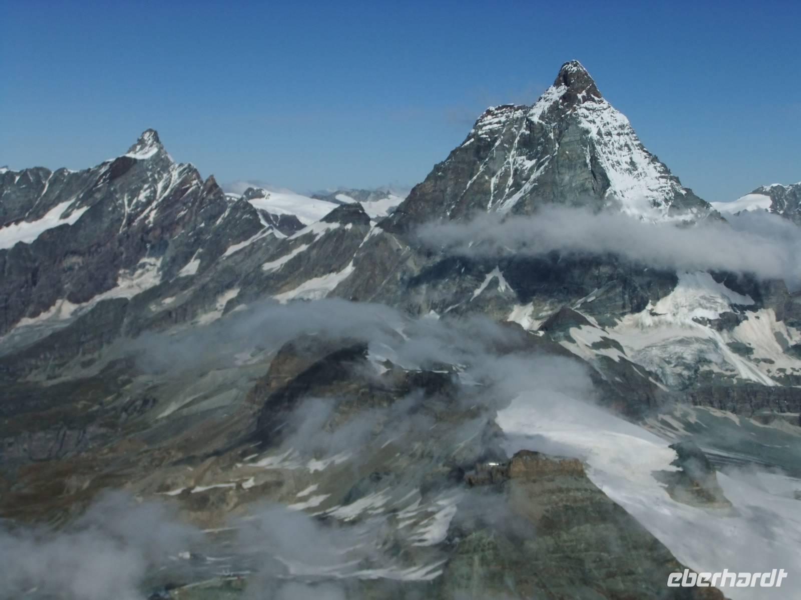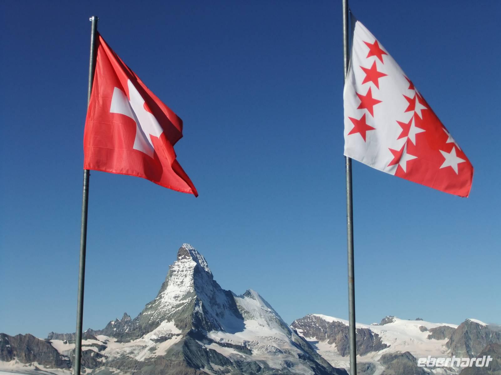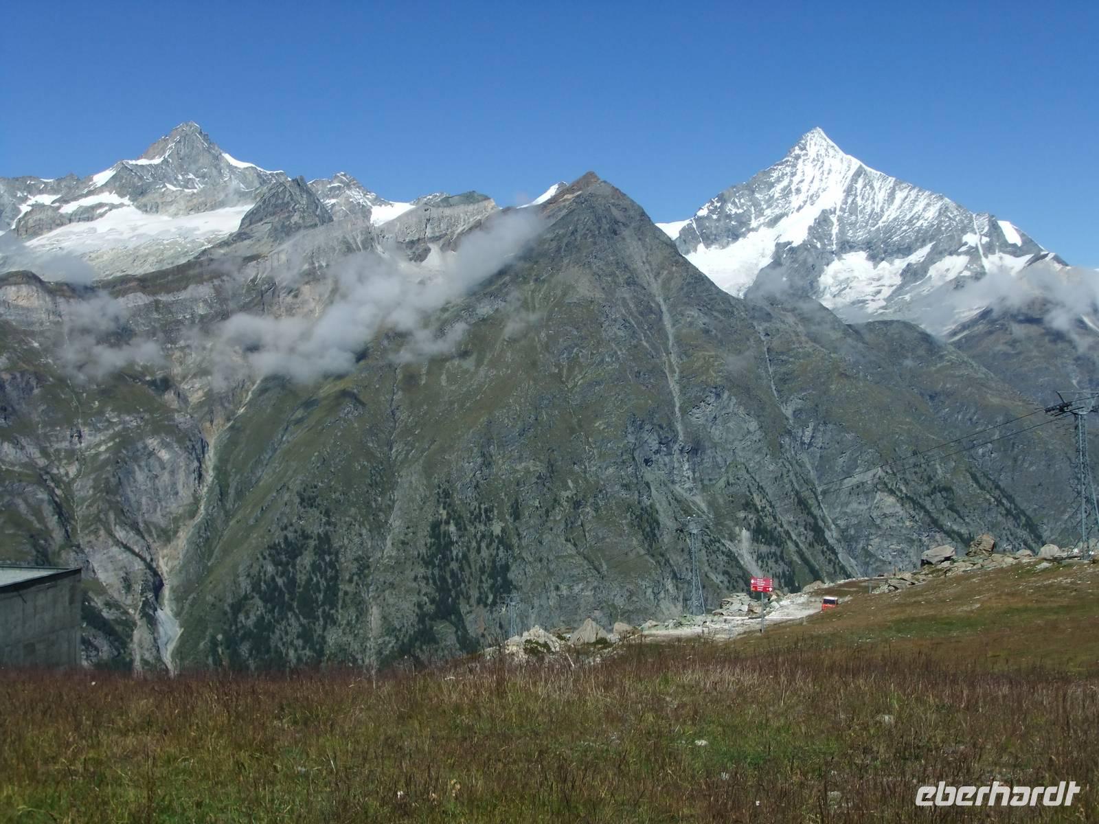 Matterhhorn, Weißhorn, Breithorn und Monte Rosa sind dabei.