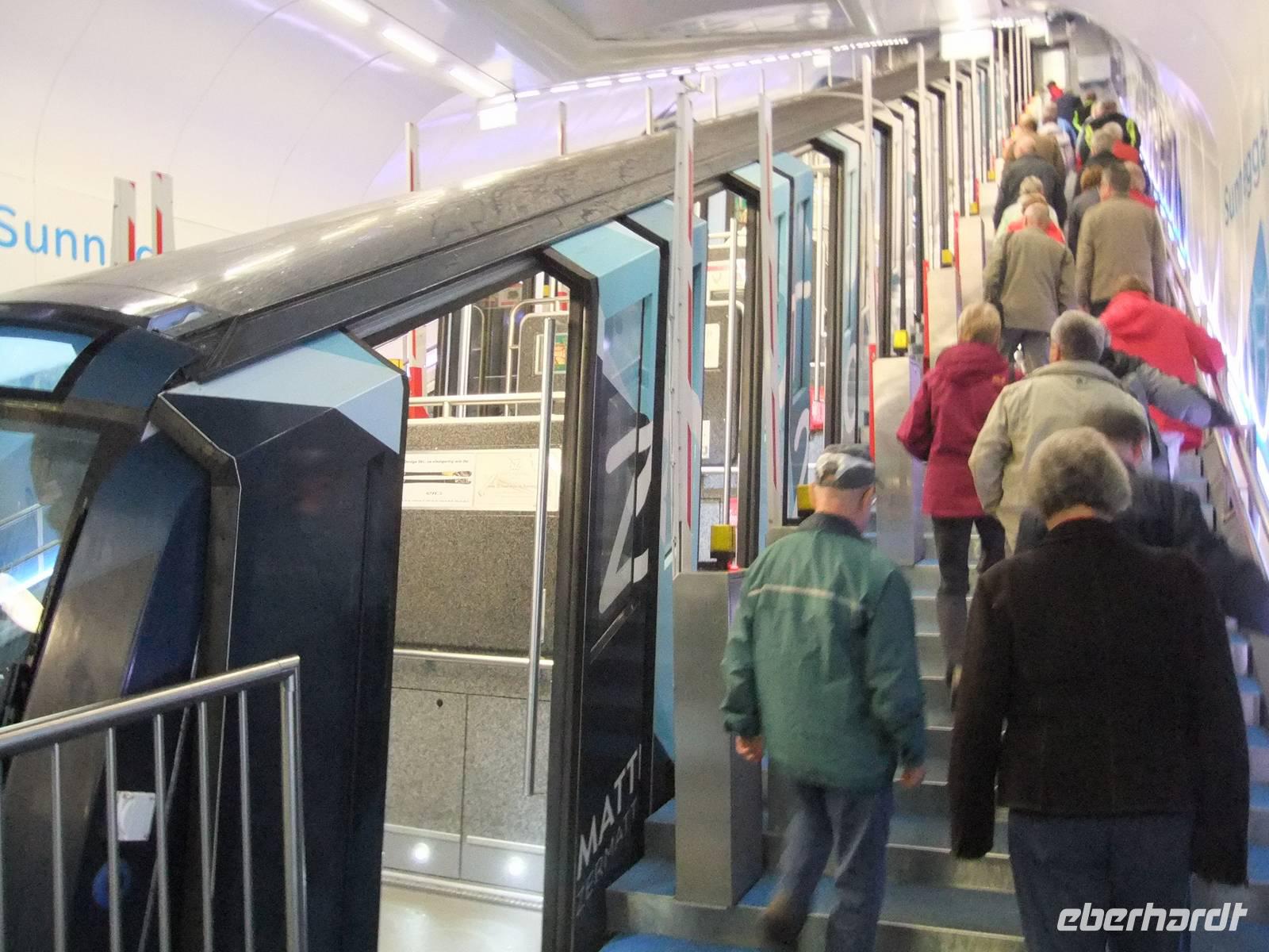 wo man mit der Drahtseilbahn auf Sunnegga fährt
